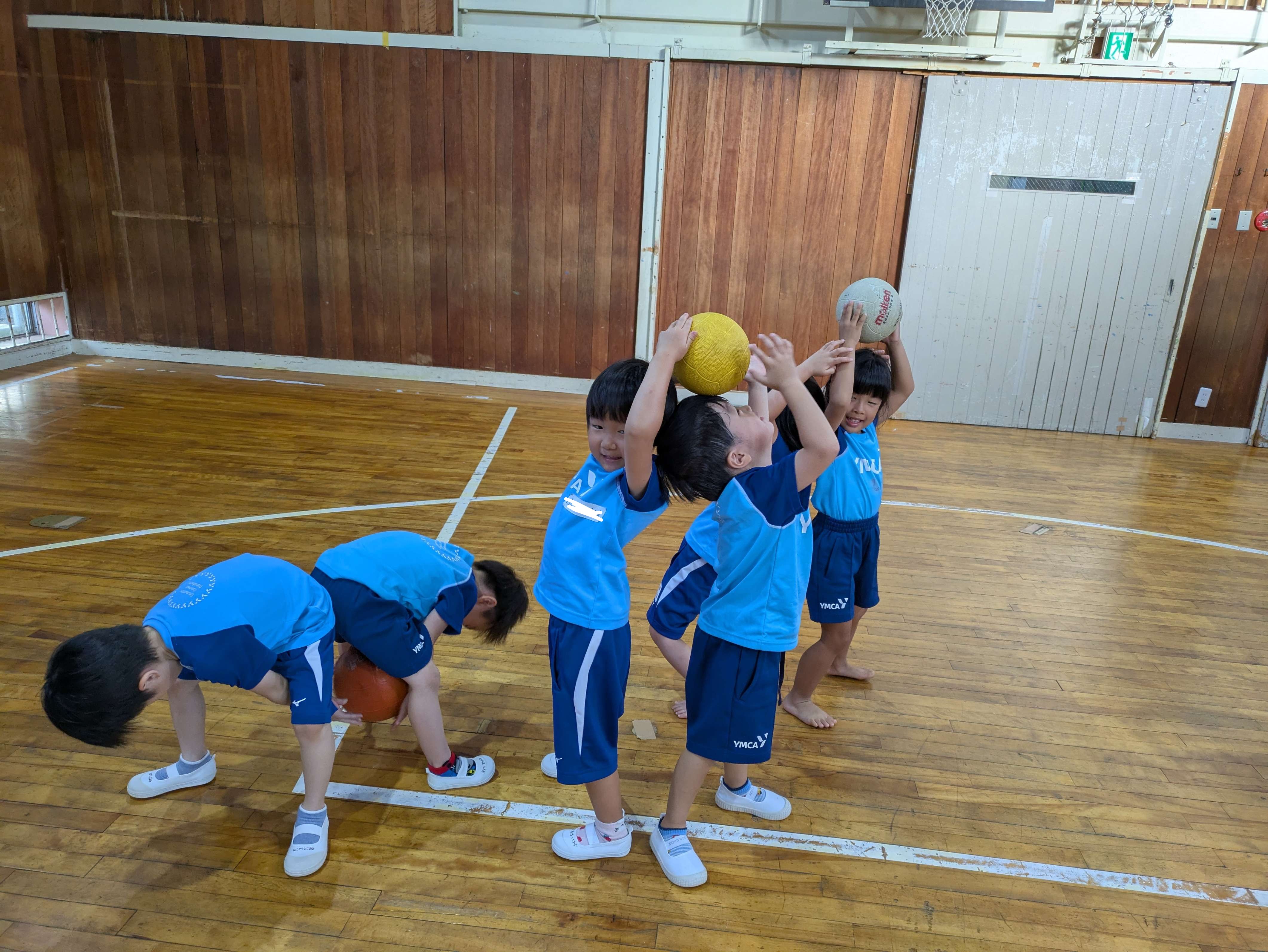 年中さん年長さんは、2人組でボールを渡しあったり、キャッチボールをしたりしました!お友だちと協力しあって上手にできましたね!