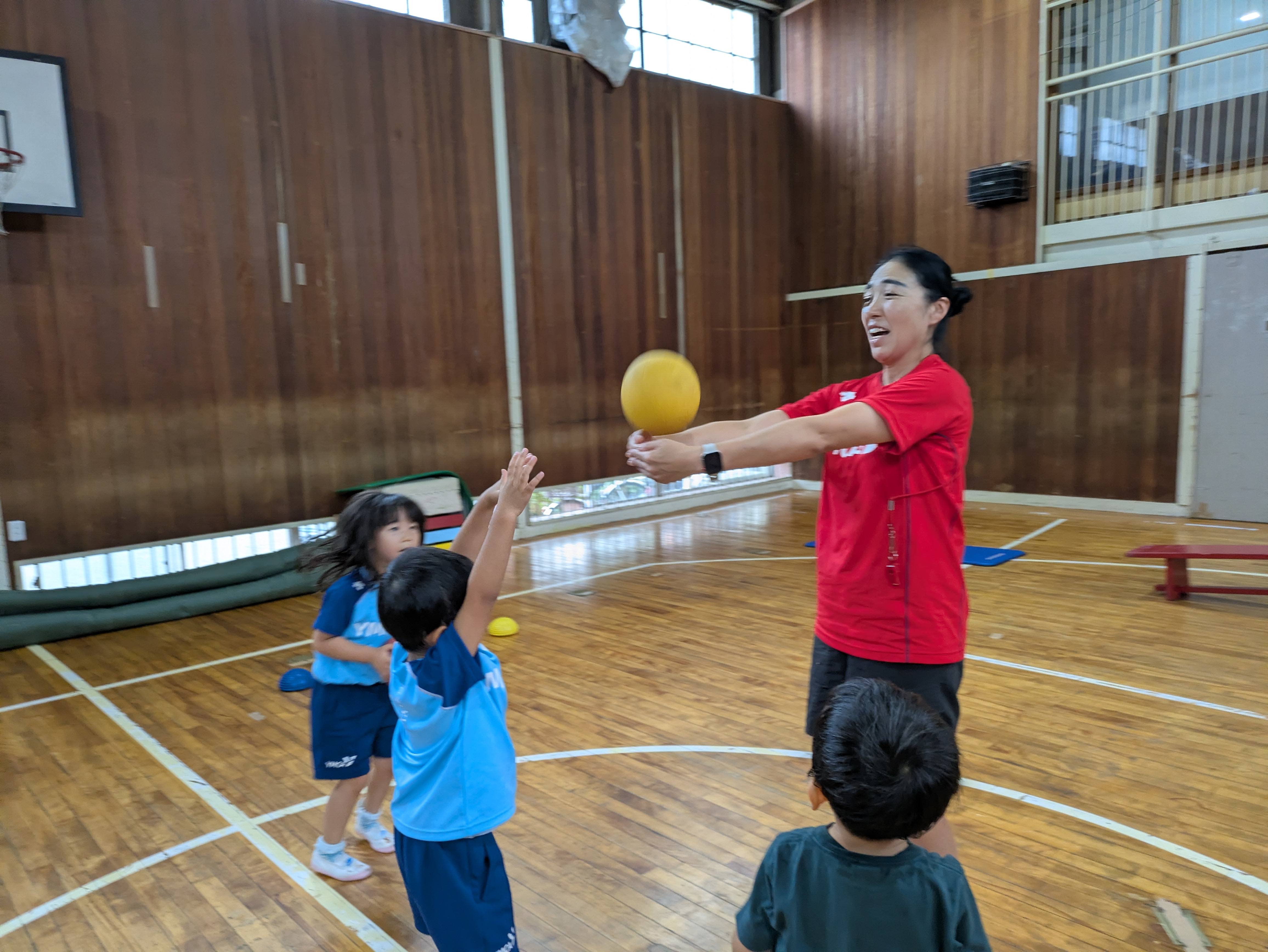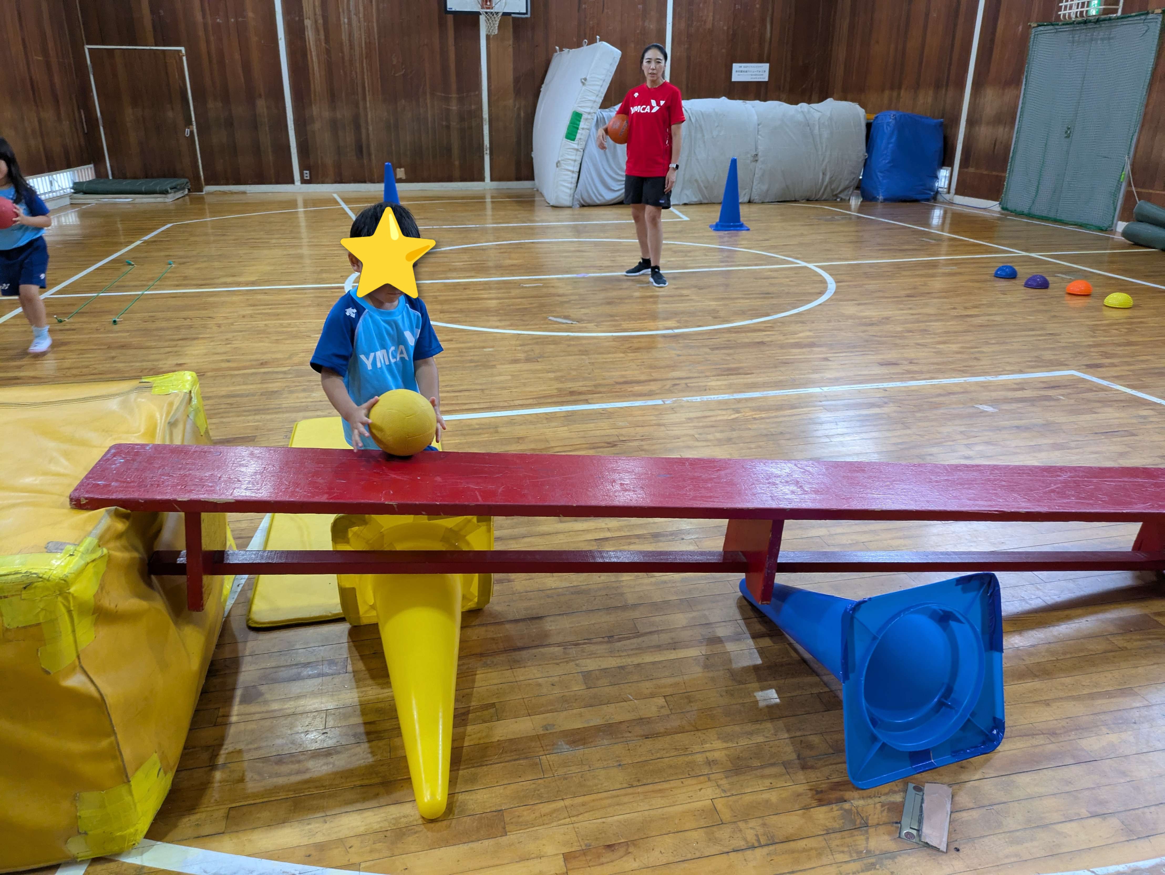ボールに座ってバランスをとったり、投げてキャッチやドリブルをしたりしました!ボールの操作が上手になってきましたね(*^^*)