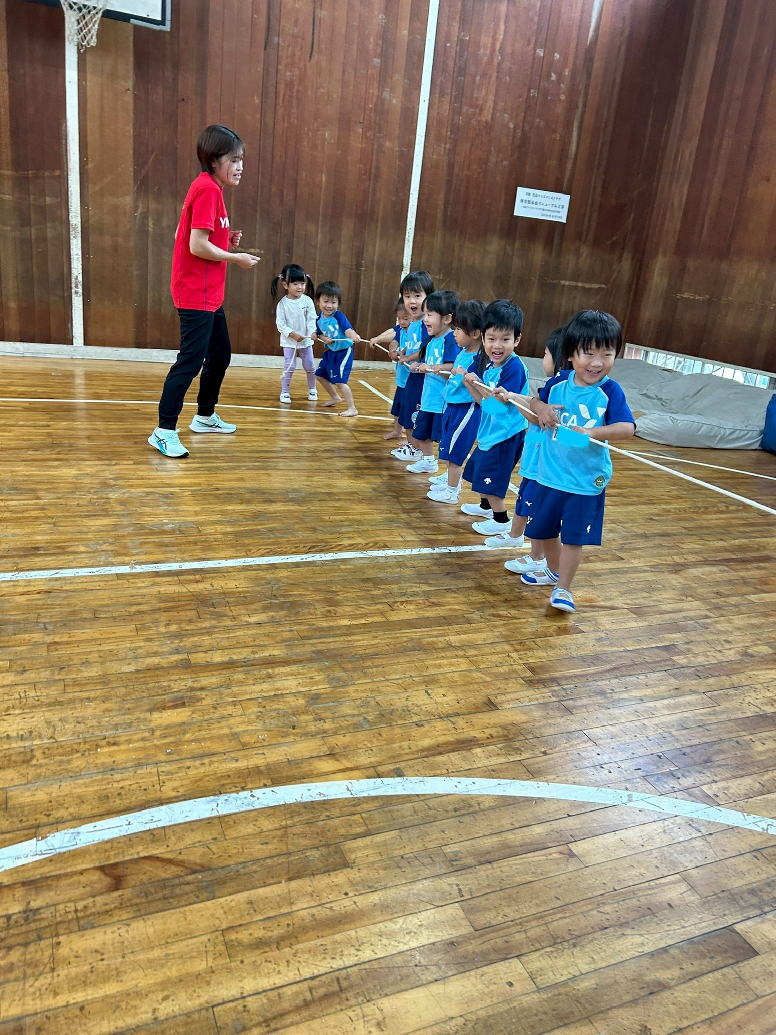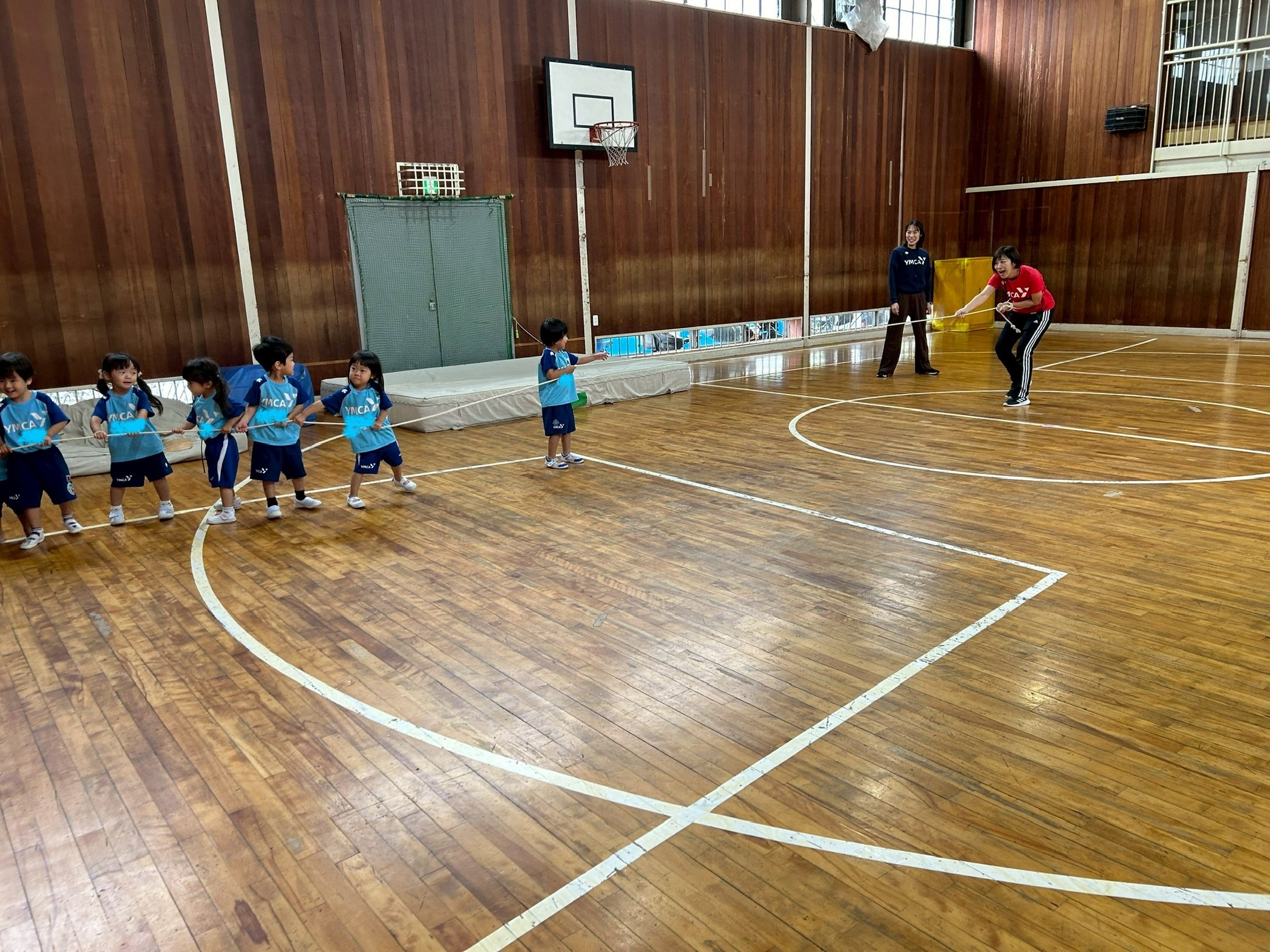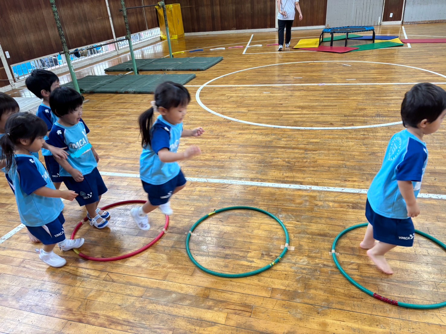 ひとつひとつのフープへしっかりジャンプしました。両足ジャンプの本当にじょうずになりましたね!