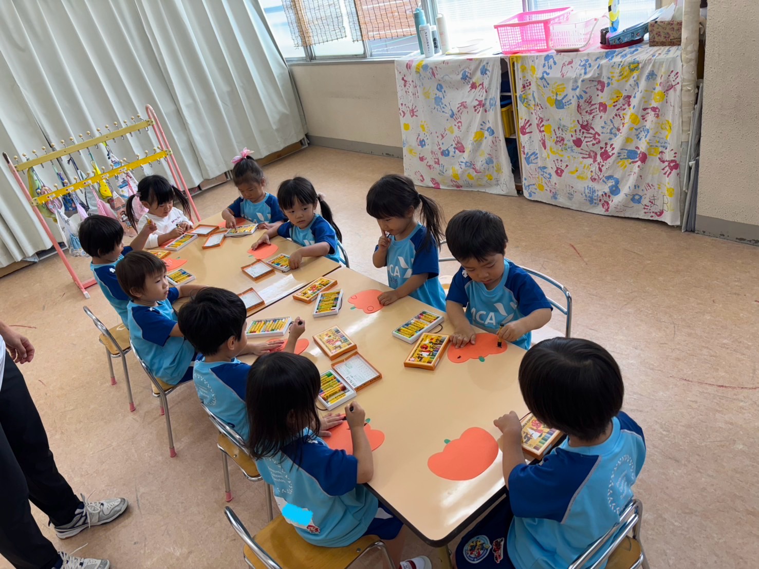 お部屋ではハロウィンのおばけかぼちゃを作りました。クレパスで模様を描いて、目や口をシールで貼りました。紙コップおばけから始まって、これでハロウィン製作は終わりです。ハロウィン当日は、お芋ほりですが(笑)飾ってみてね!