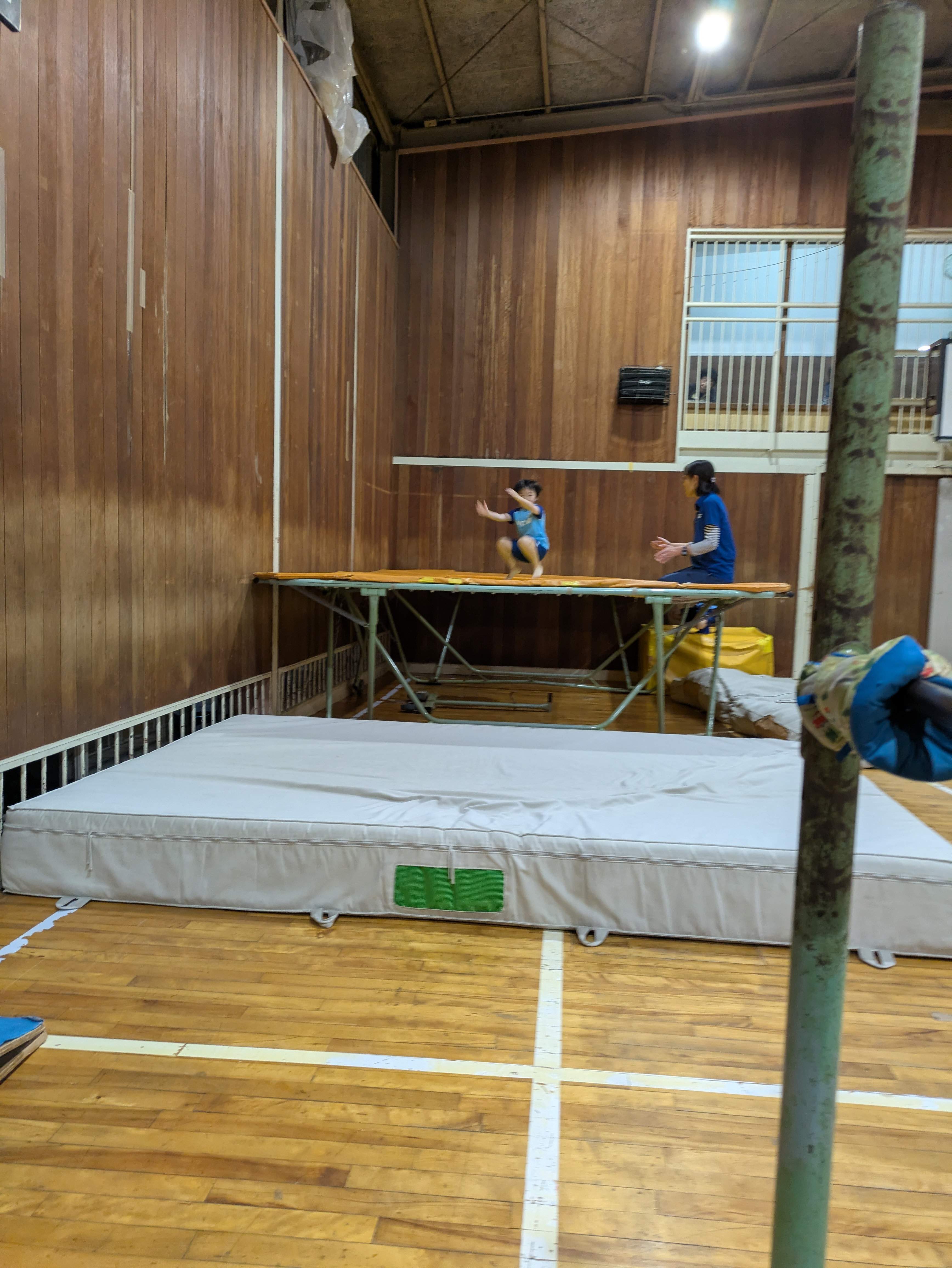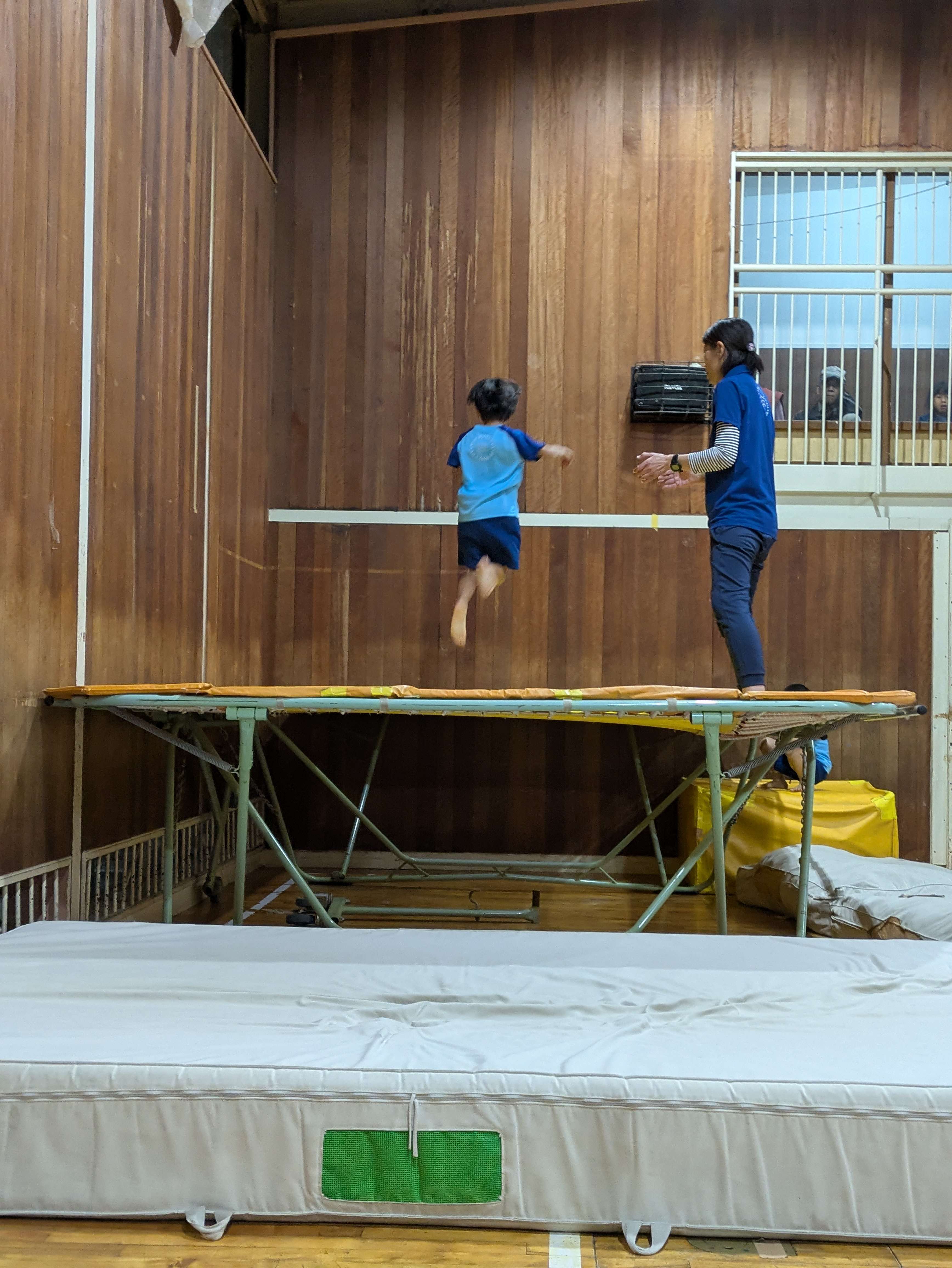 トランポリンでも、高いところでも技をしっかりできるよう体をコントロールしましょう!