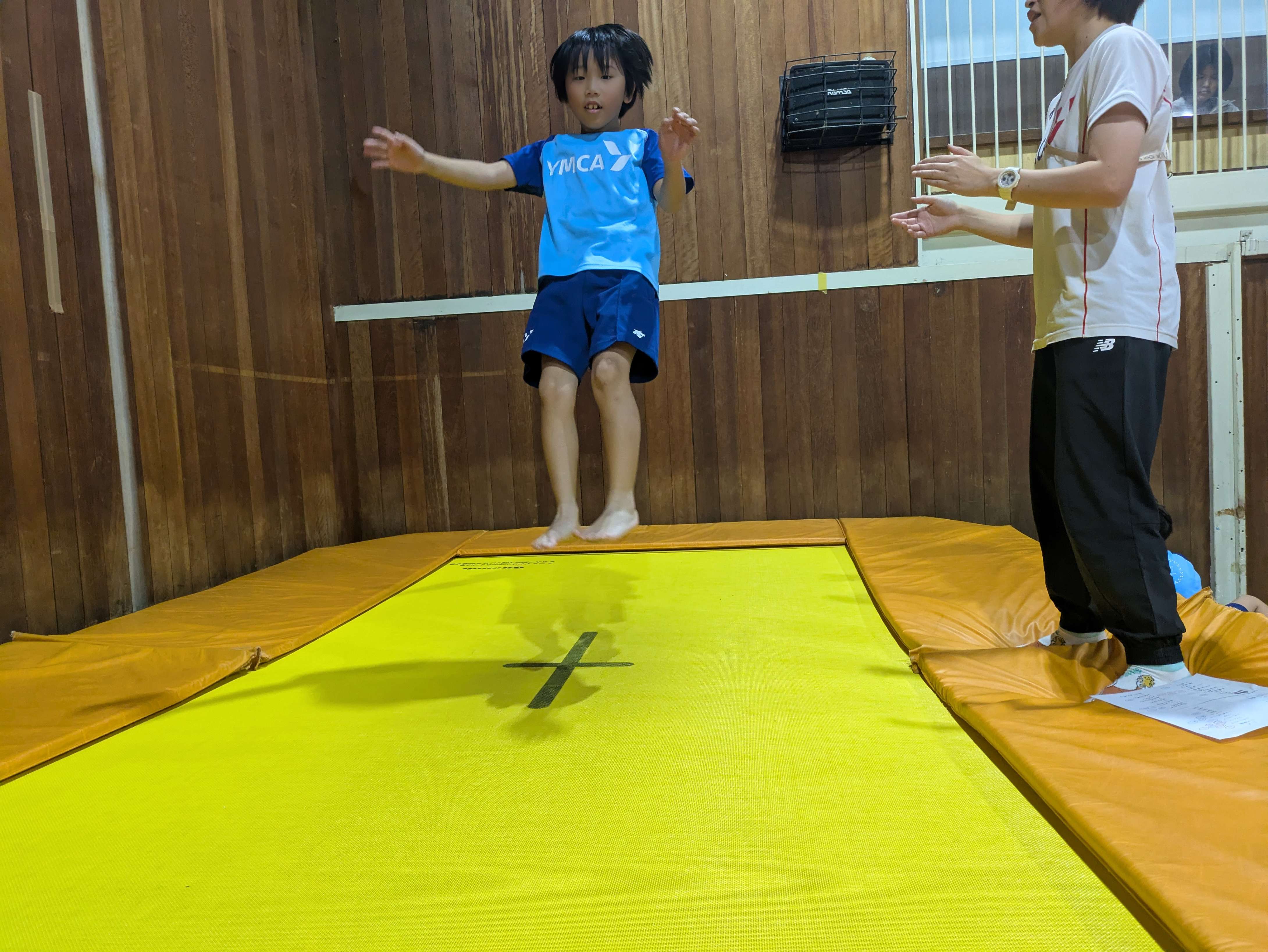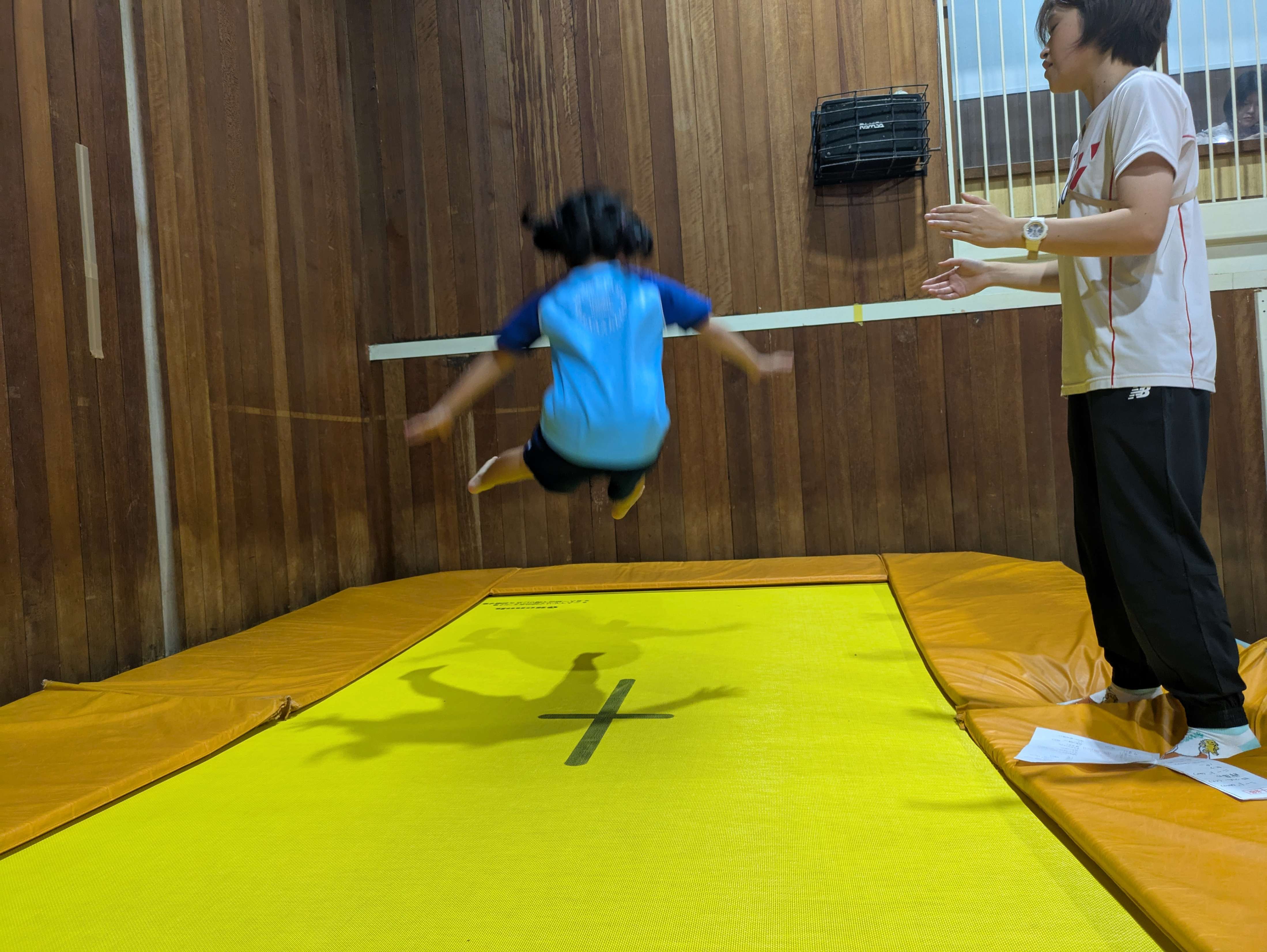 トランポリンでは、体に力を入れてコントロールして跳べるようにしましょう!