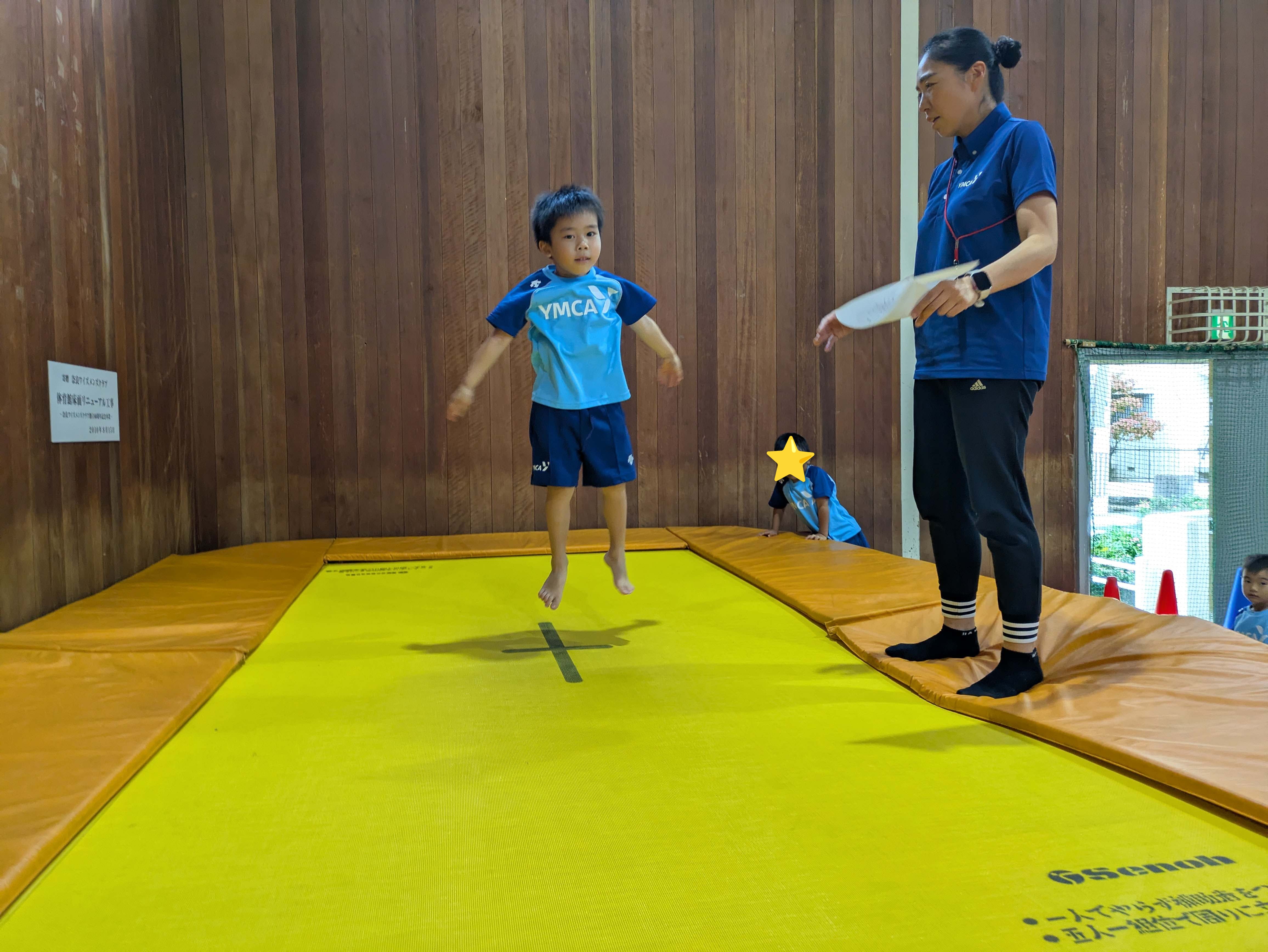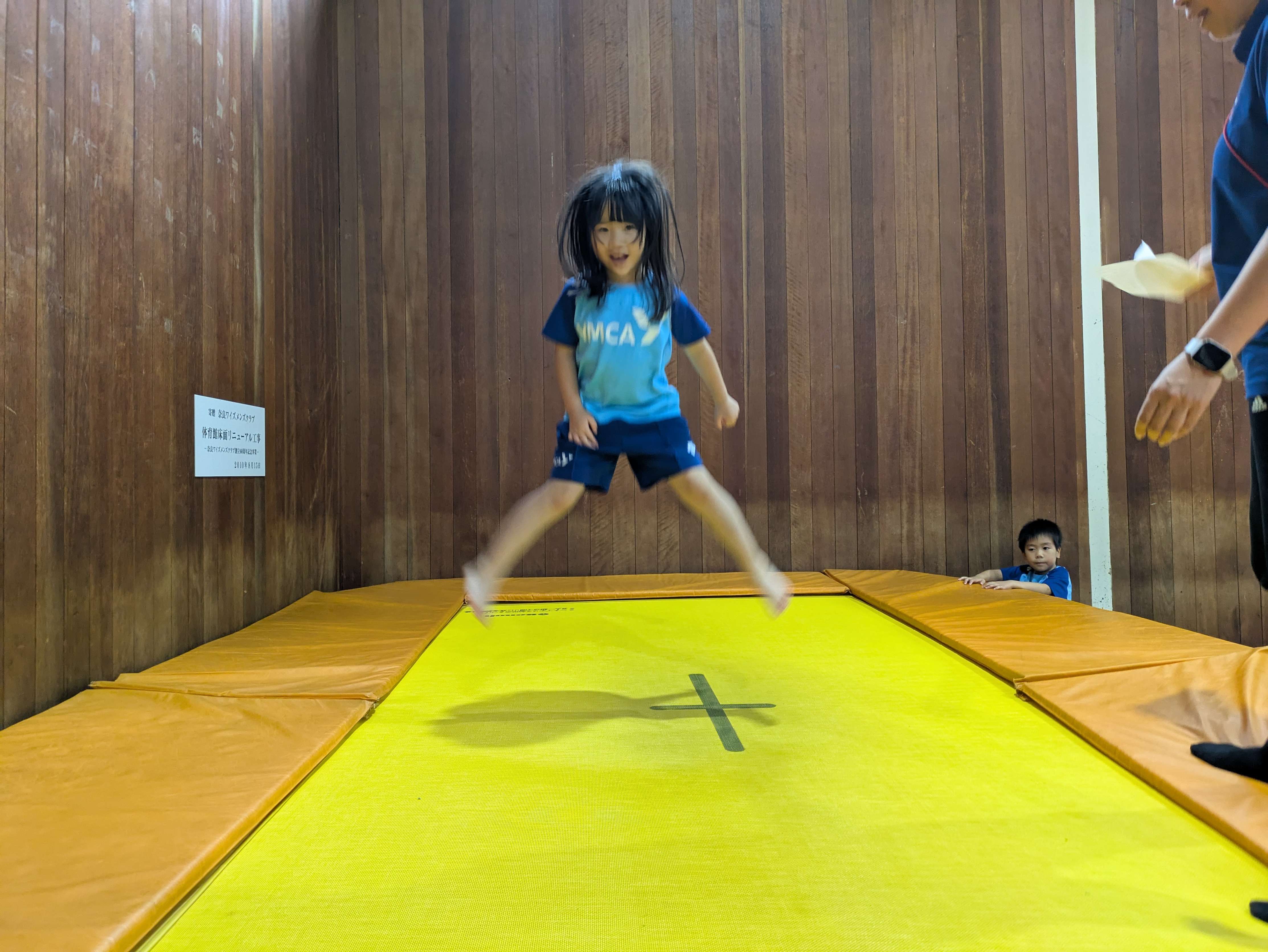 トランポリンでは、大きく技ができるように頑張りましょう!
