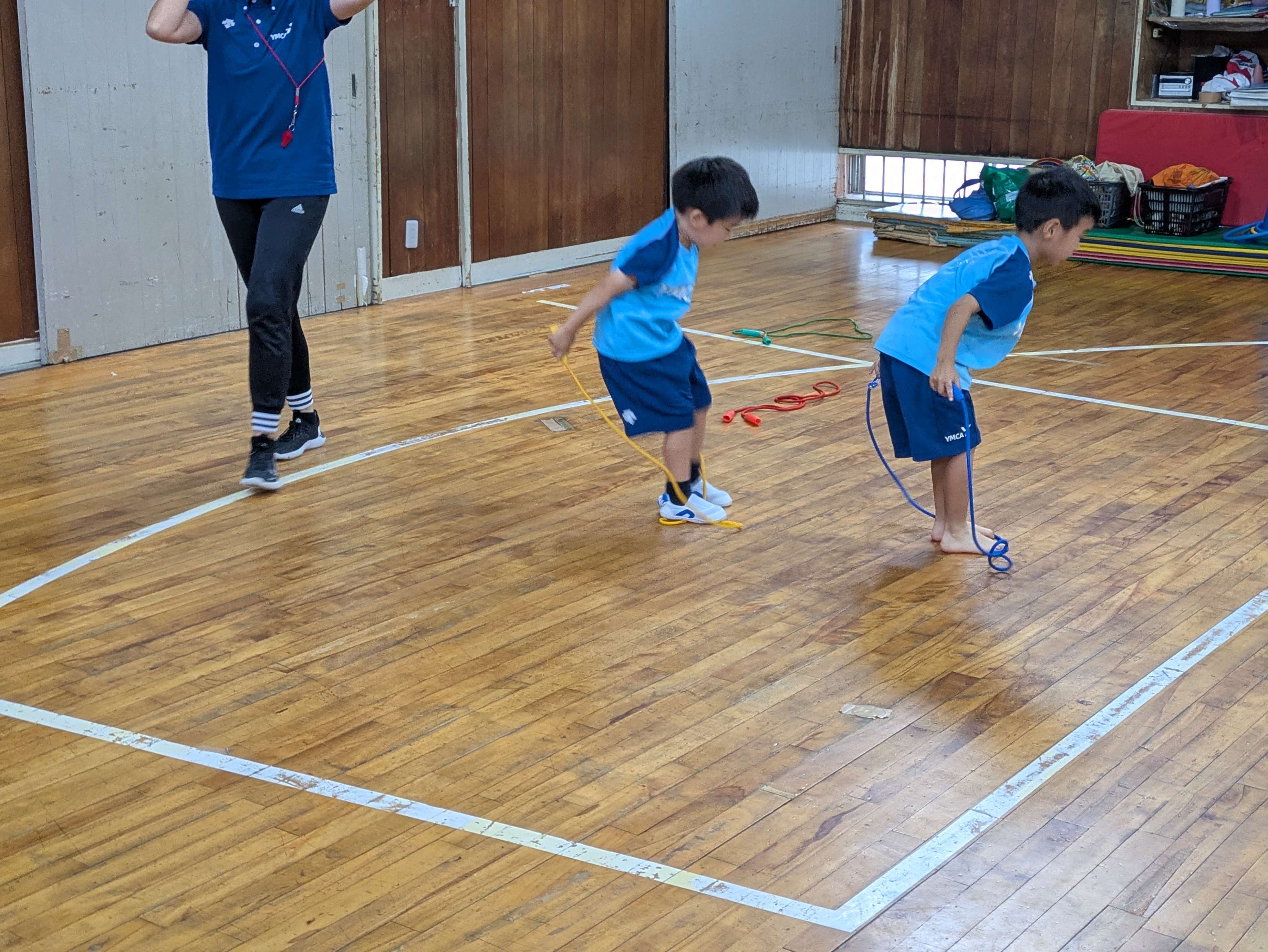 ボールを挟んでのジャンプでは、しっかり足に力を入れてボールを落とさずにすることができましたね!なわとびも、どんどん上手になってきました(*^^*)