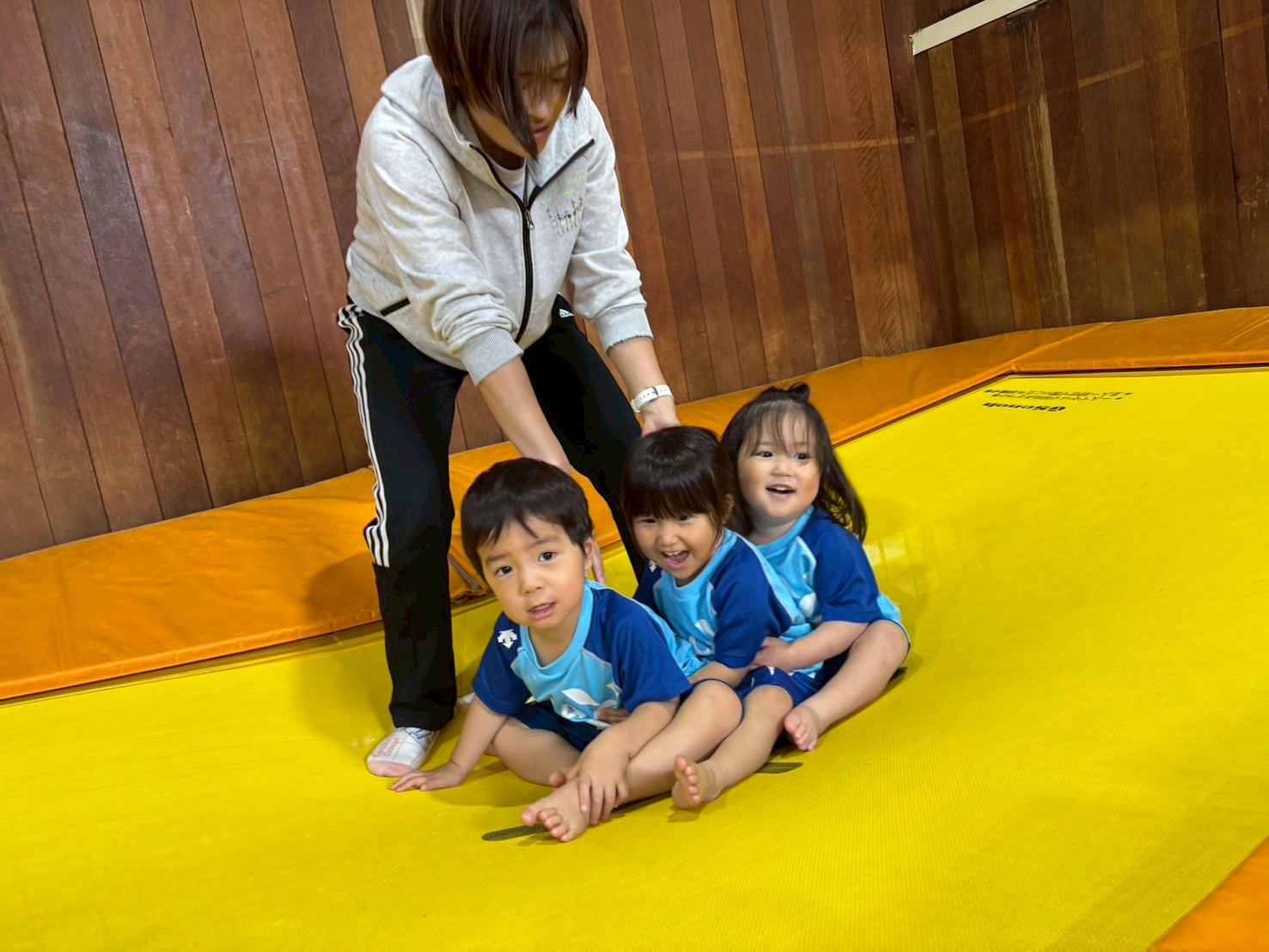全員がしっかりひとりで跳んでいます!体幹も強くなってきてジャンプの高さや、まっすぐ跳ぶ事などが成長しているのが見てとれます!