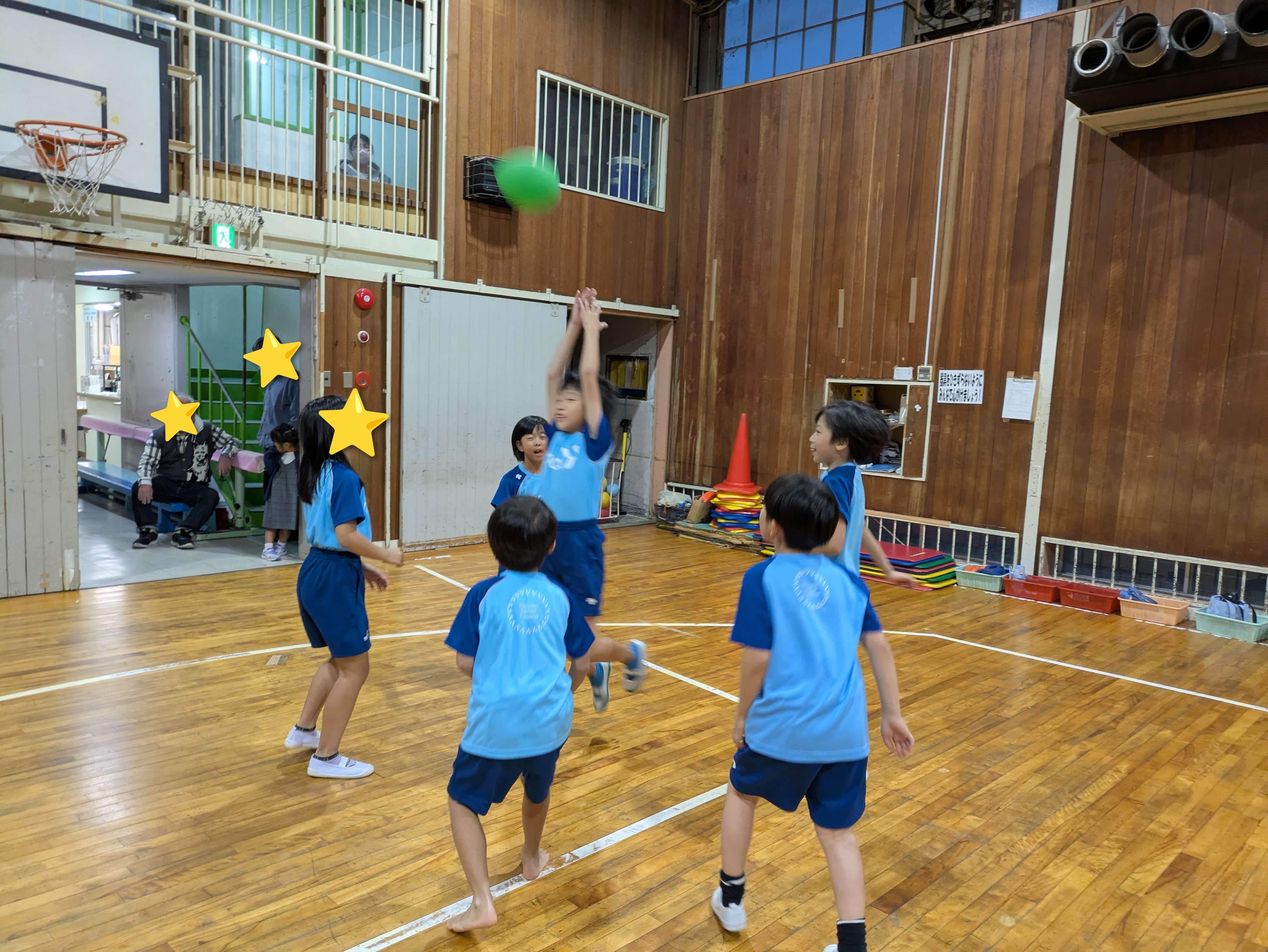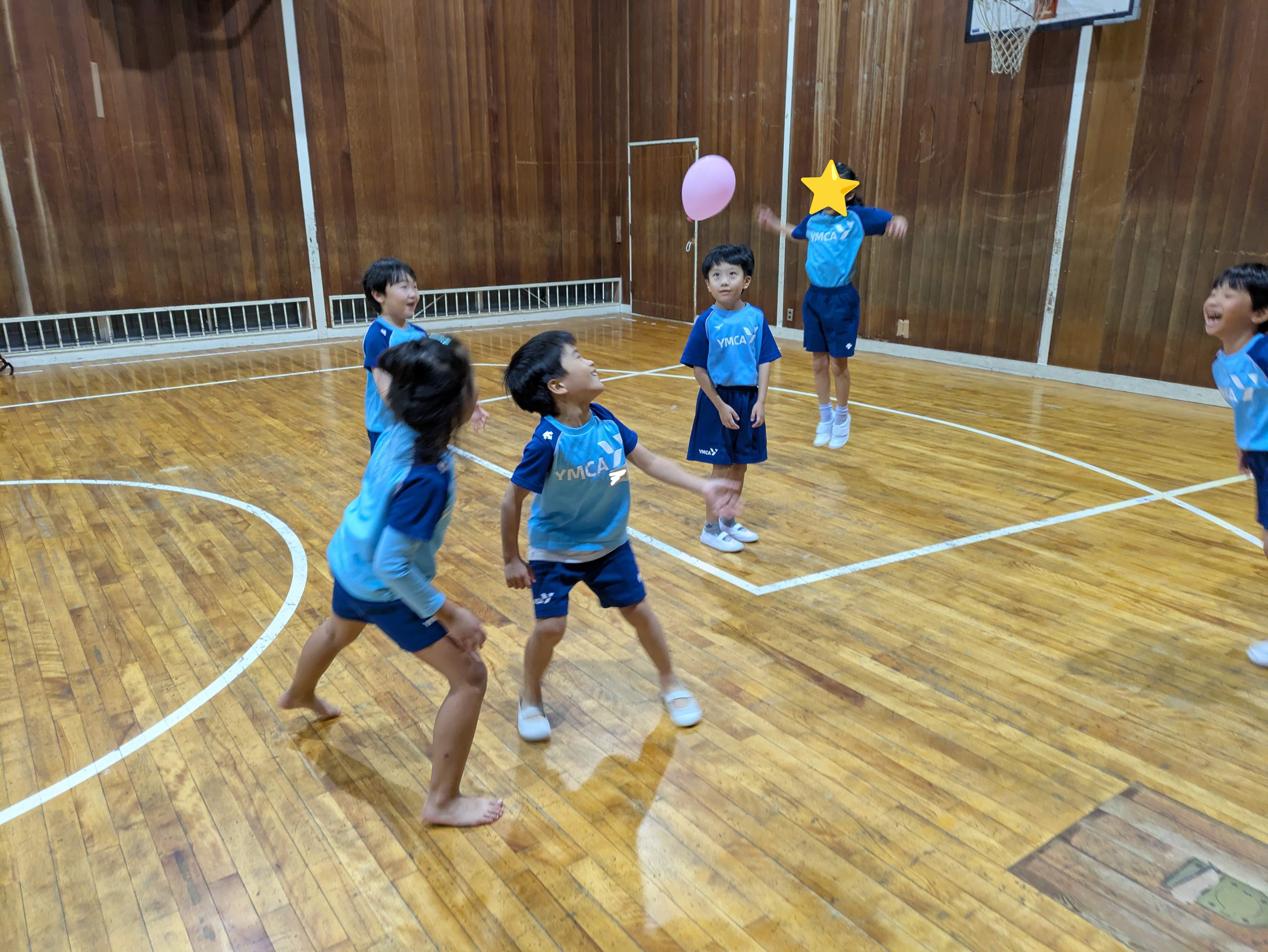 今日ははじめに、風船バレーをしました。
