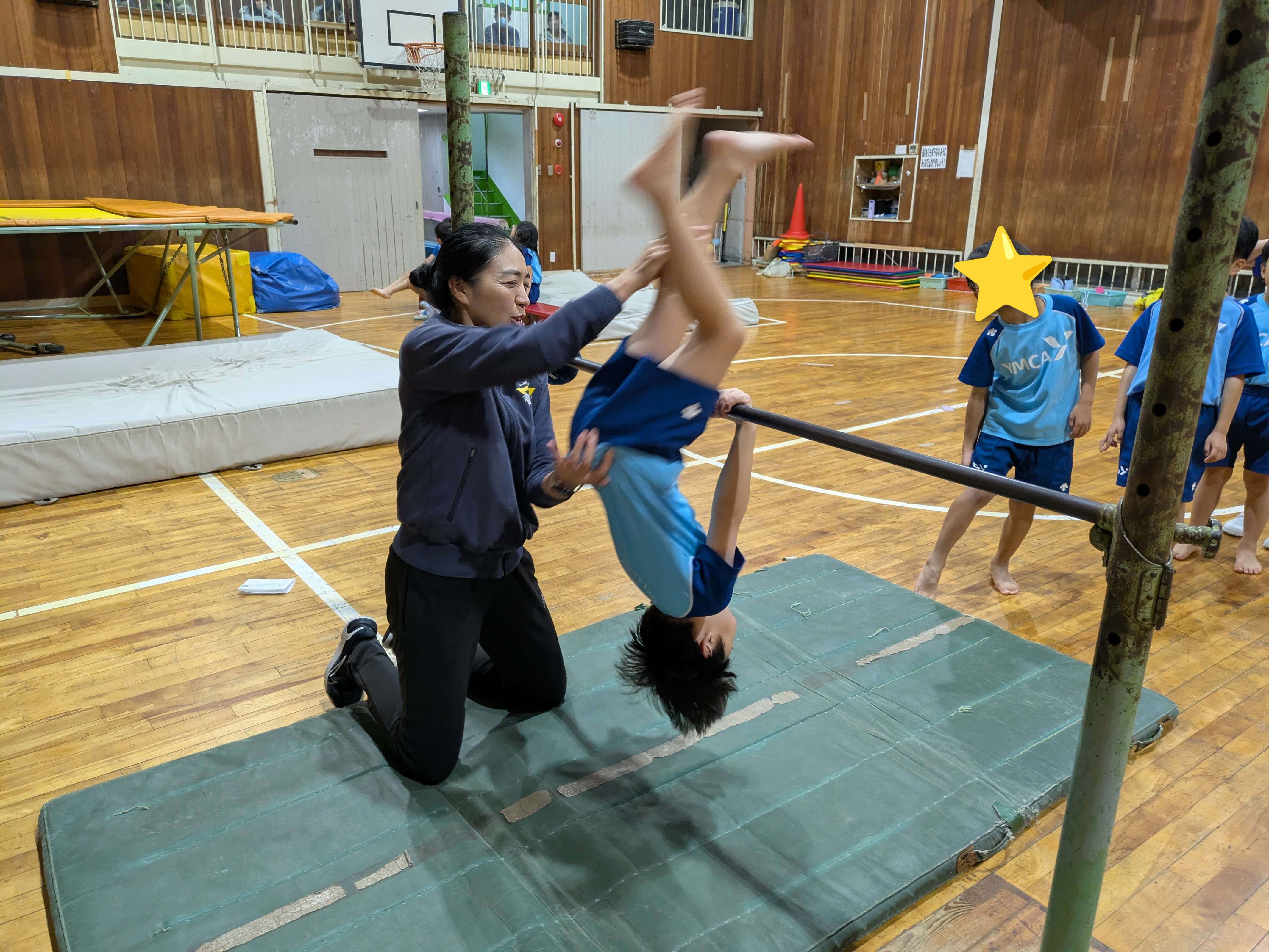鉄棒では、しっかり手首を回してまわりましょう!