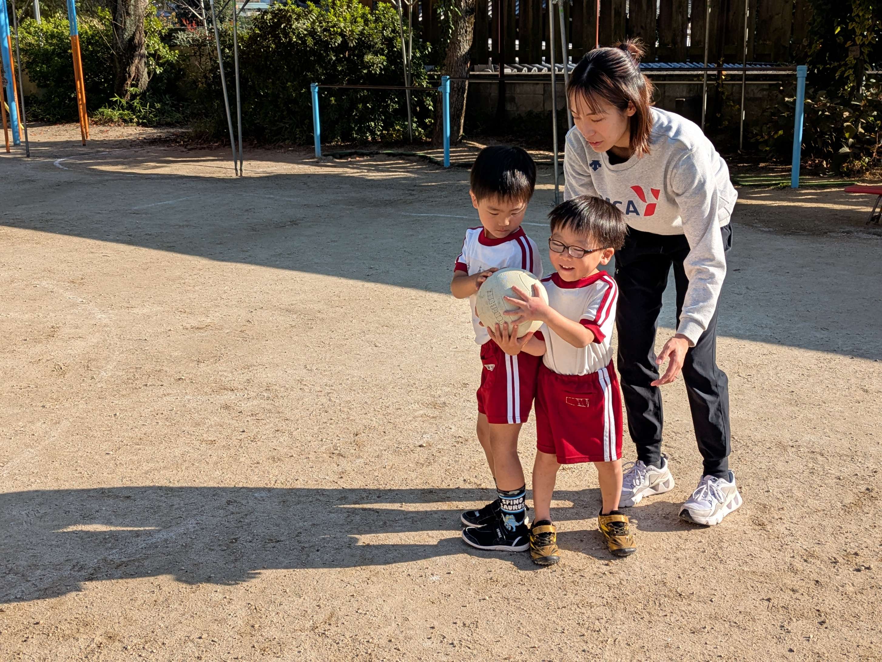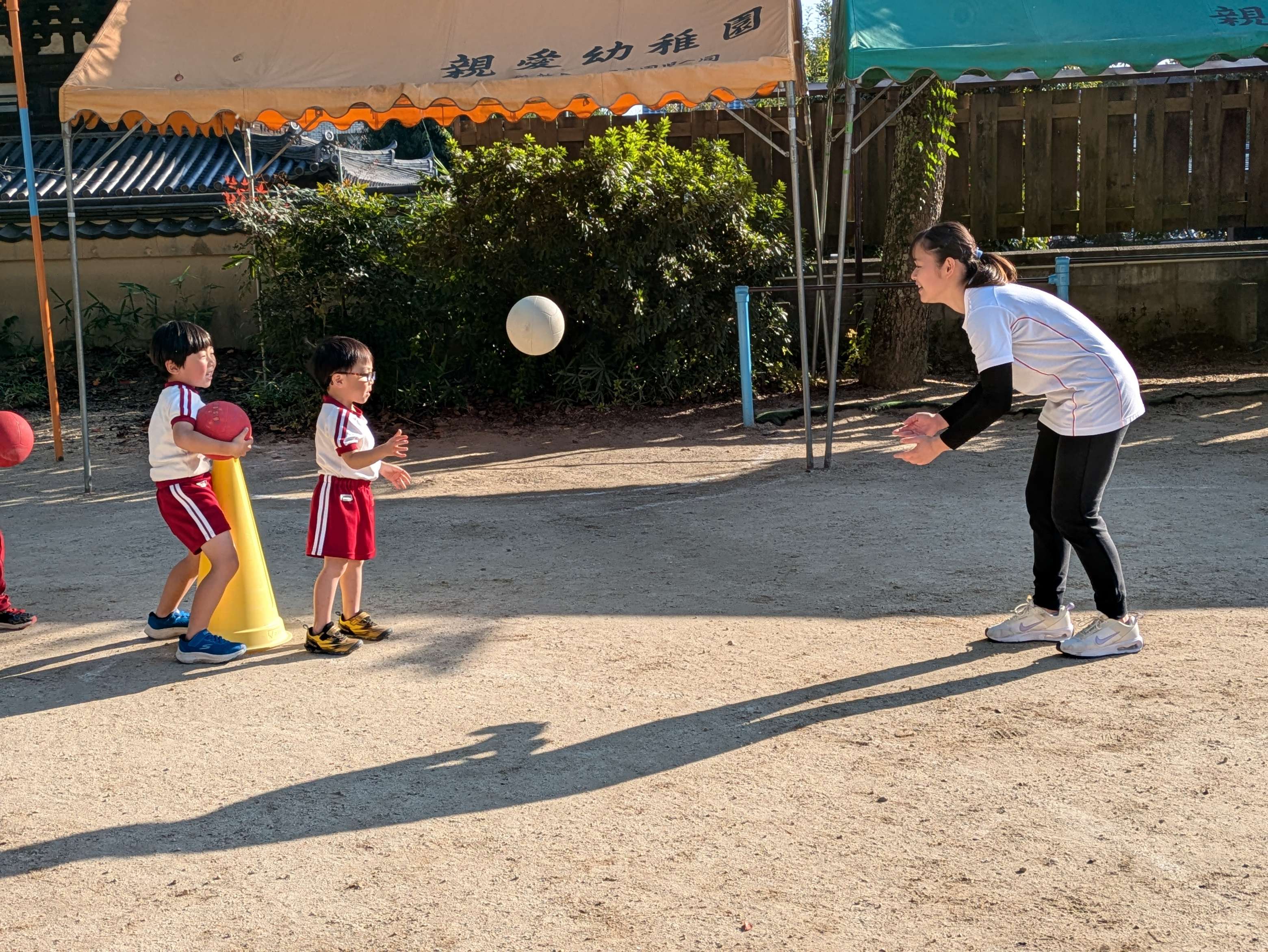 また、リーダーとのキャッチボールでは、しっかり手でお皿を作って落とさずにキャッチできました!転がったボールを追いかける際には、ボールより速く走って回り込んでから、ボールを取ることができていました!