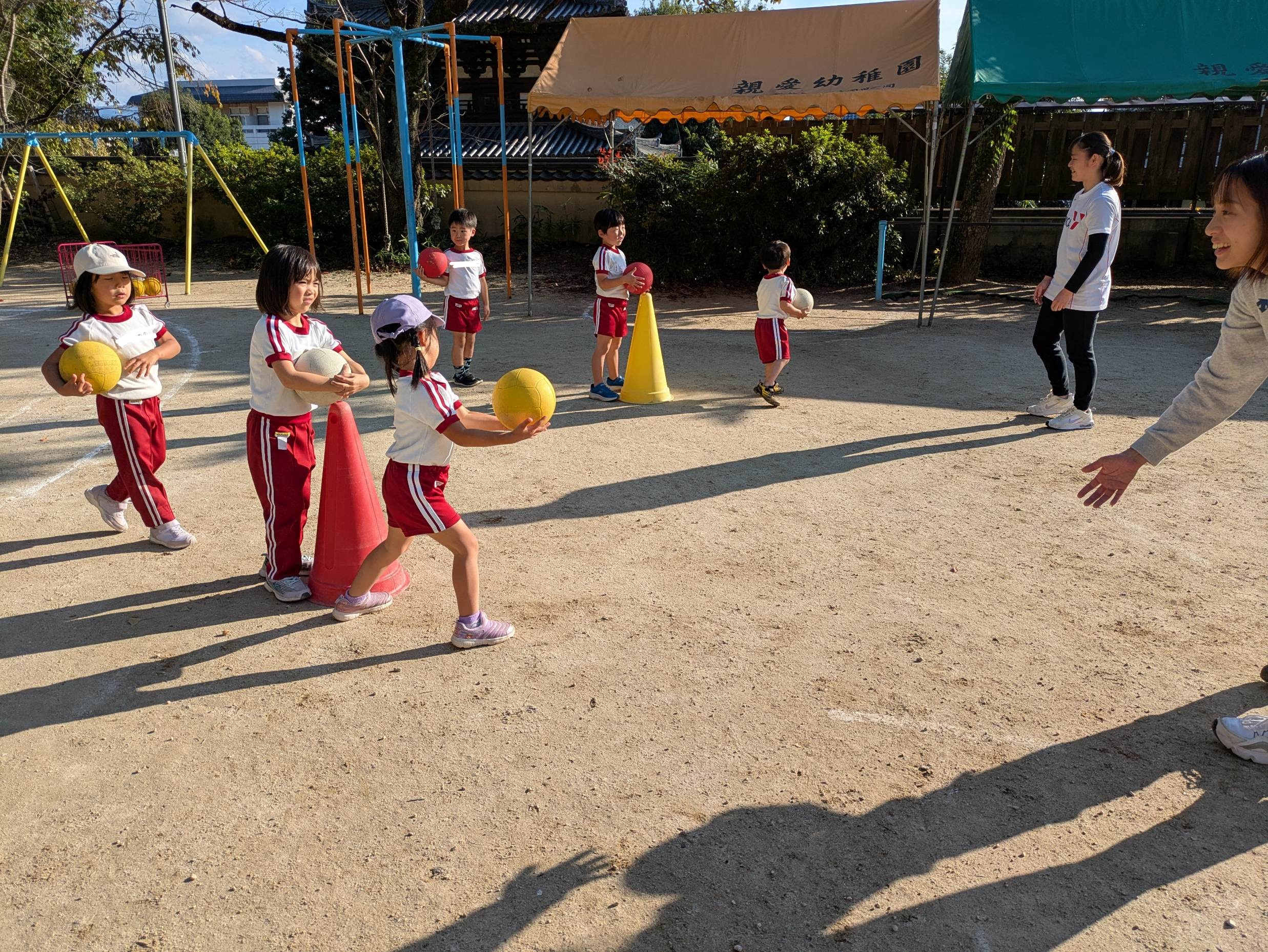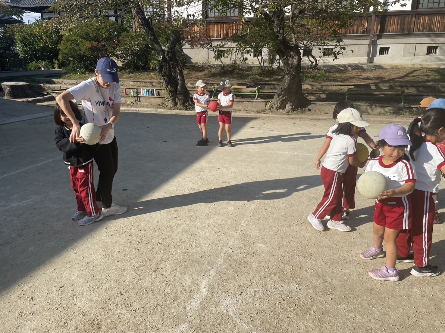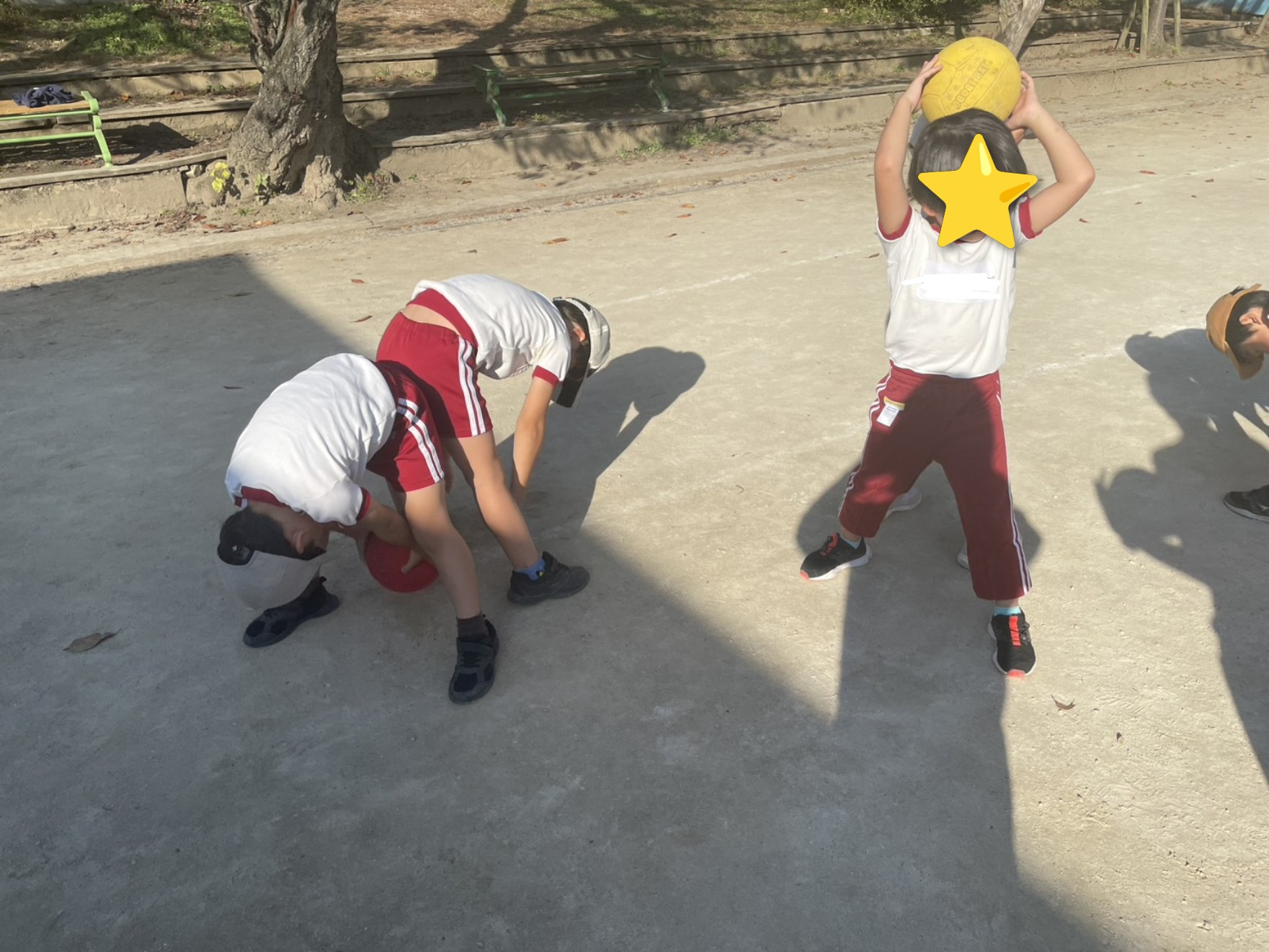 2人組になってボールを渡しあったり、バウンドのキャッチボールをしたりしました!お友だちのことを考えて投げたり渡したりすることができましたね!