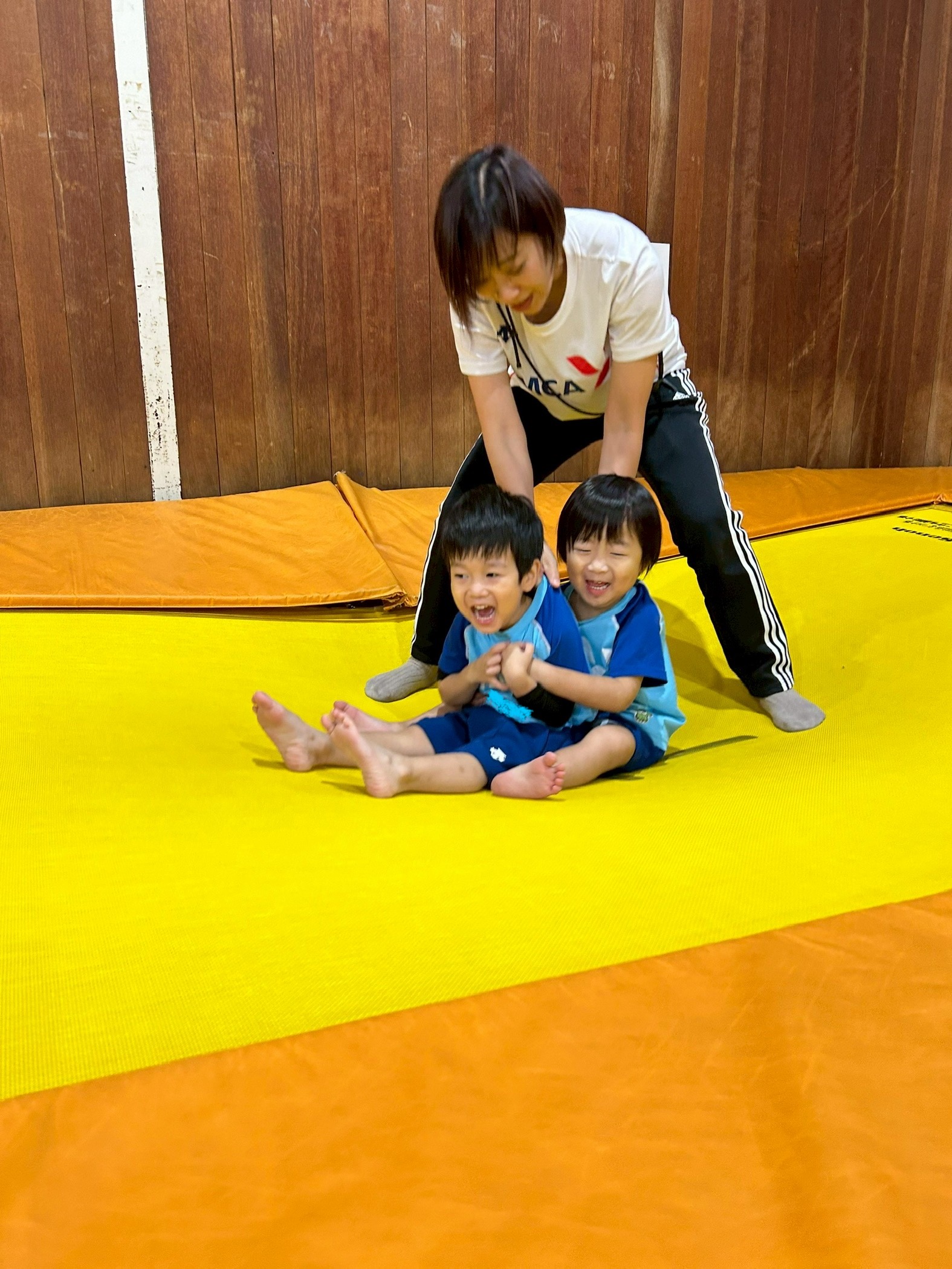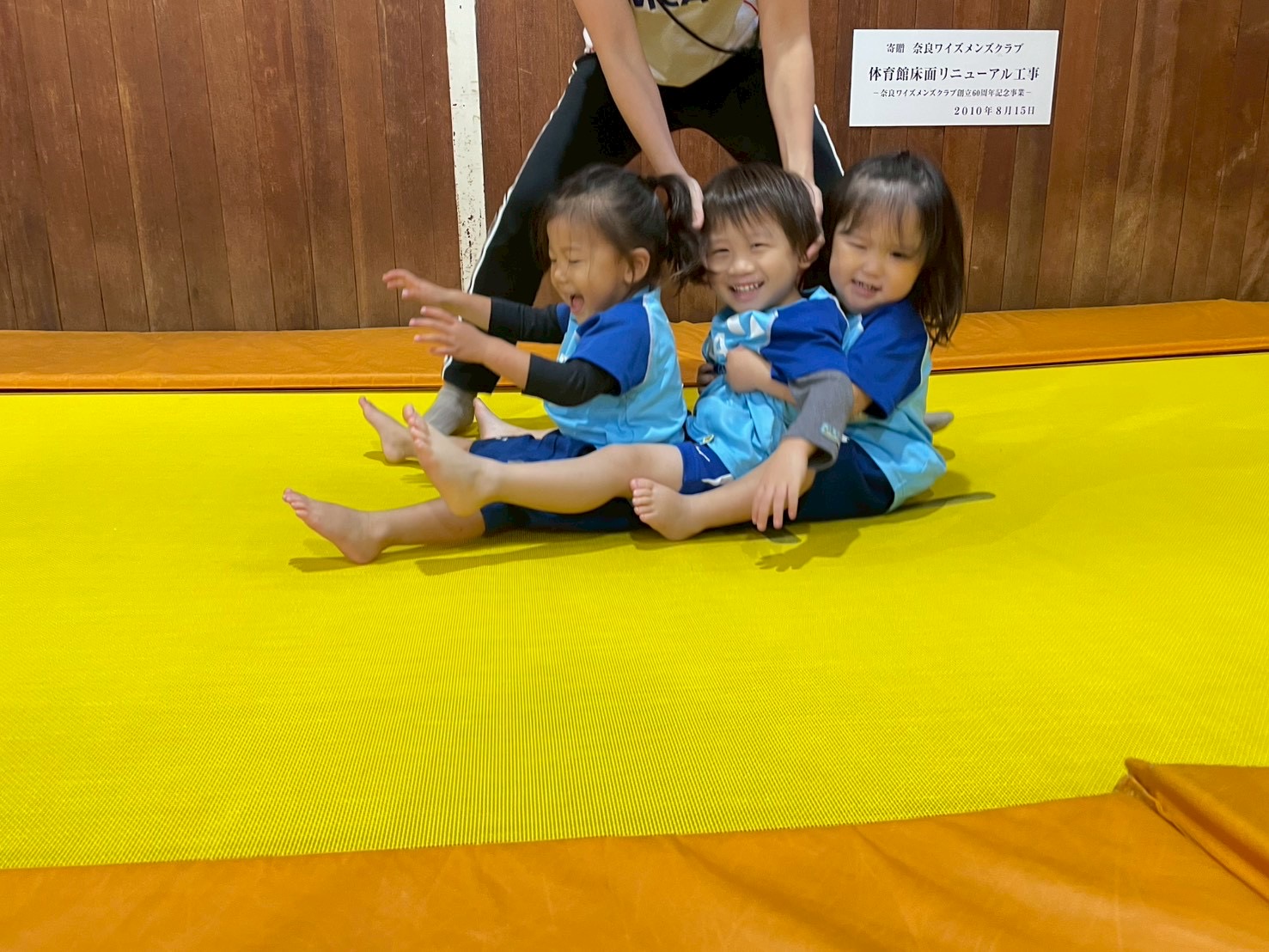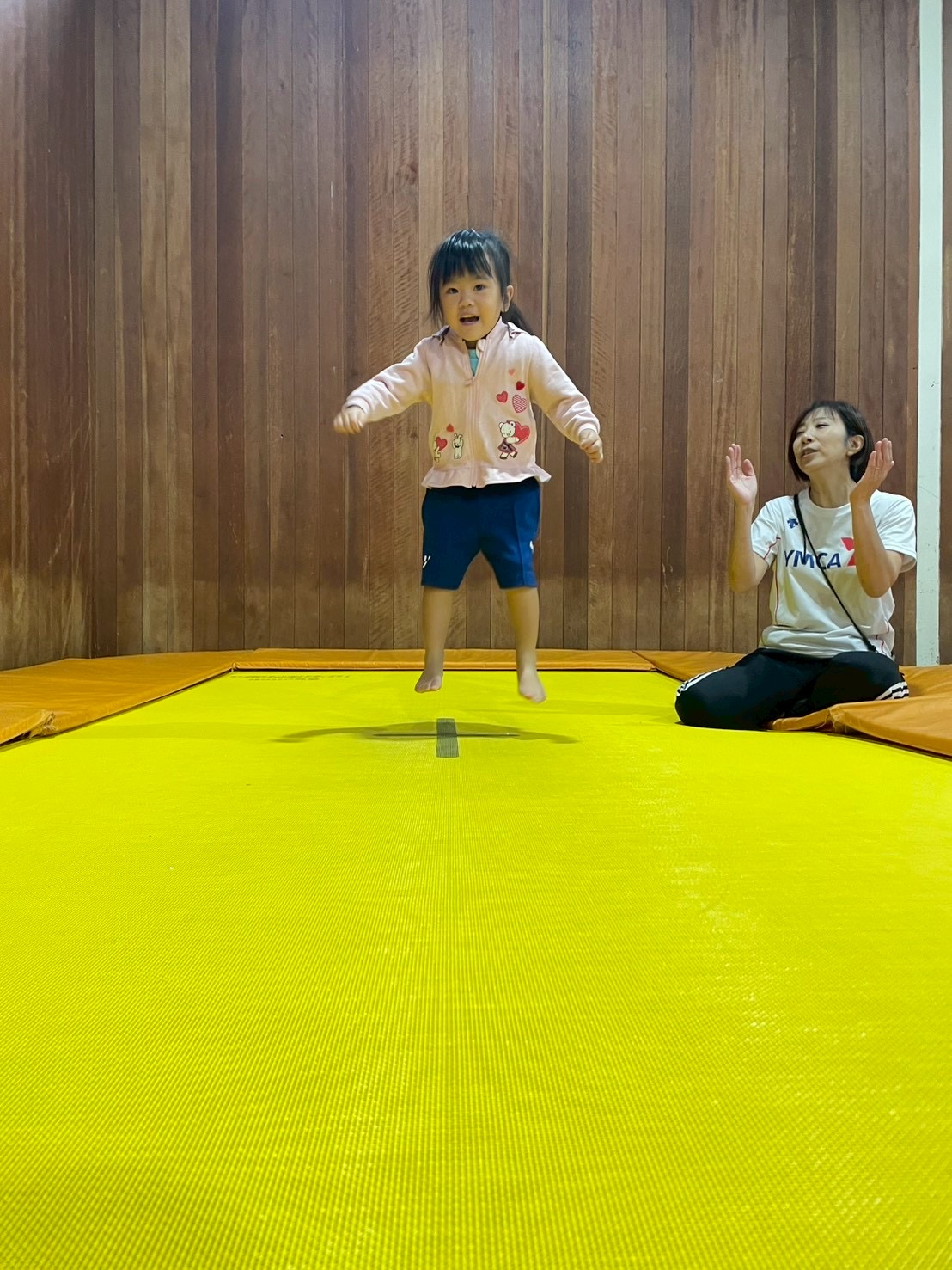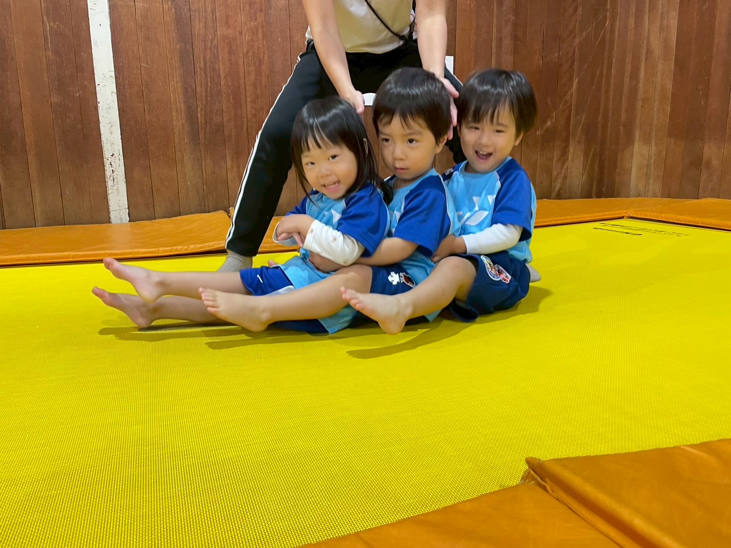 トランポリンはみんなハッスルして跳んでいました。まっすぐ上に。高く。手を挙げながら。いろいろできることが増えてきました。そして何よりみんなの大好きが伝わってきます。