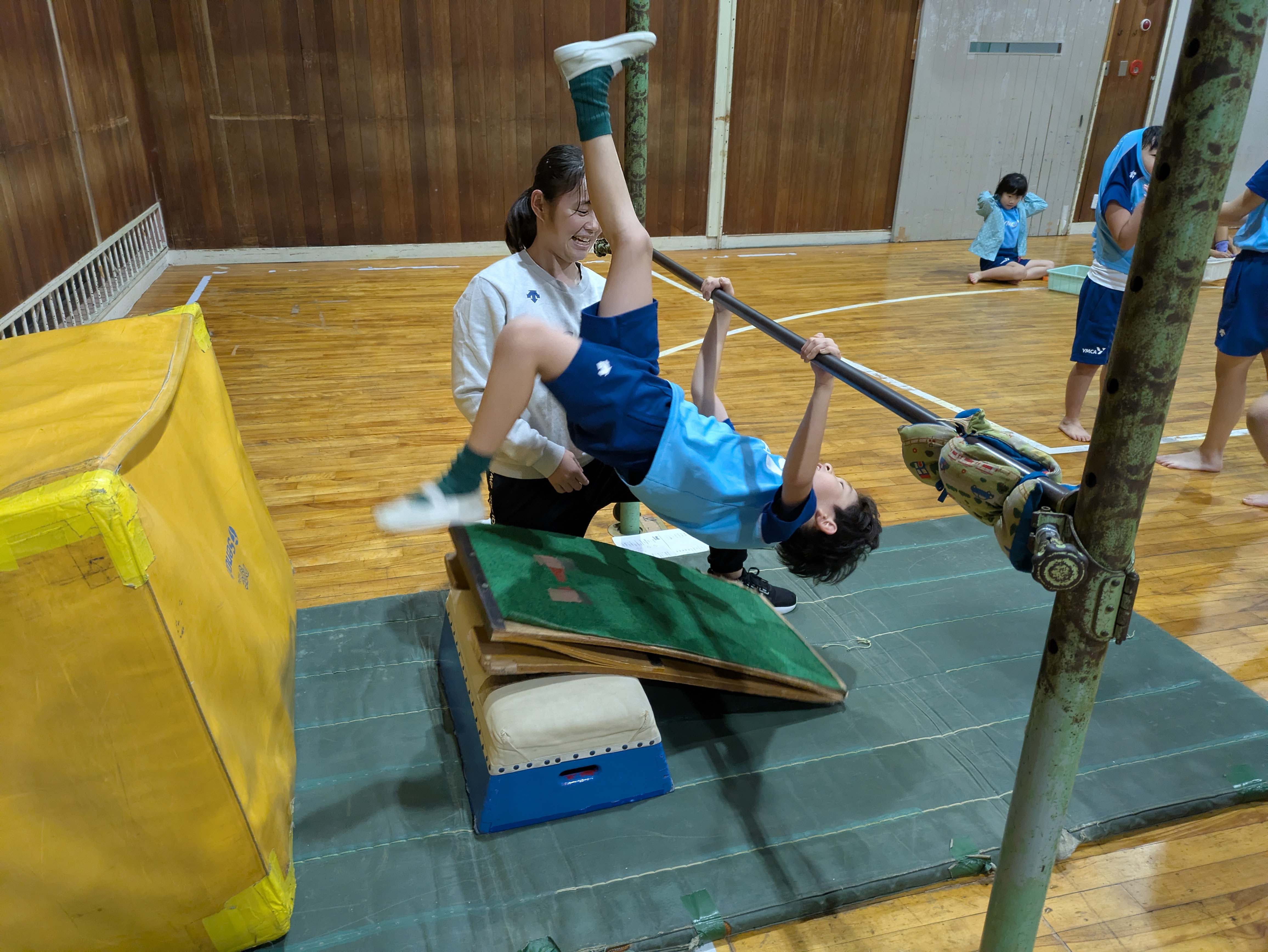 鉄棒の逆上がりでは、だいぶ勢いよくできるようになってきましたね!諦めずに頑張りましょう!