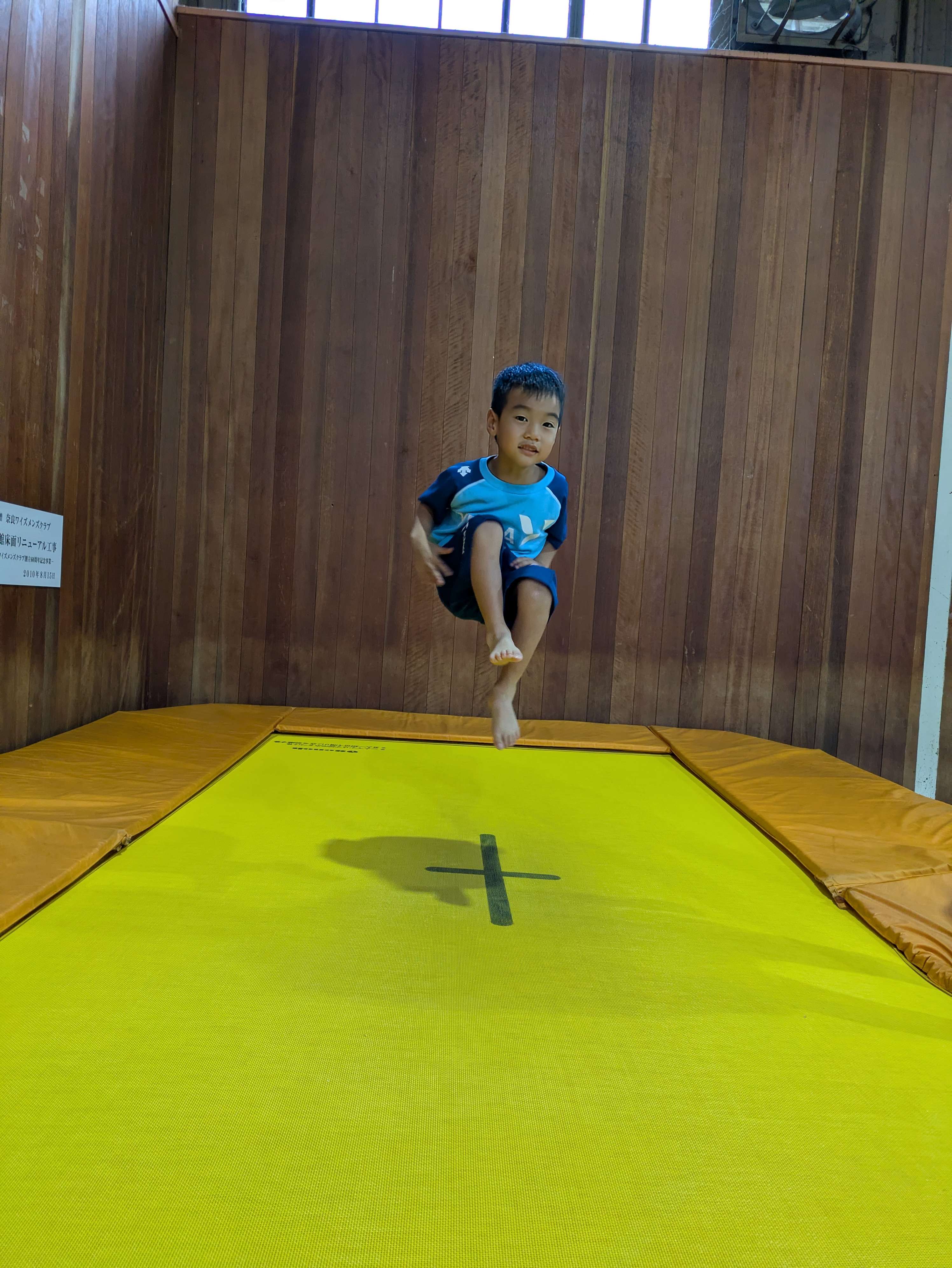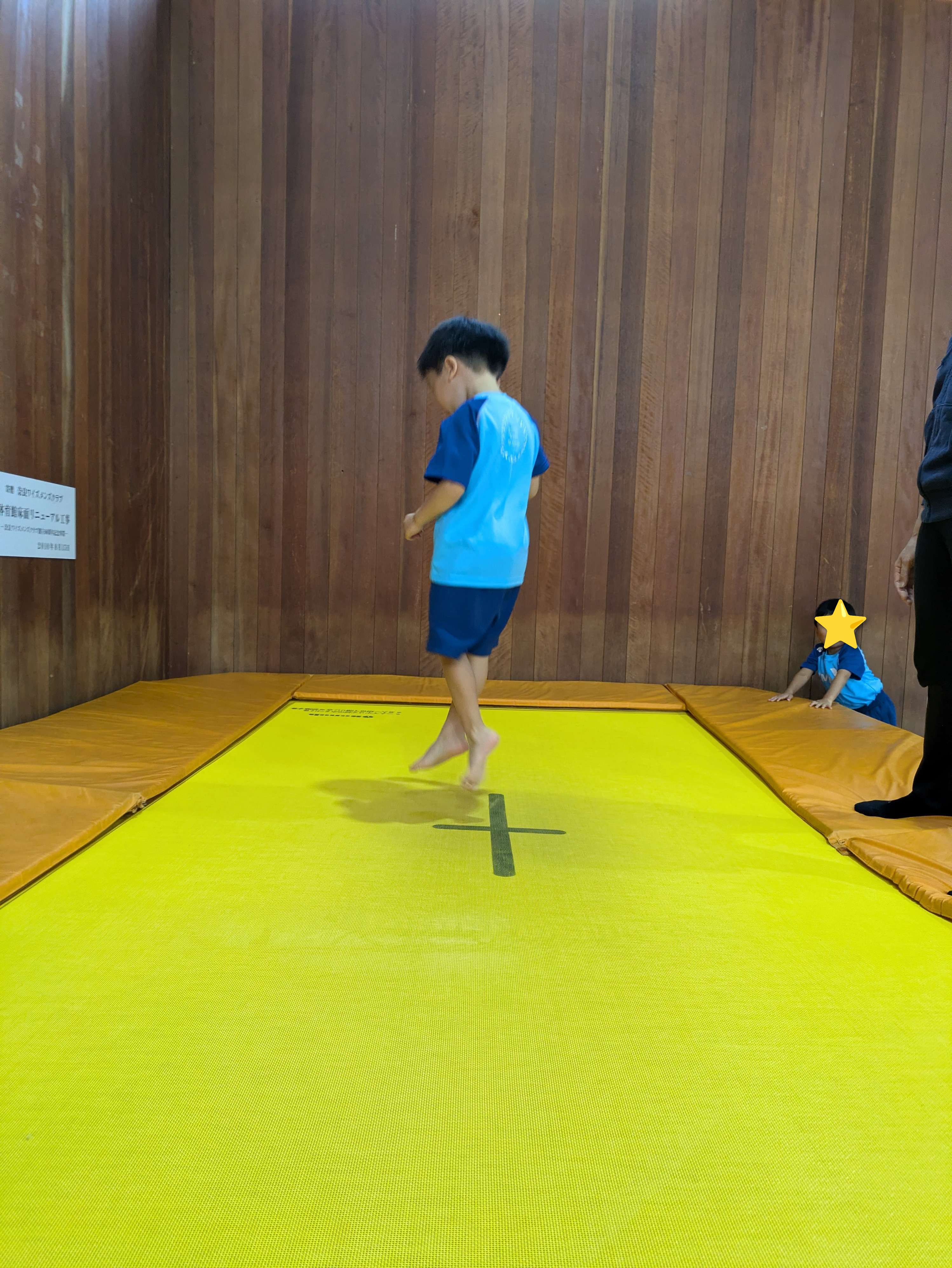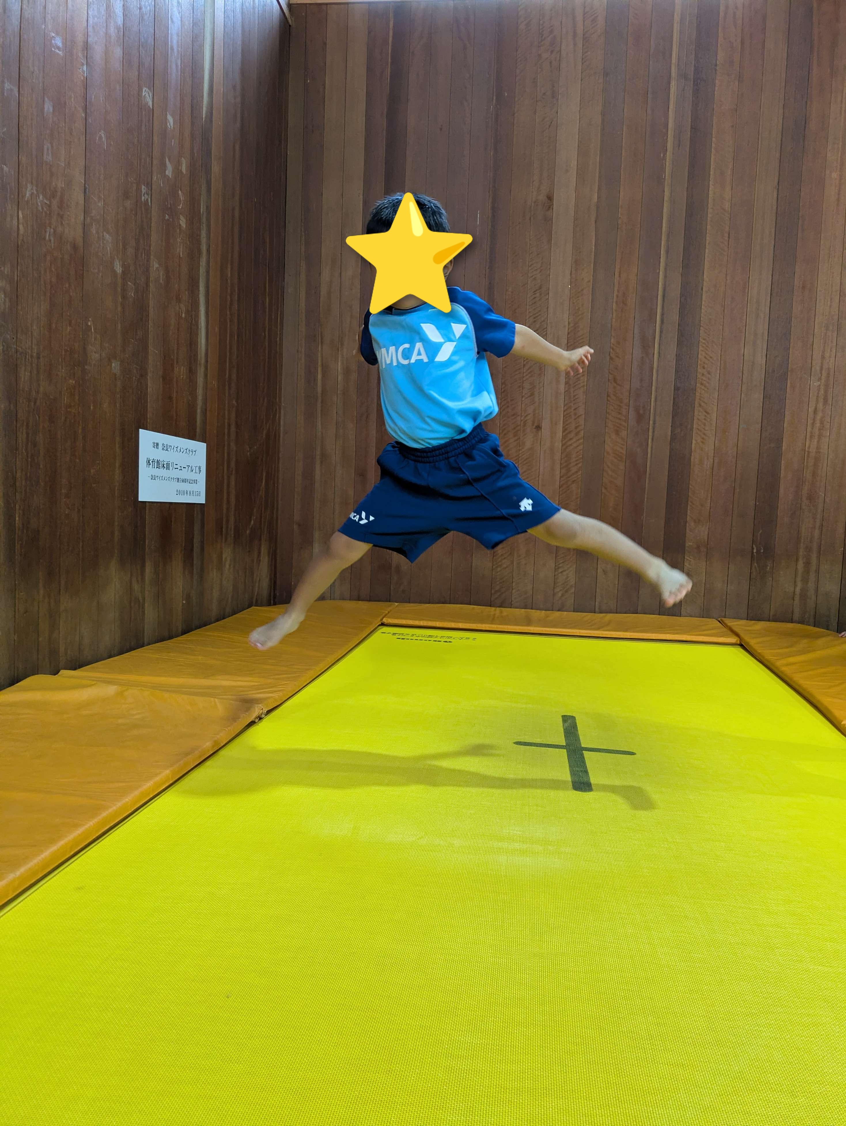 トランポリンでは、同じところで跳び続けられるように頑張りましょう!