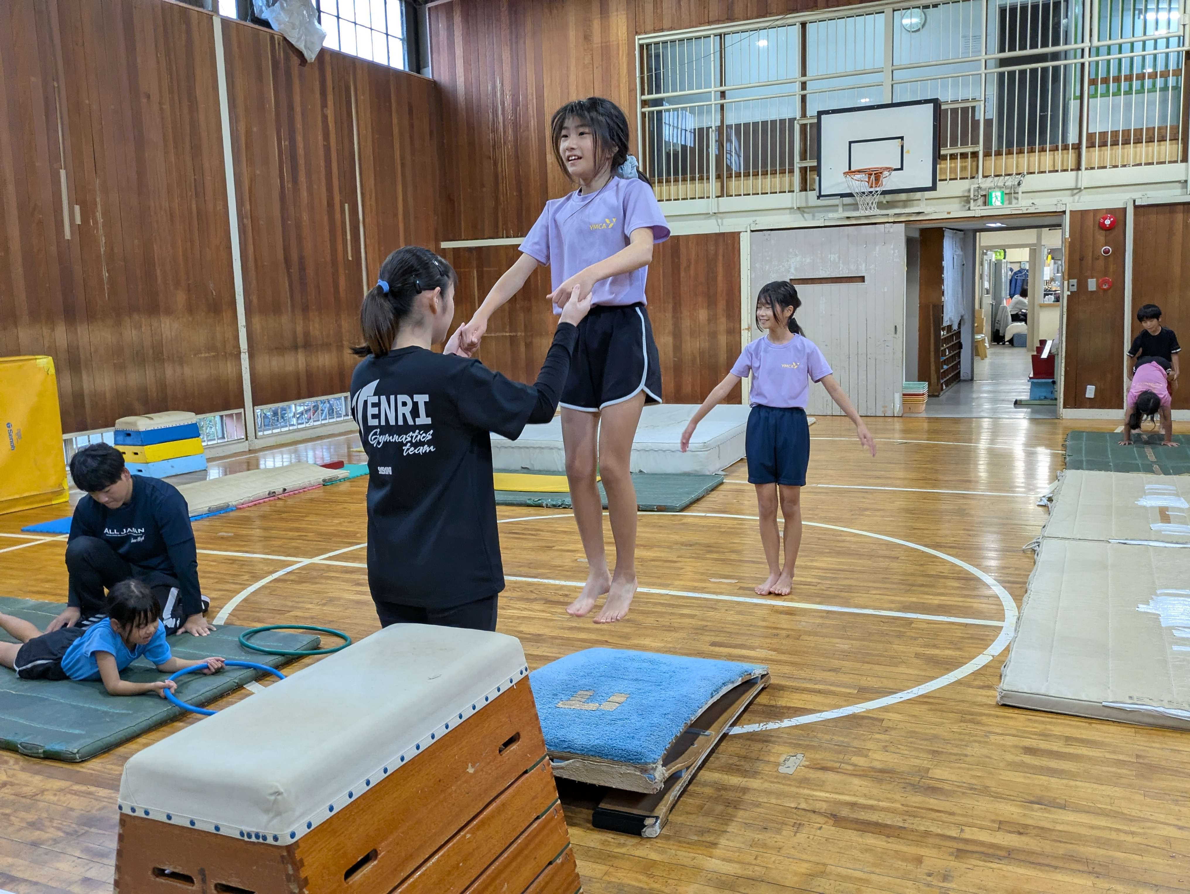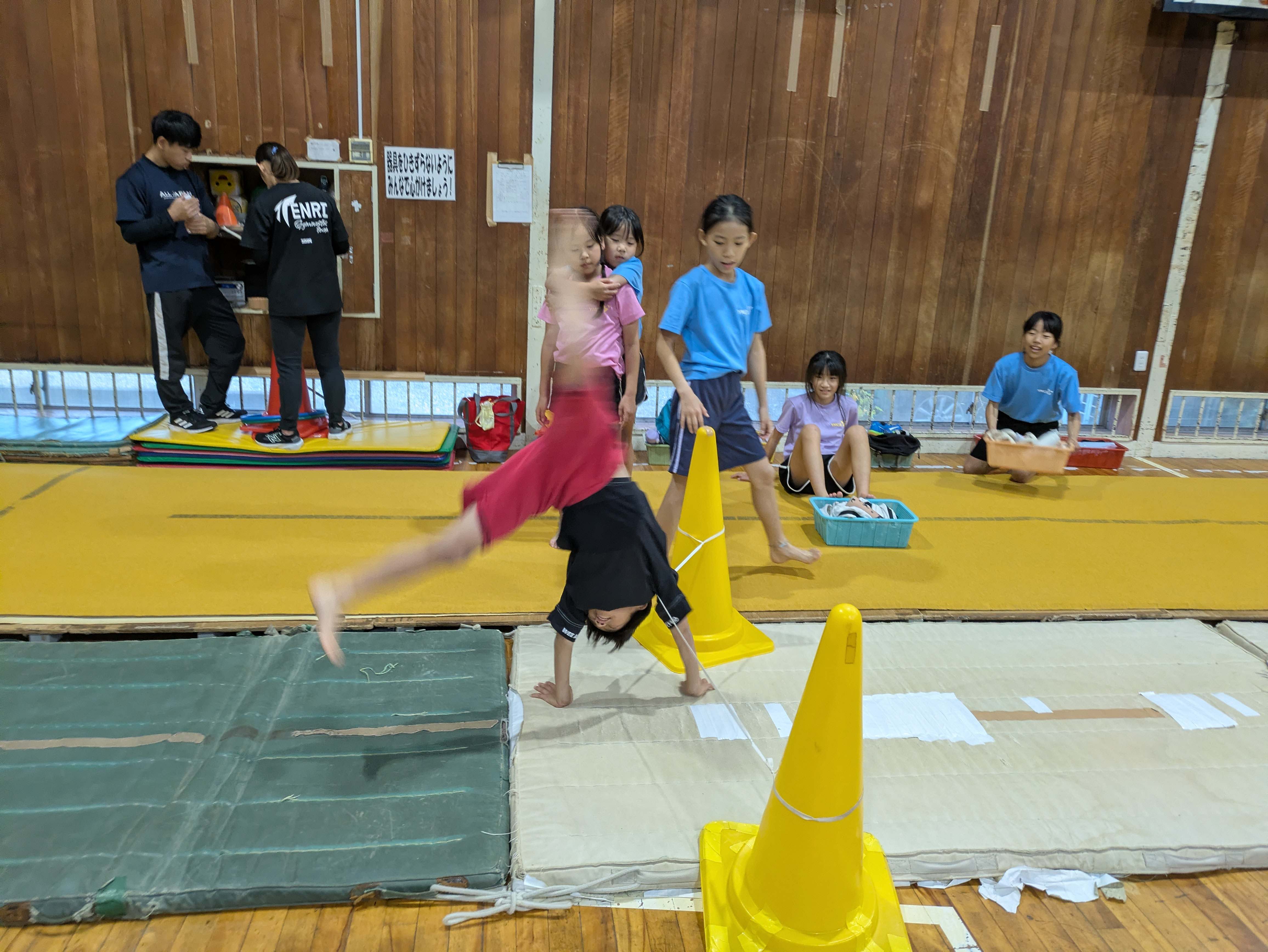 ロイタージャンプでは、リーダーと手をつないでロイター板をしっかり蹴れるように練習しました!少し使い方がわかったと思うので、助走からも同じようにできるようにしましょう!