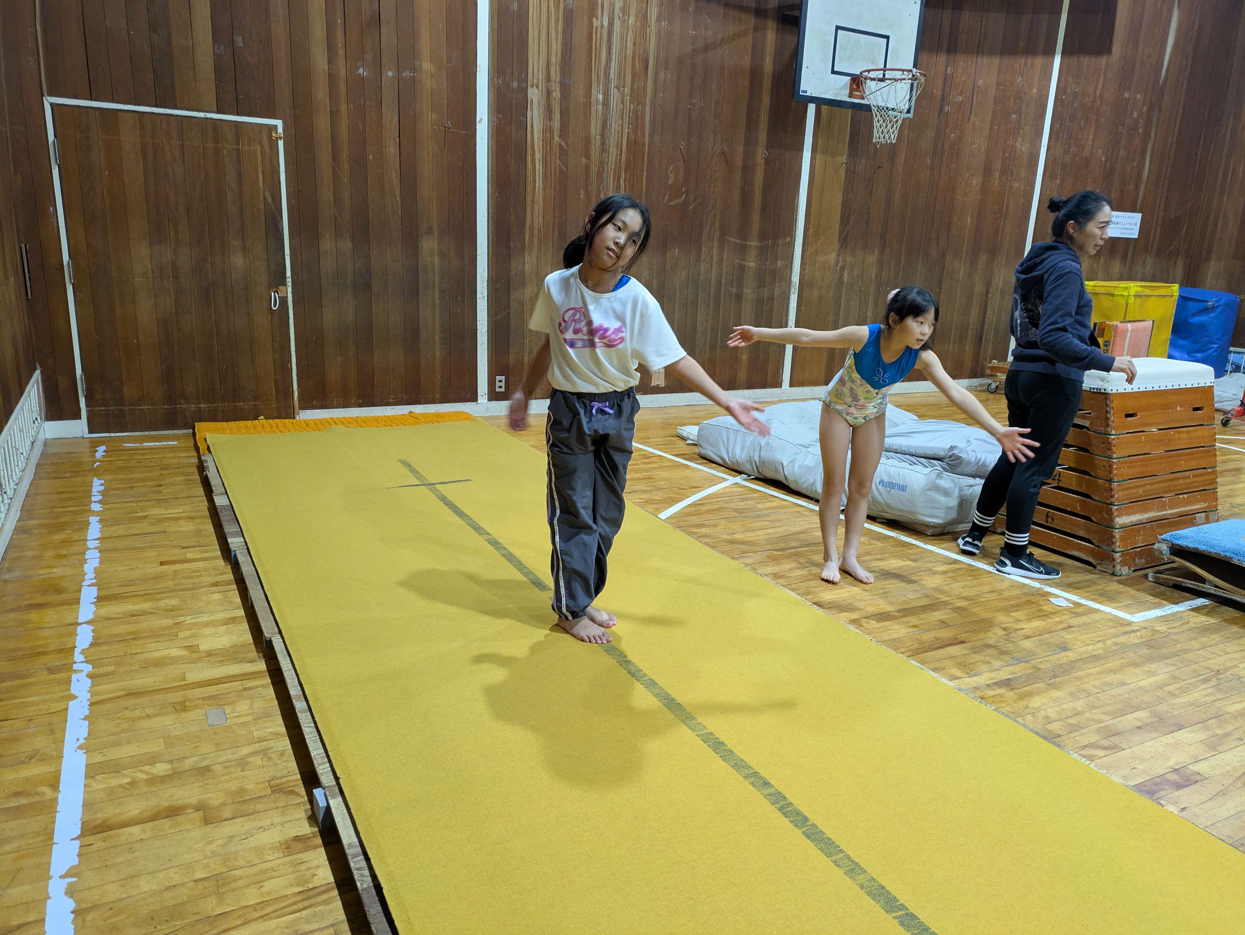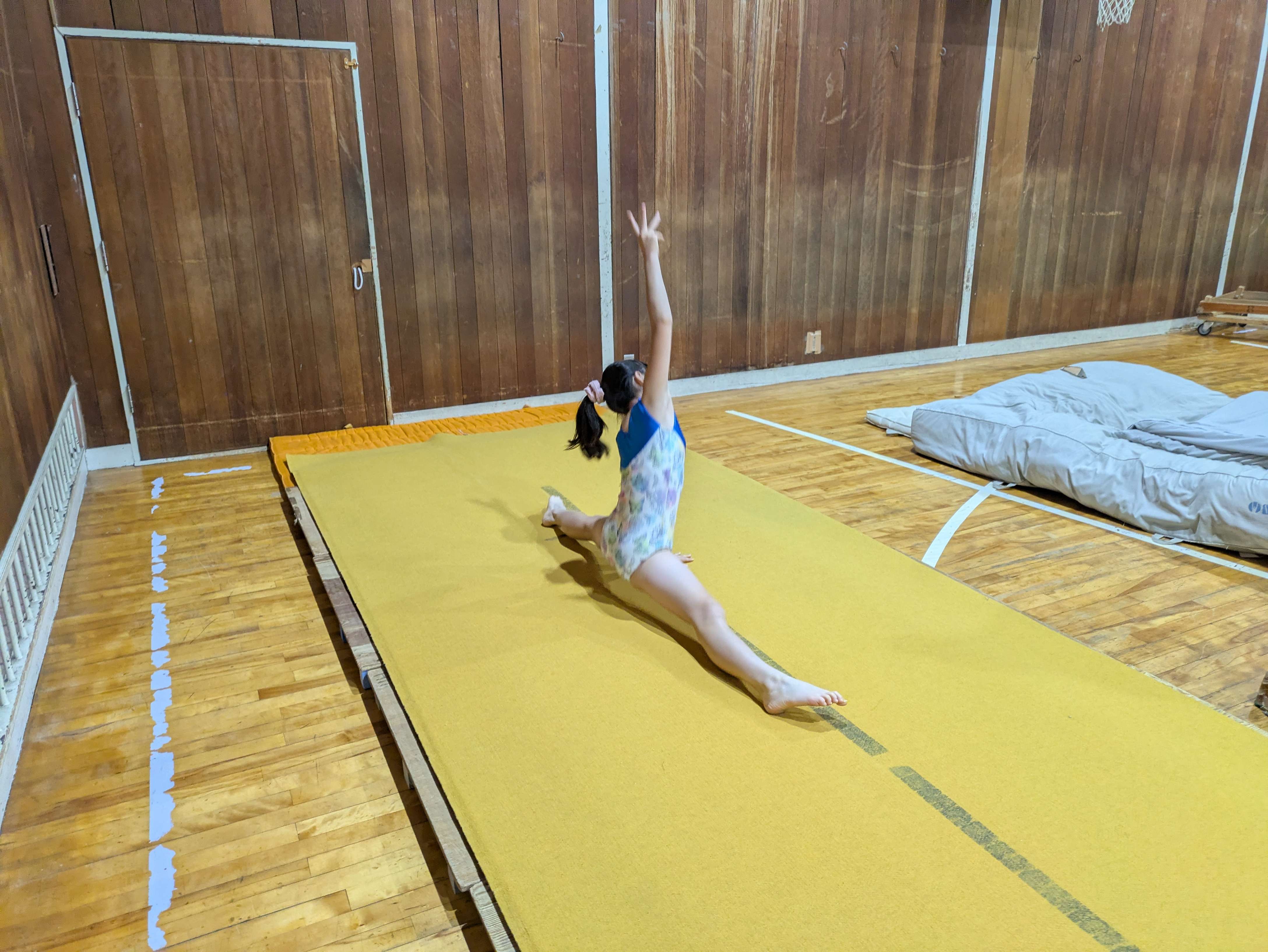 トレーニングでもしている倒立を意識して、側転や転回などの技をするようにしましょう!