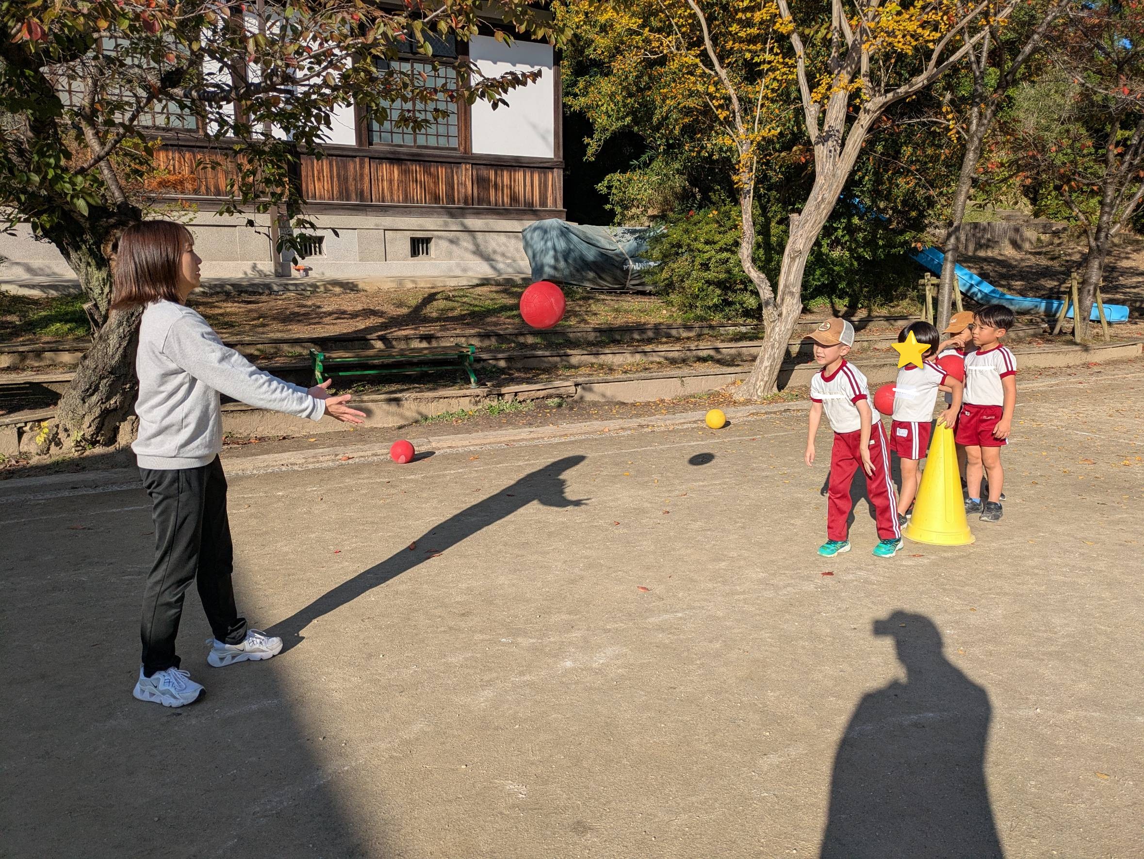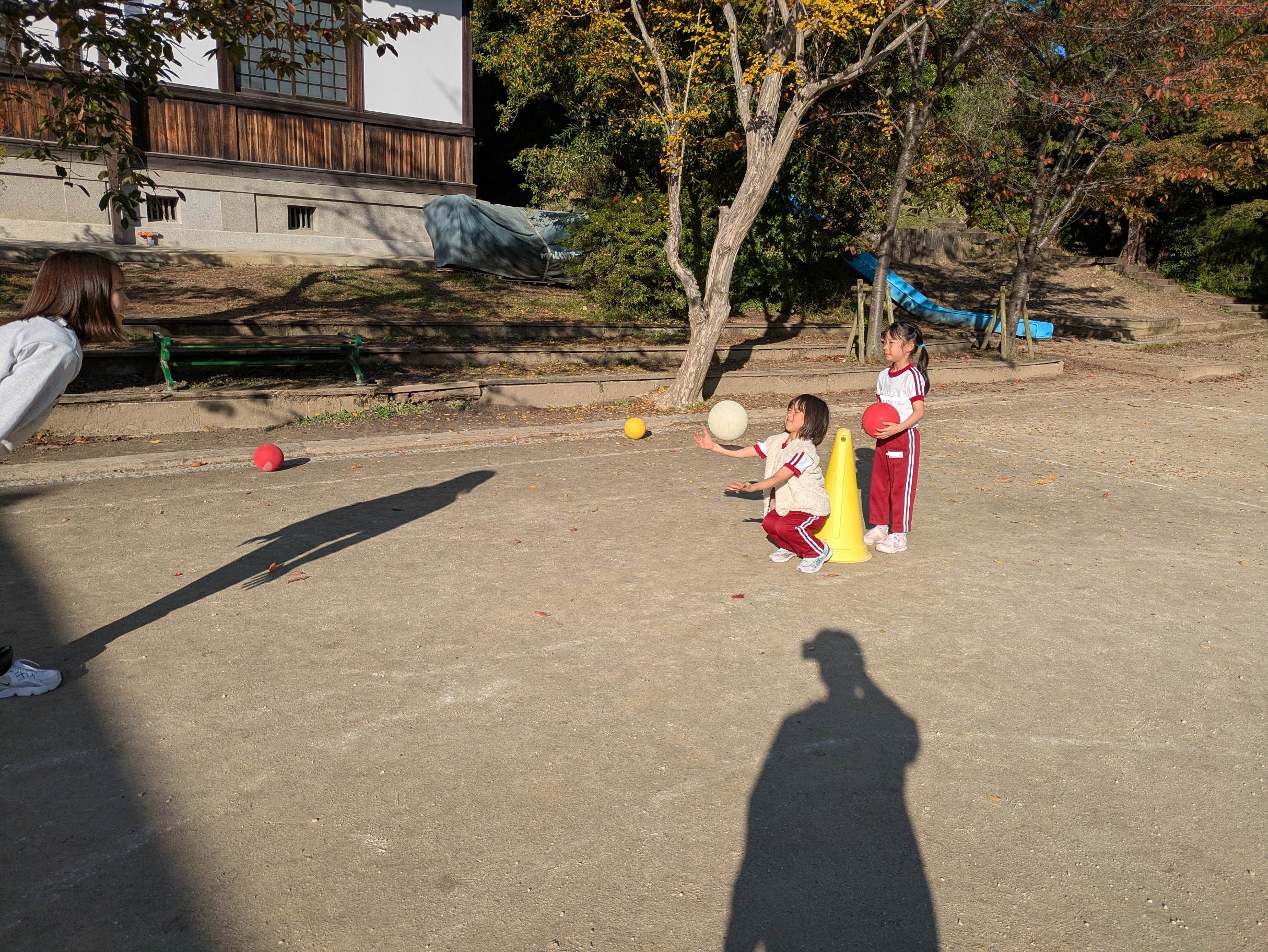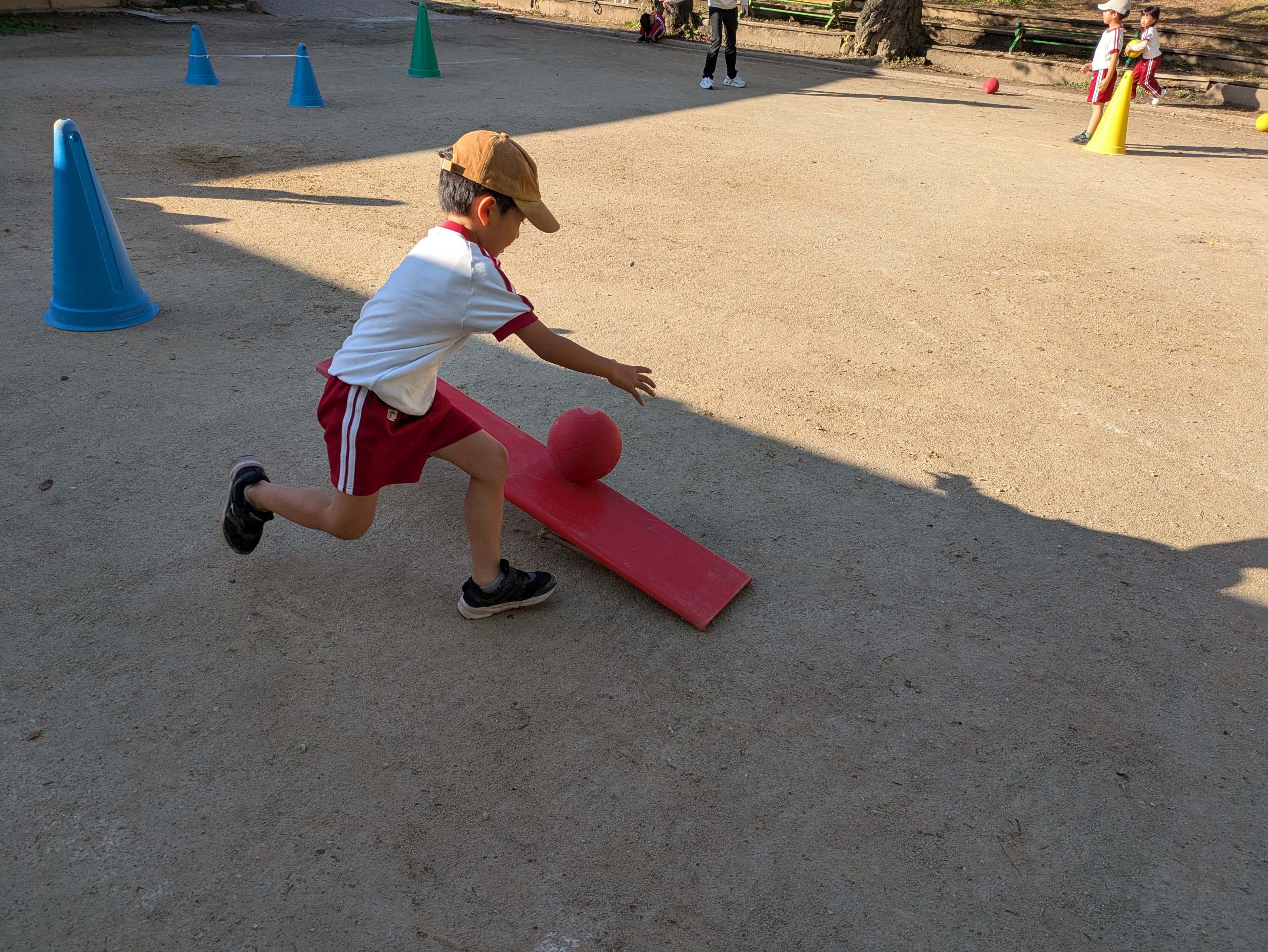 そのあと、リーダーとのボールキャッチや転がしたボールを追いかけて取るなどのサーキットをしました。