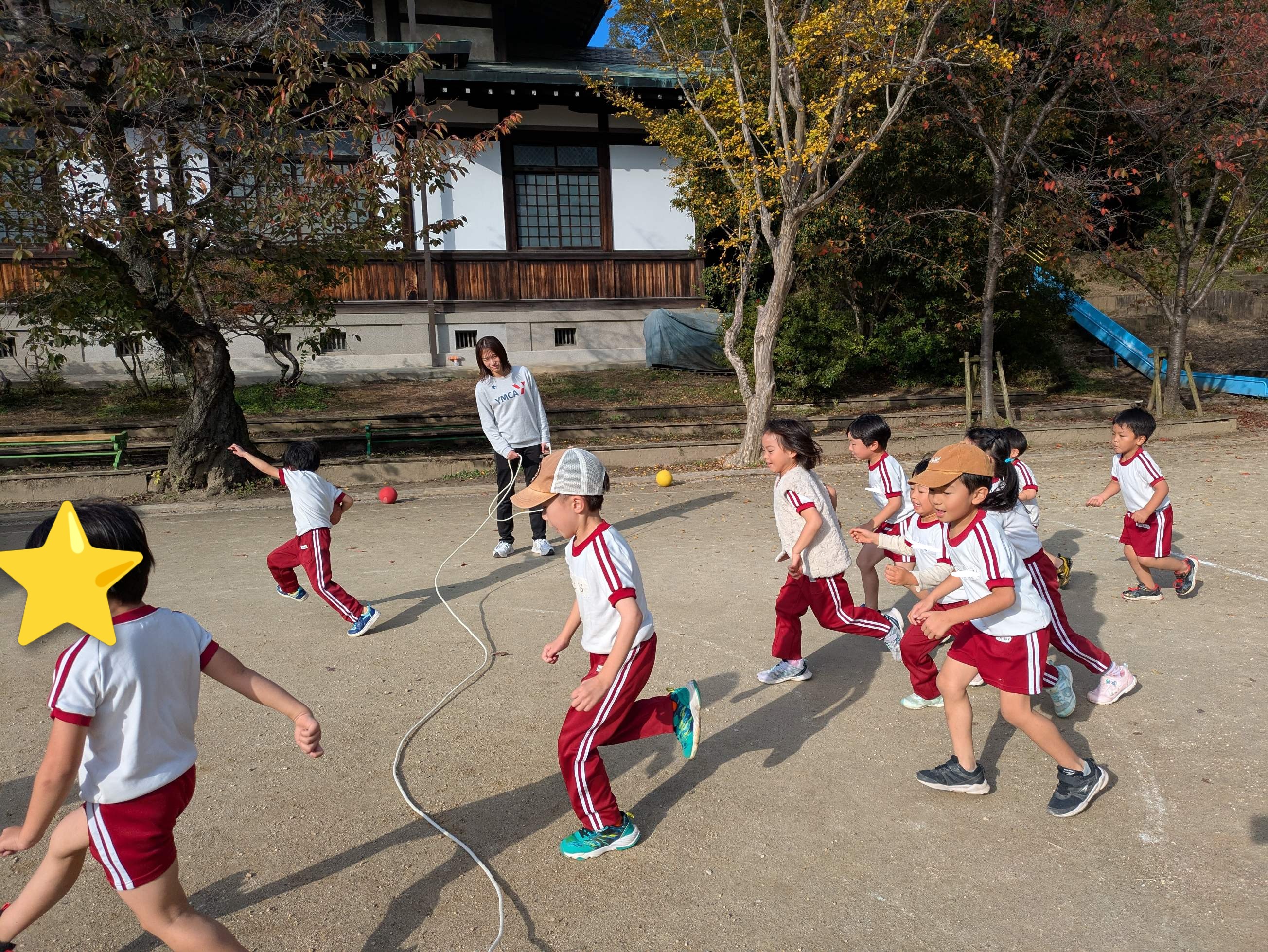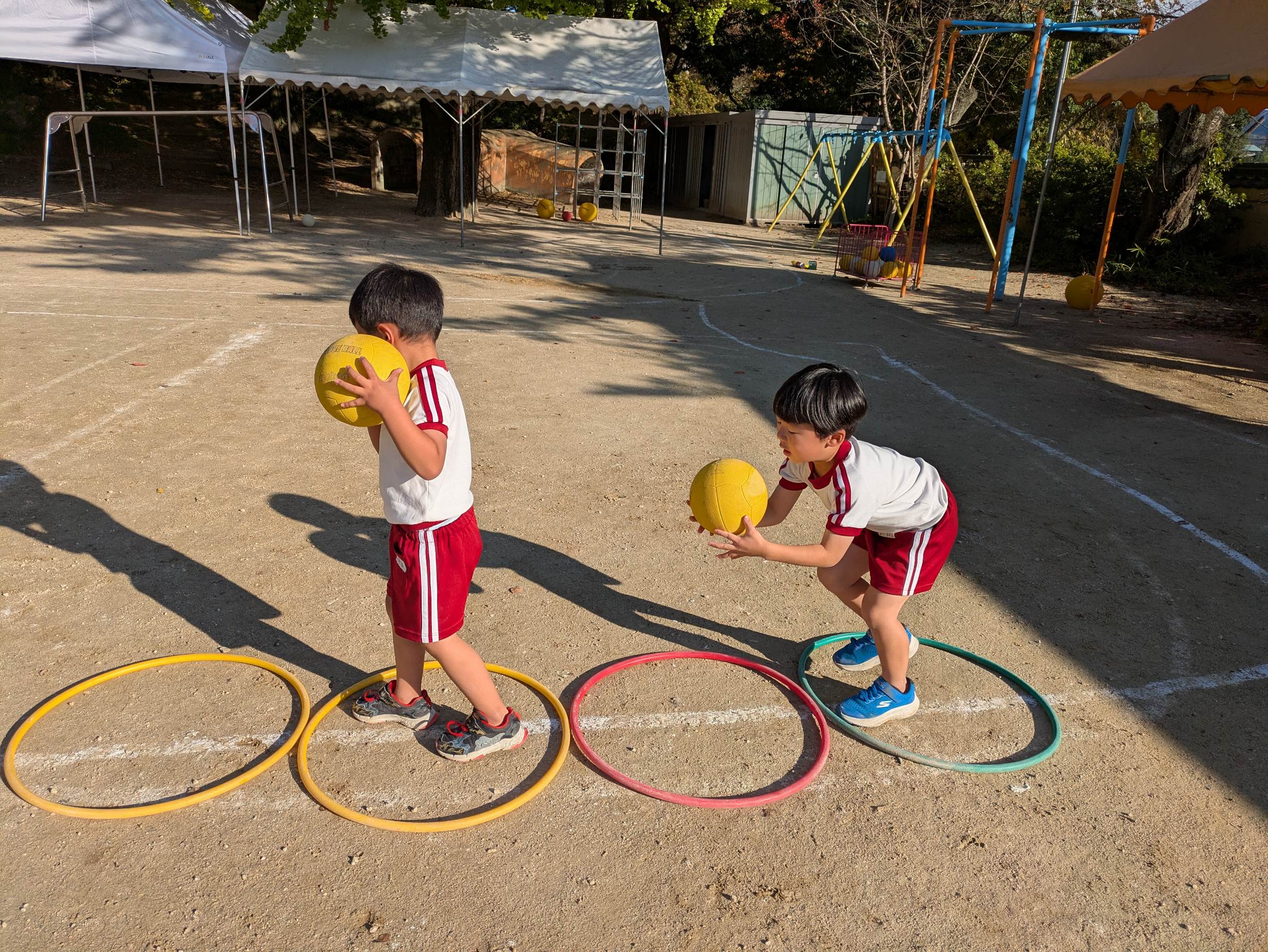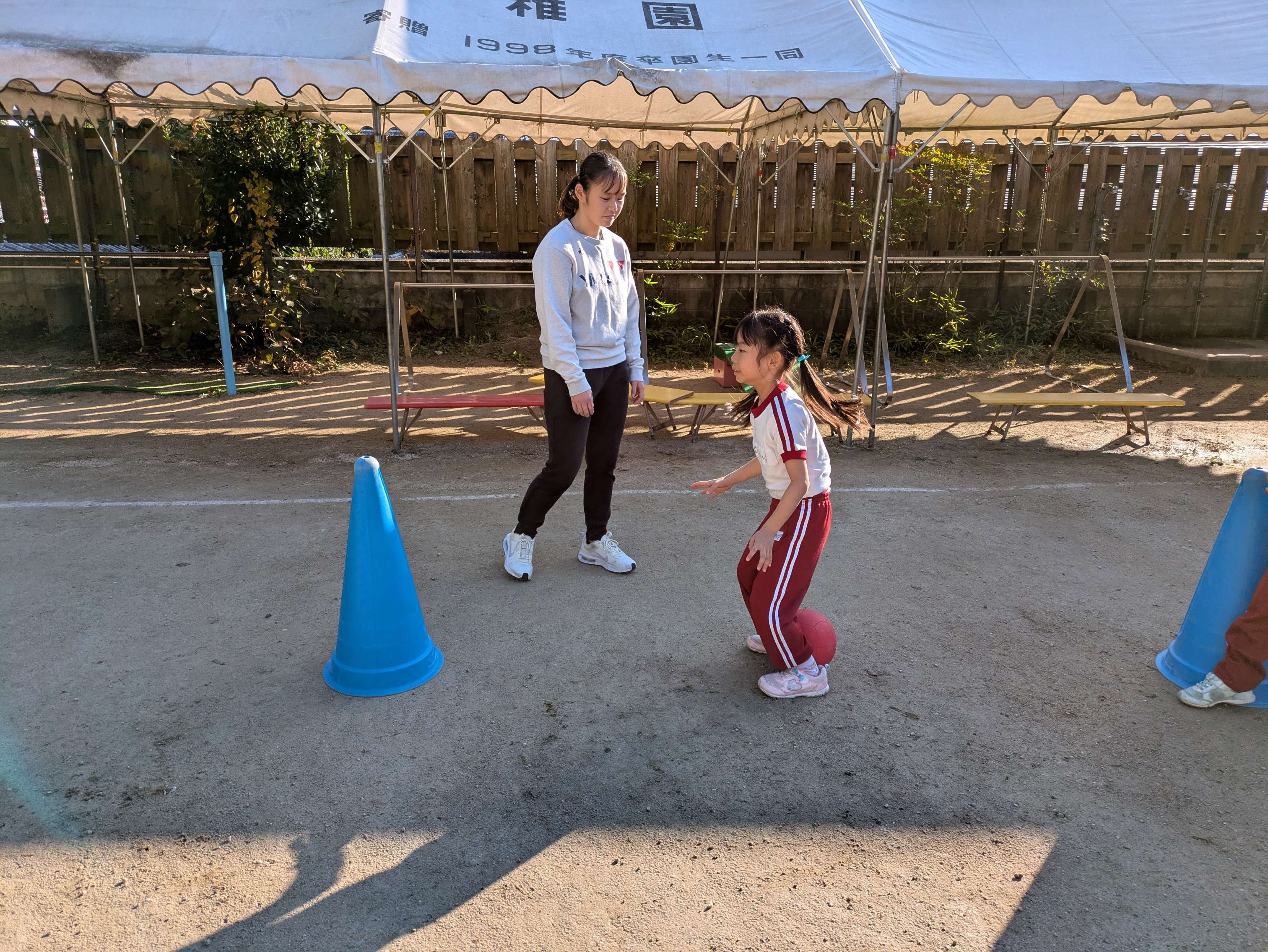 そのあと、リーダーとのボールキャッチや転がしたボールを追いかけて取るなどのサーキットをしました。