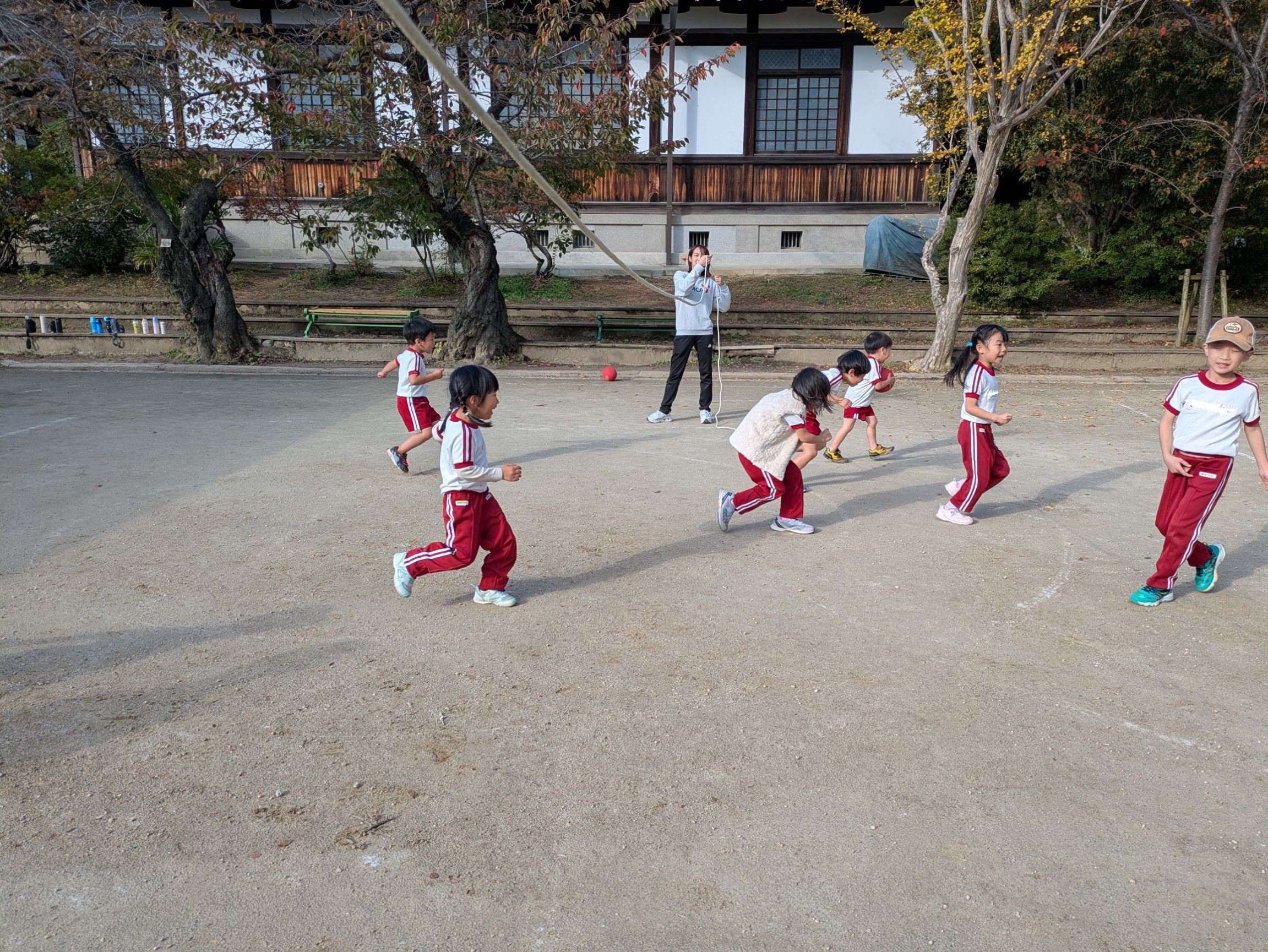 回っている縄のくぐり抜けでは、縄の動きをよくみて、縄を追いかけるように走り抜けることができていましたね!