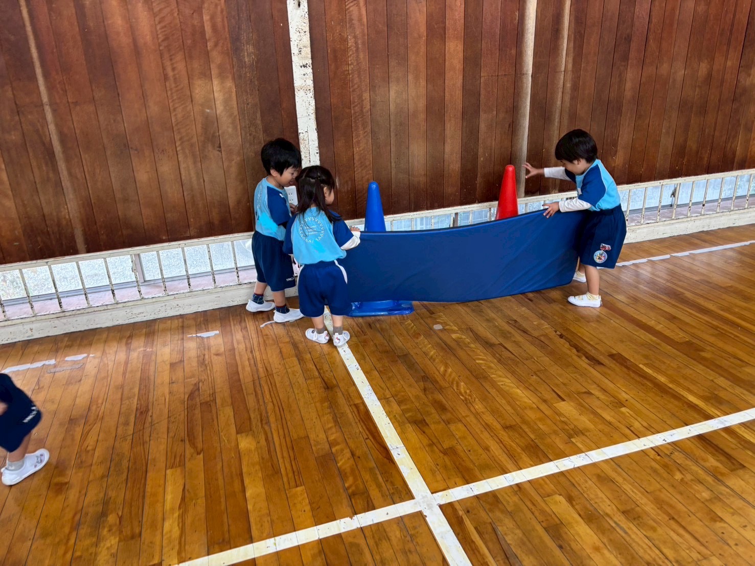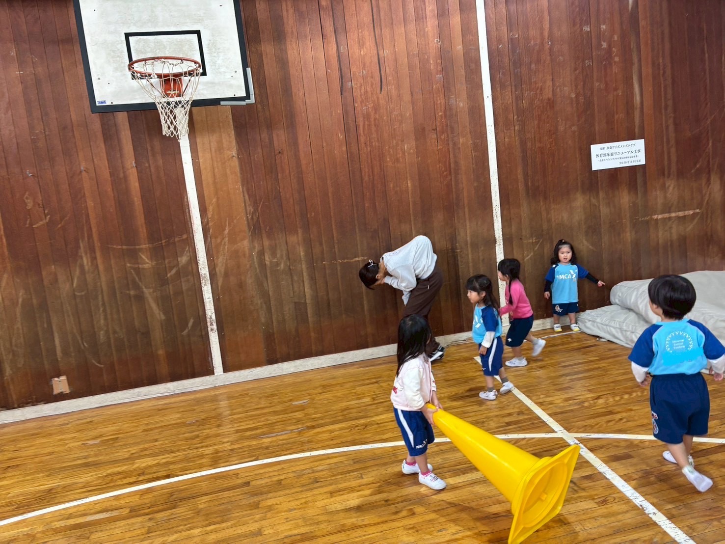 次回金曜日のこぐまクラスはお天気が良ければ近くの公園に行く予定です。朝、上着やトレーナーなど調節のできるものと、外靴をお子さんと一緒に体育館まで持ってきてください。体育館で子どもたちにお話をしてから出発します。