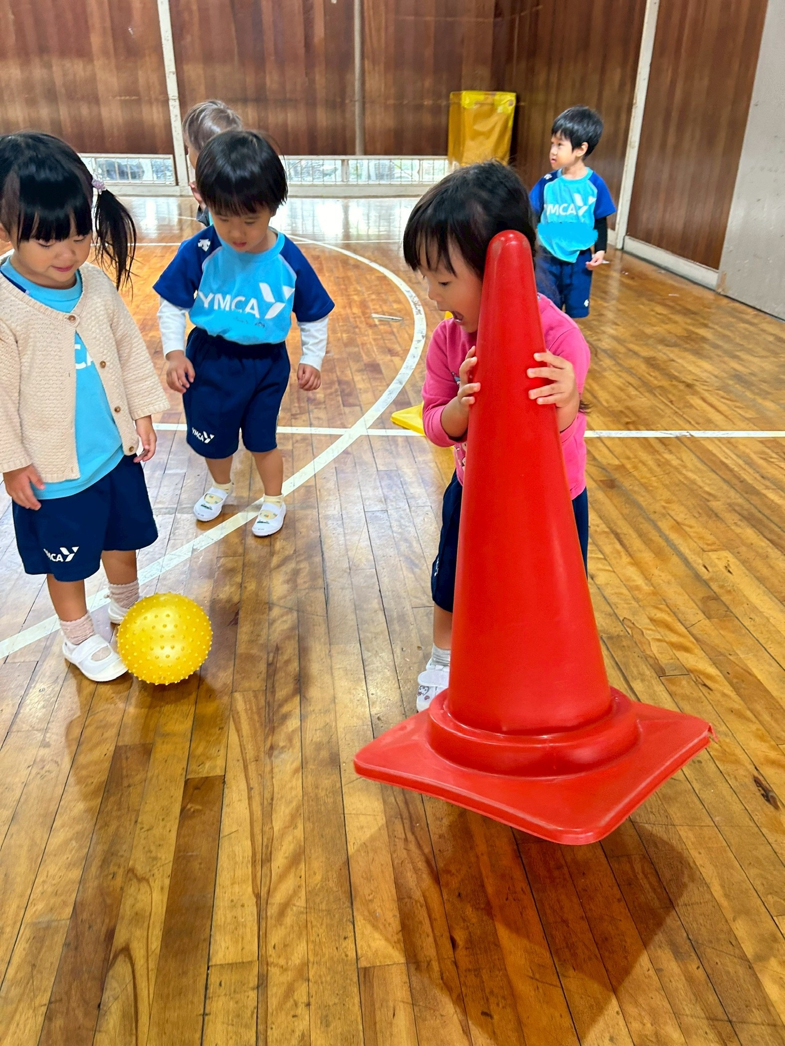 「あった~!」「み~つけた~」と大きな声で発見を知らせてくれます。思ったより意外なところにあったのか、リーダーの背中のボールはなかなか見つからなかったね( *´艸`)