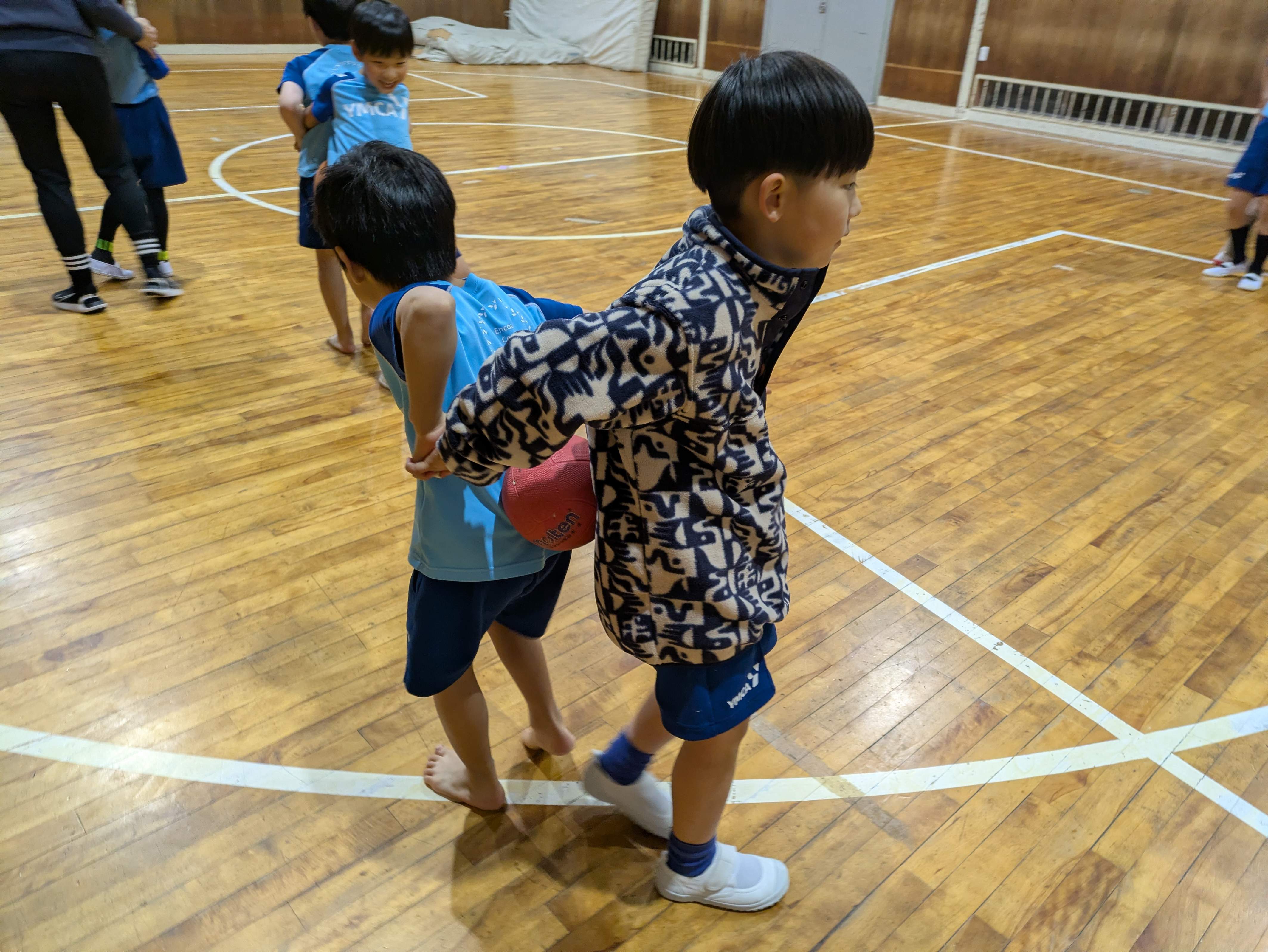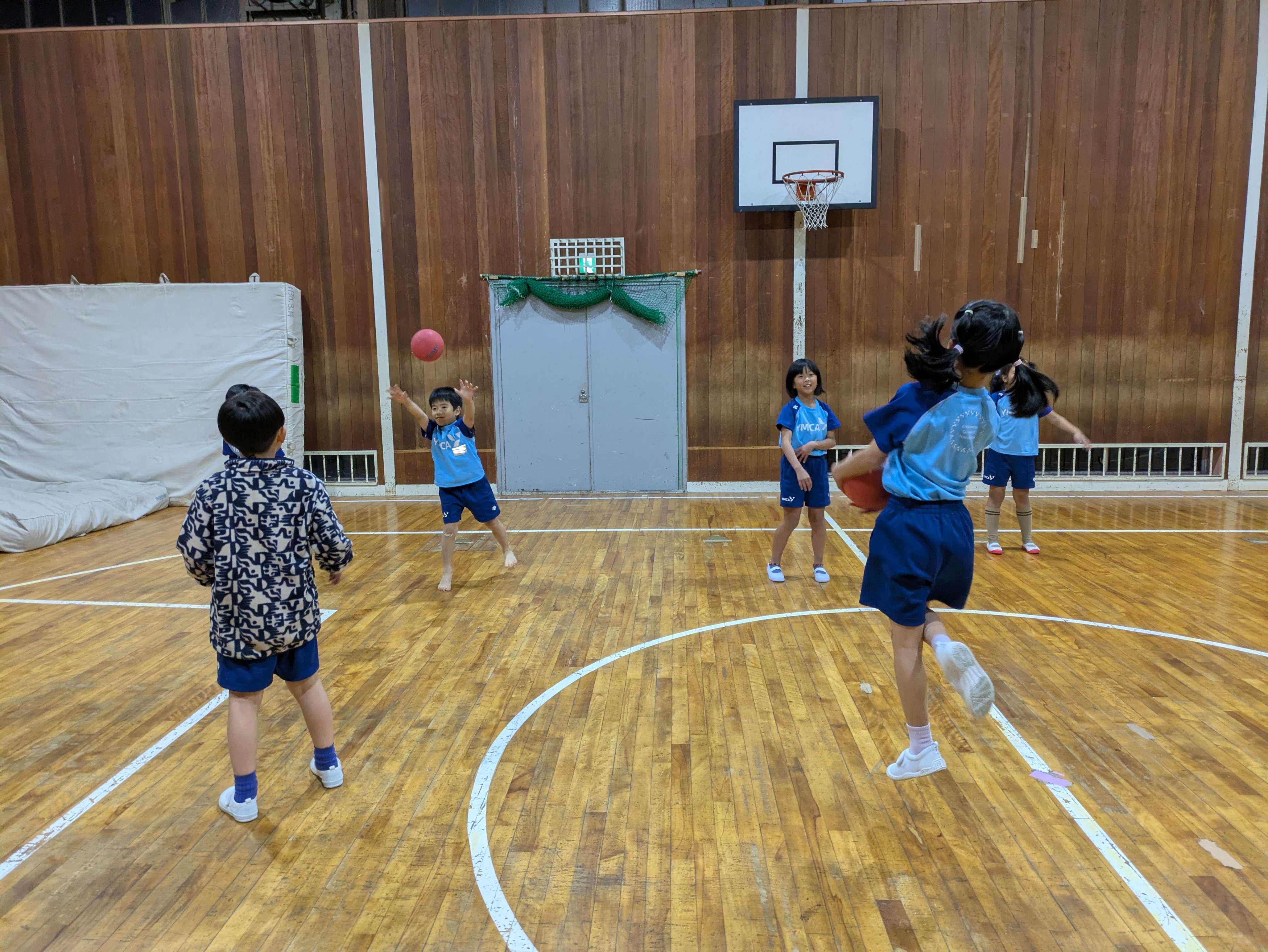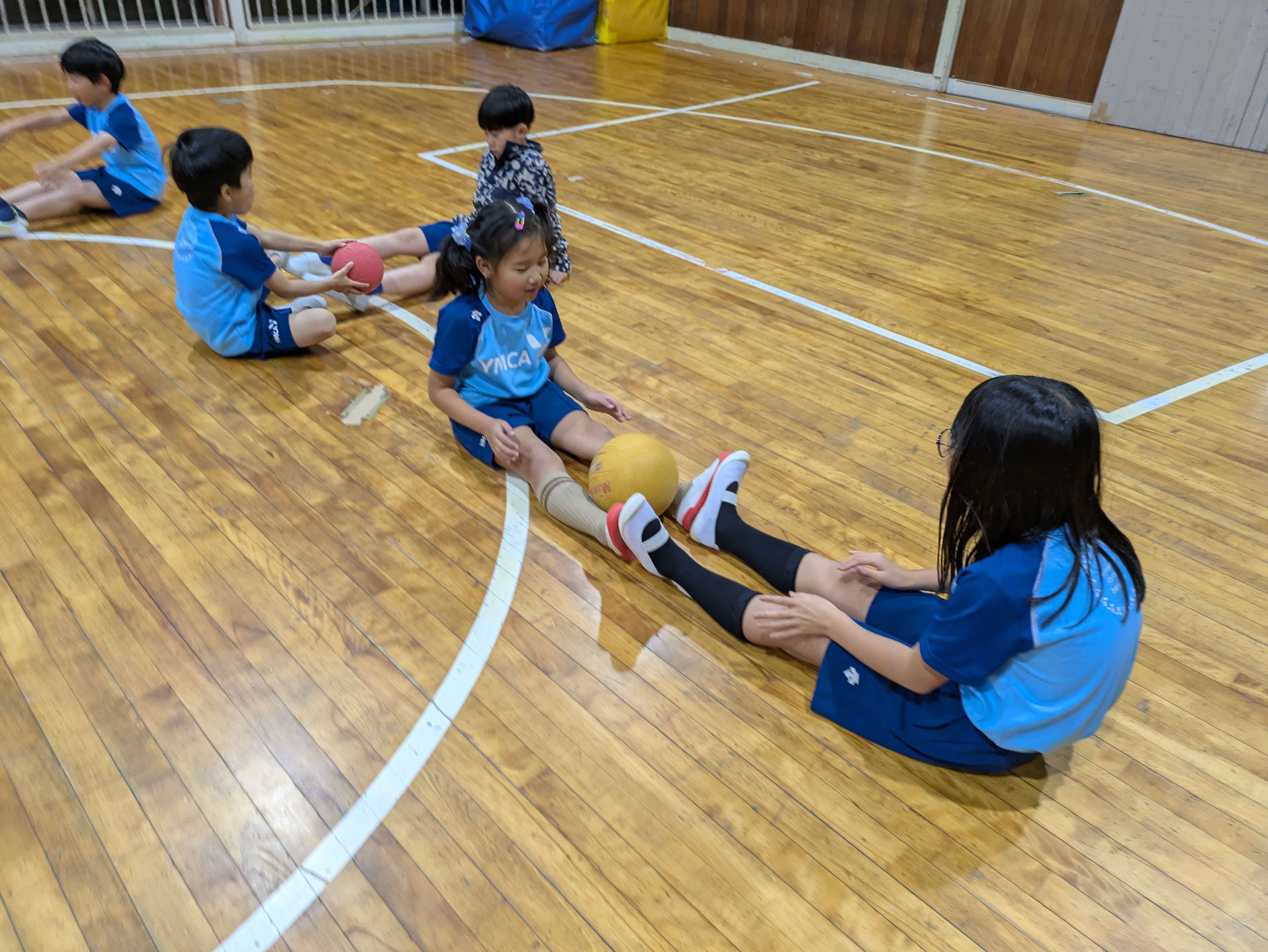 横や上などからボールの渡し合いや、キャッチボールなどをしました!特にボール運びやキャッチボールでは、お友だちのことを思って、投げる力を考えたり取りやすいところに投げたりなど協力して行うことができていましたね!