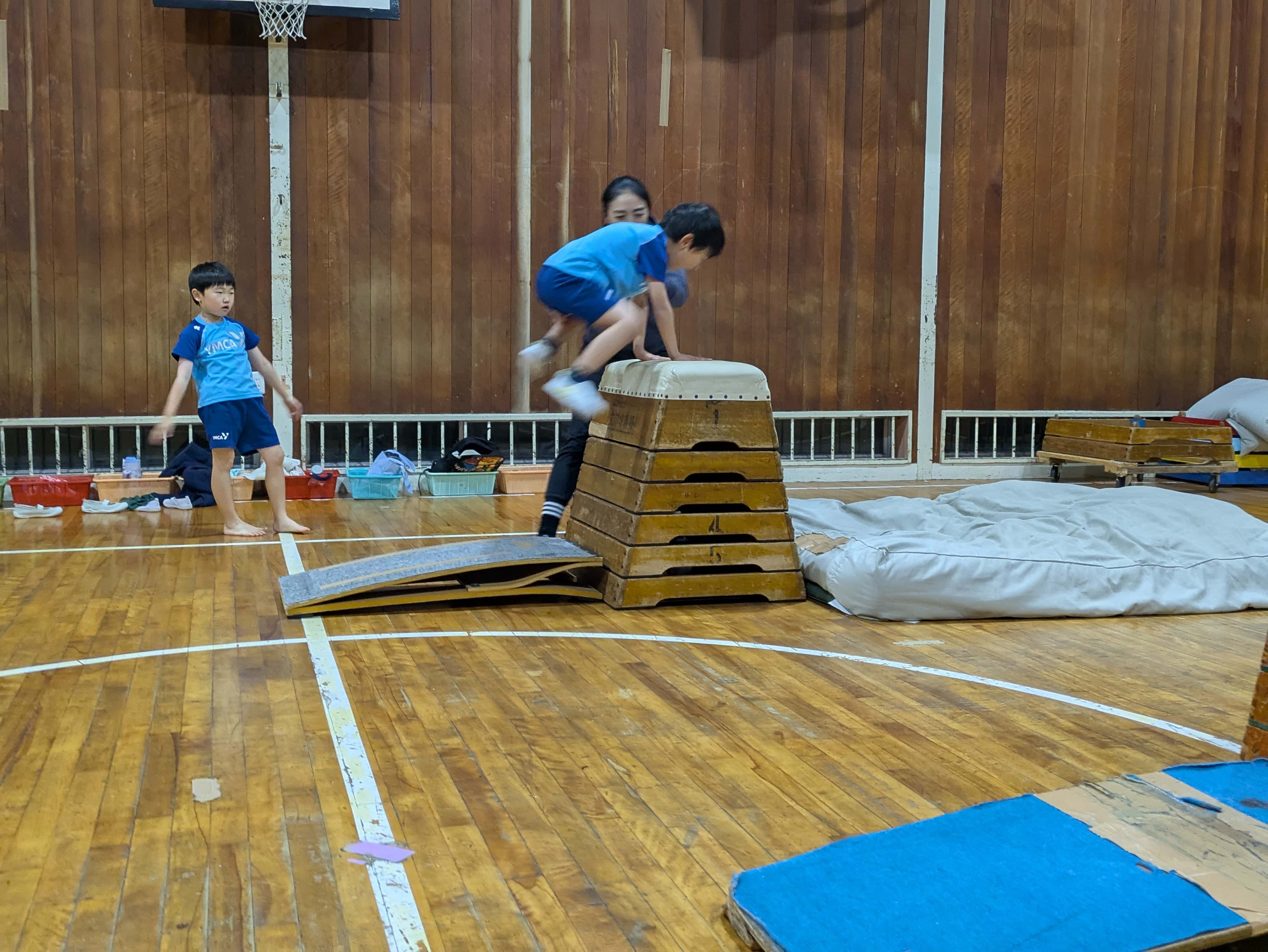 跳び箱では、助走の力をロイター板のジャンプに活かすことができてきましたね!怖がらずに頑張りましょう!