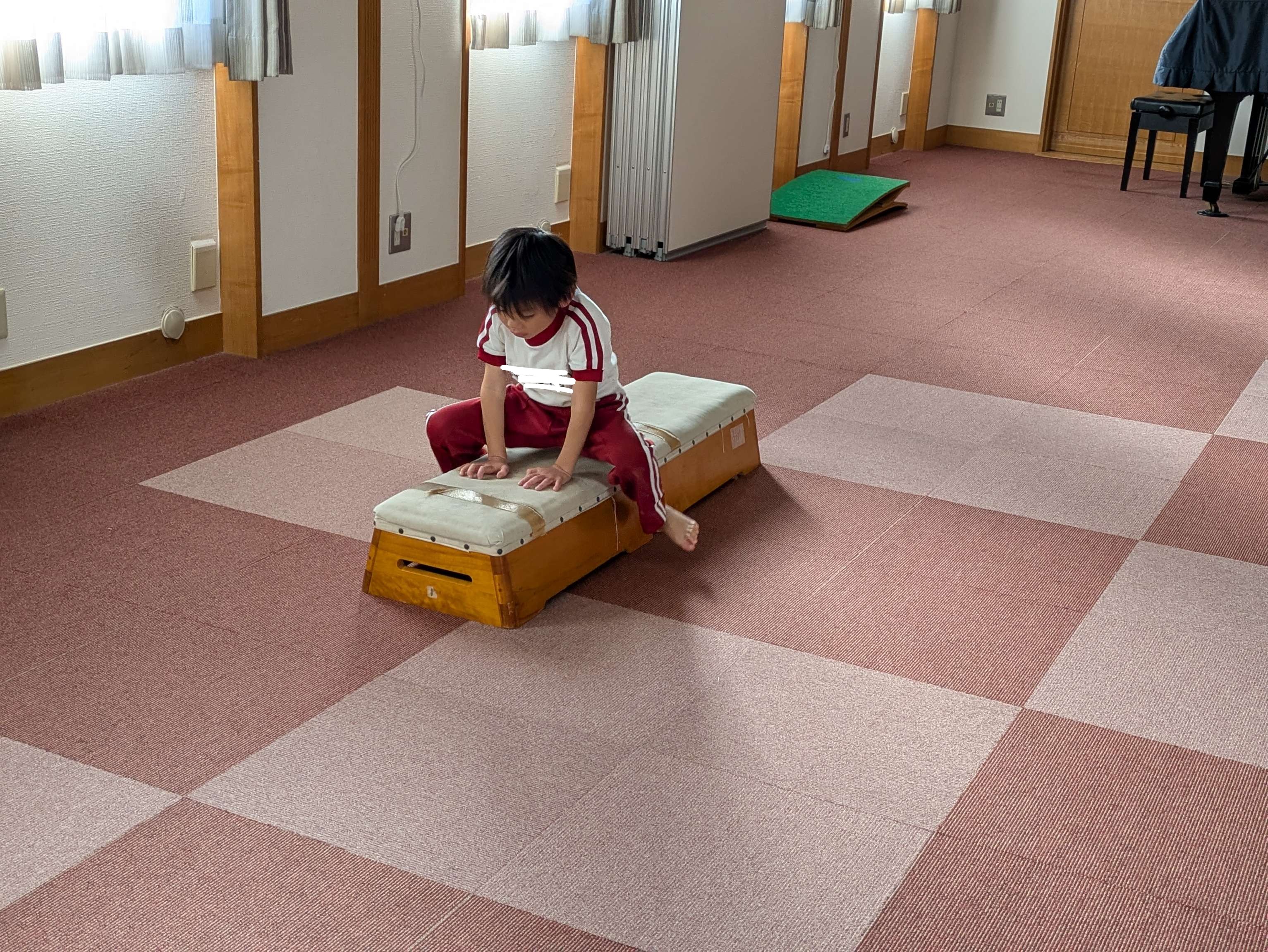 そのあと、ホールに入って跳び箱サーキットと跳び箱をしました。