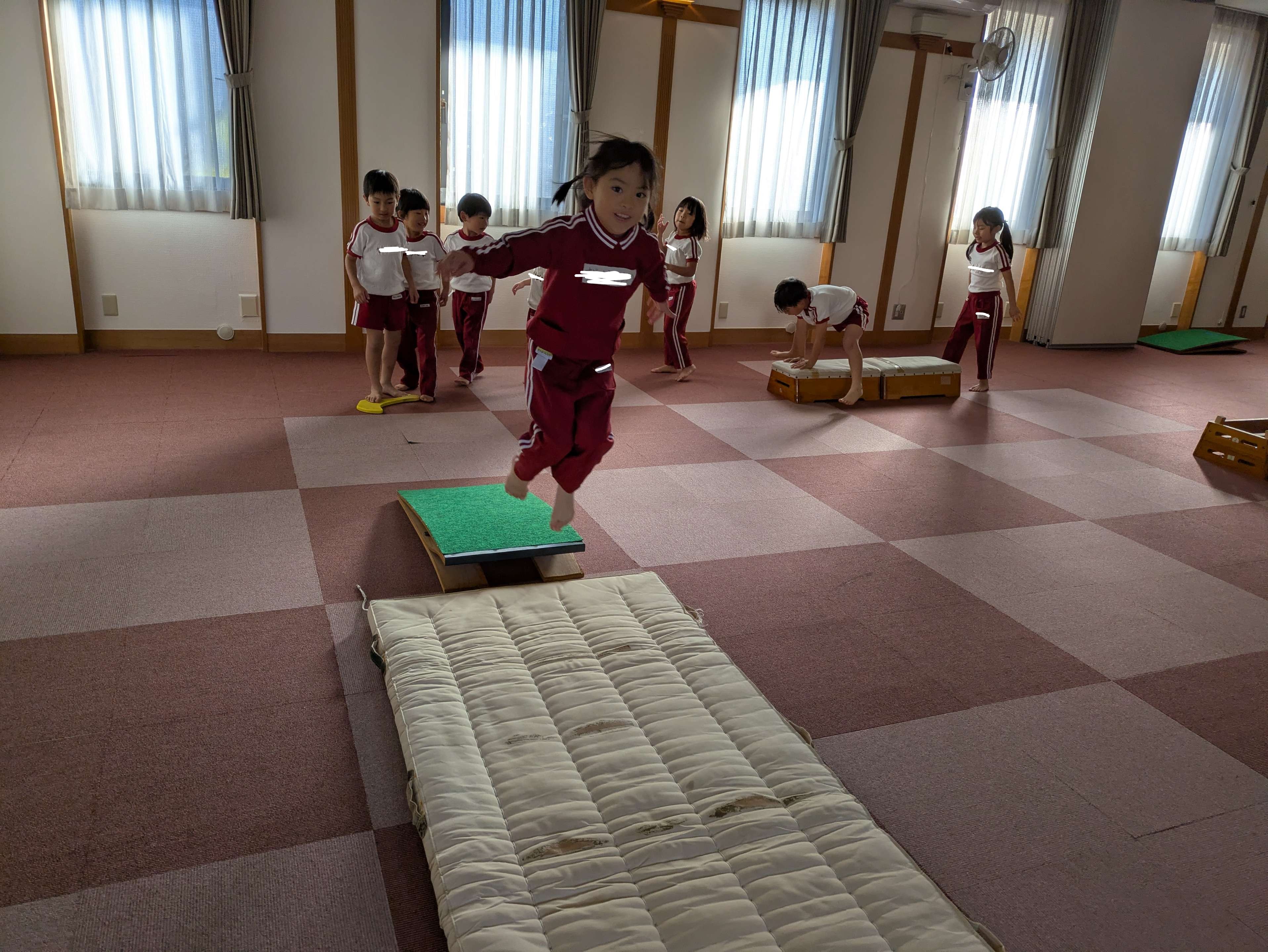 サーキットでは、ロイター板でのジャンプの仕方を確認したり、手を使って体を前に運ぶ練習をしました!