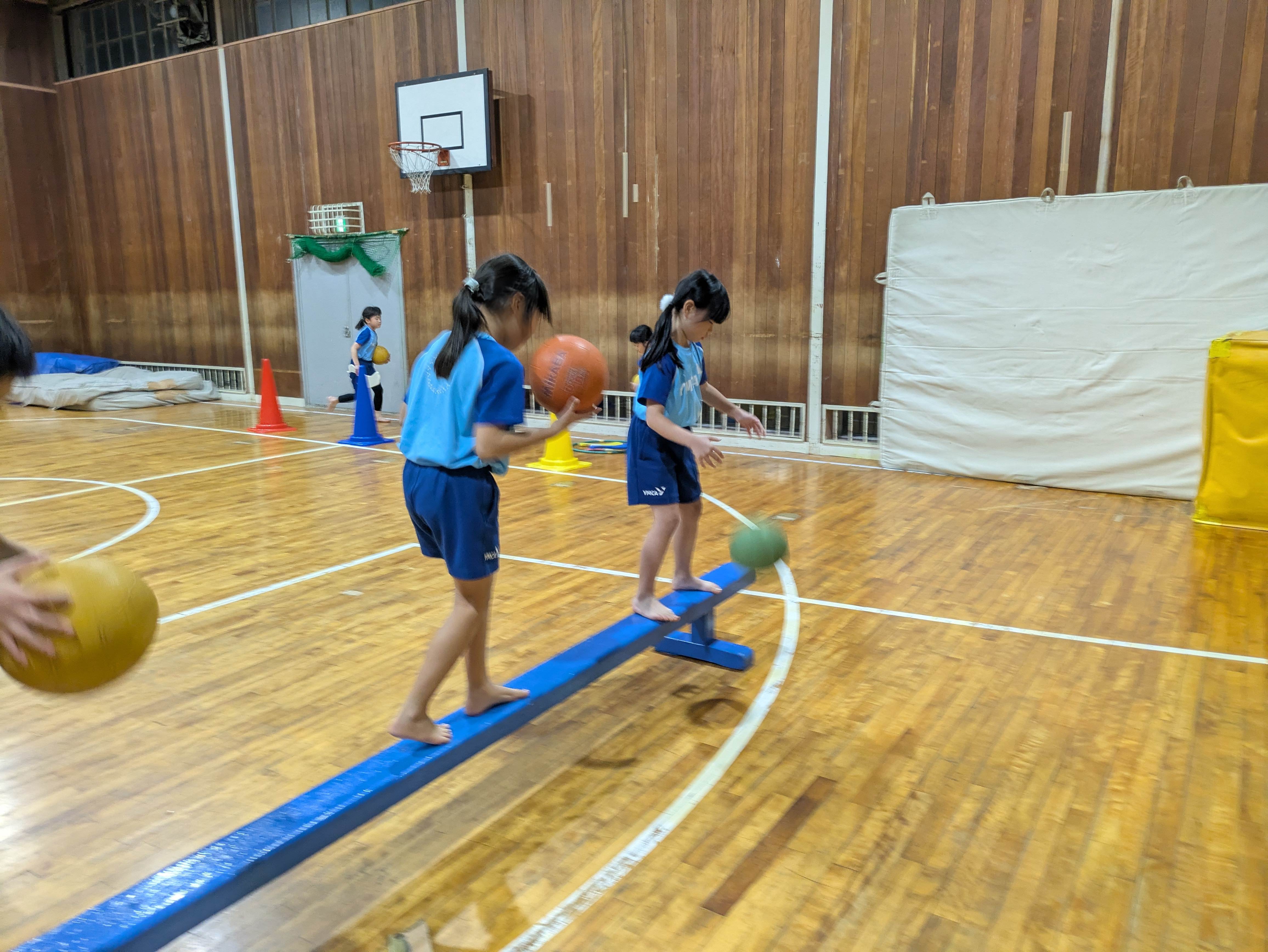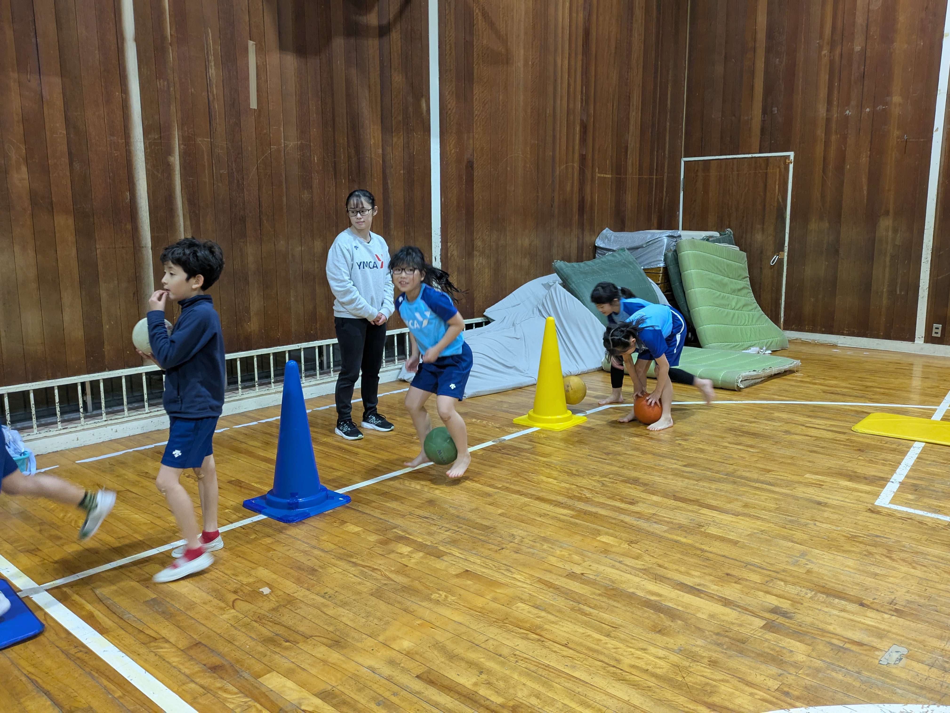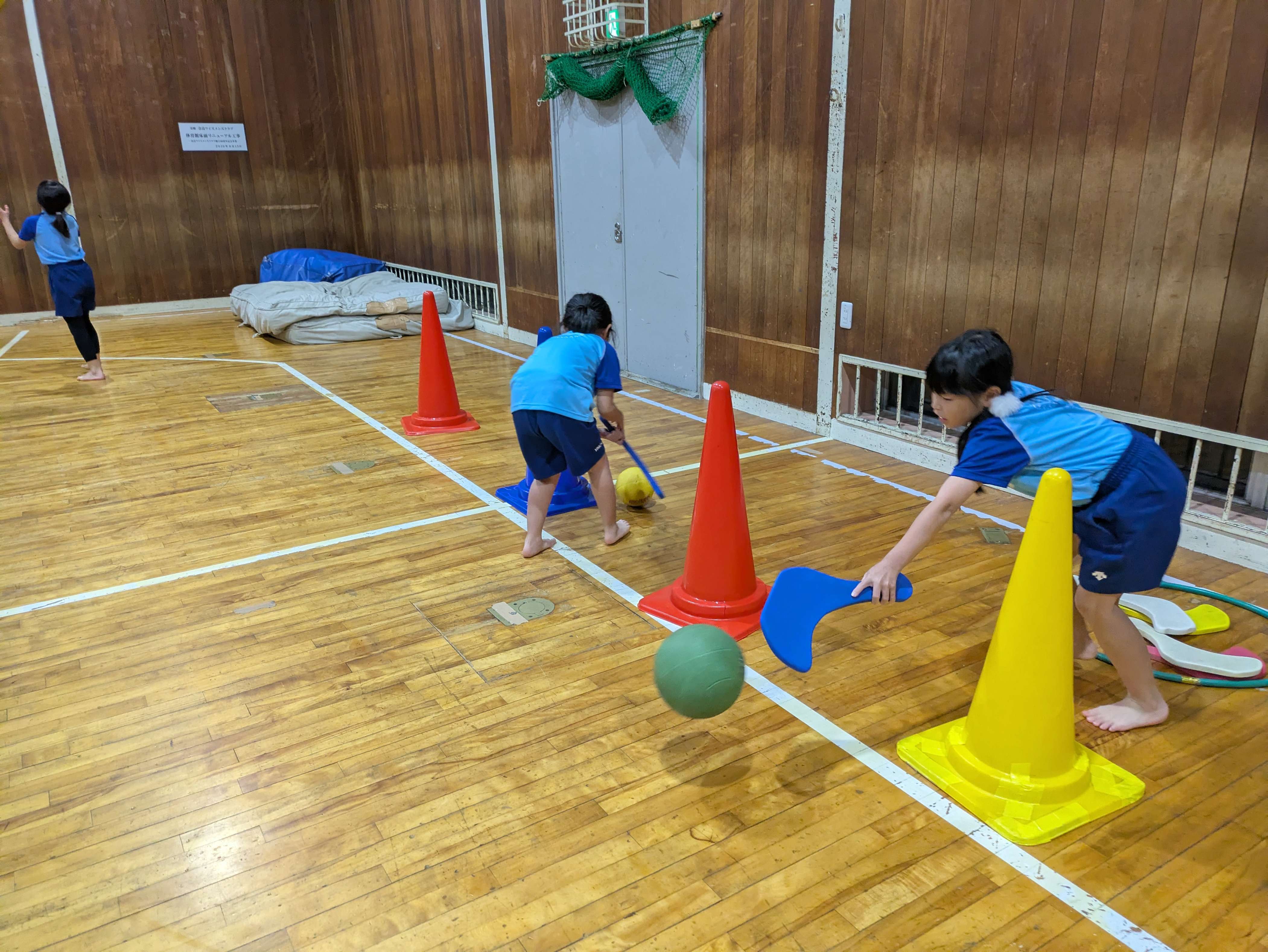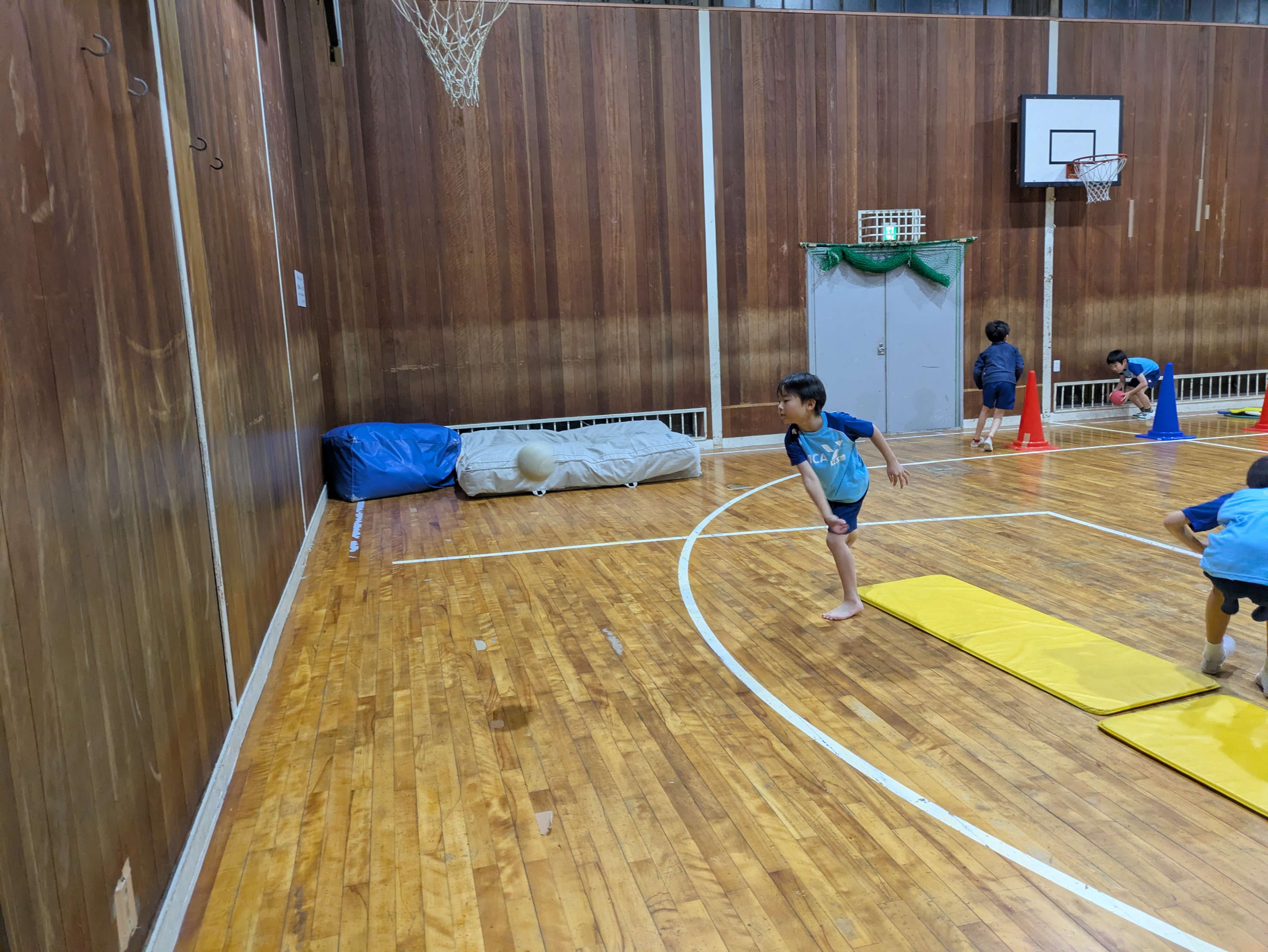 リーダーとキャッチボールや、足にボールを挟んでジャンプなどをしました!壁あてでは、うまく力加減を考えて行うことができていましたね!
