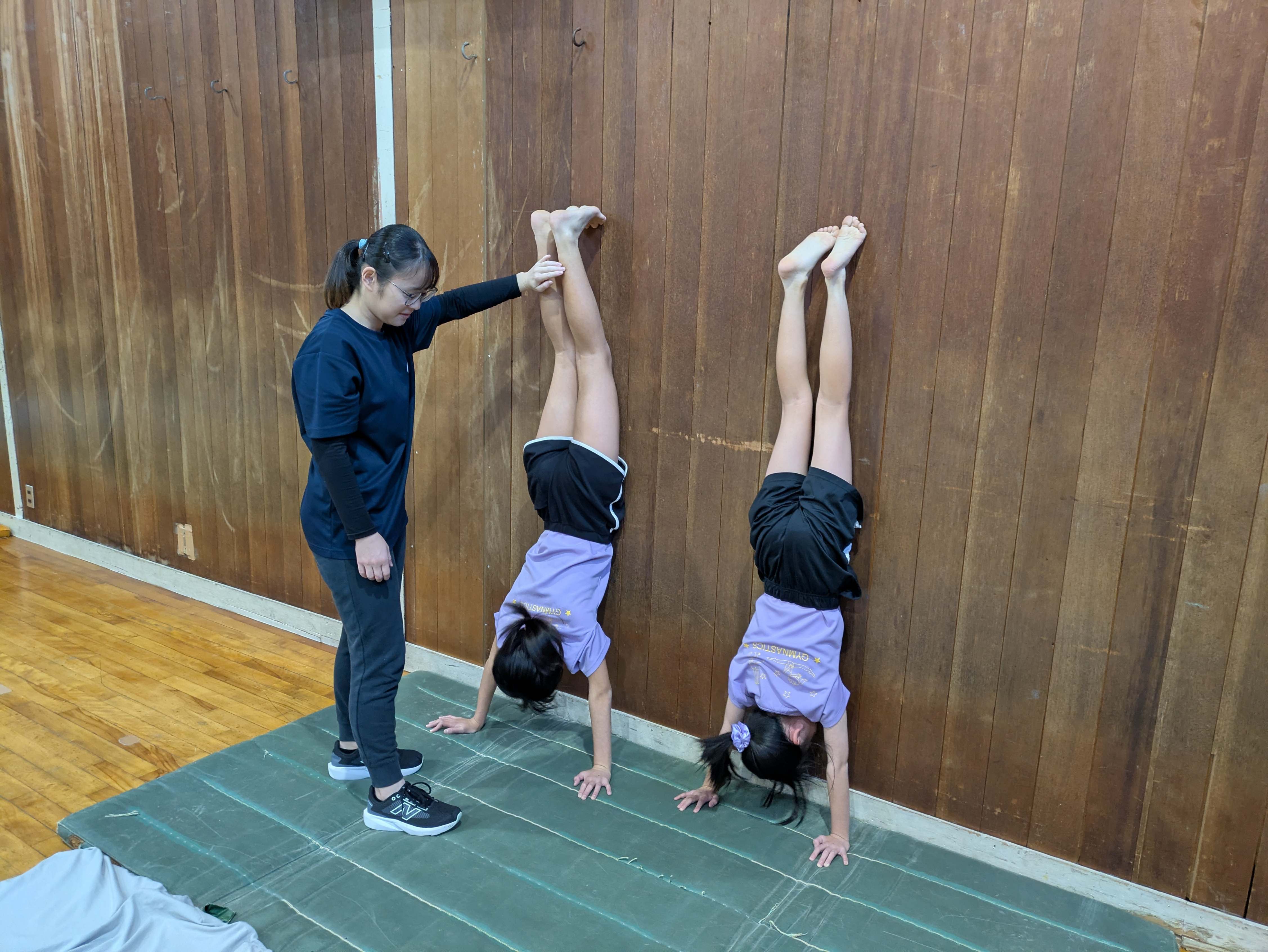 トレーニングでは、着地まで意識してロイタージャンプをしたりなわとびをしたりしました。壁倒立はしんどいですが、いい姿勢でできるよう頑張りましょう!