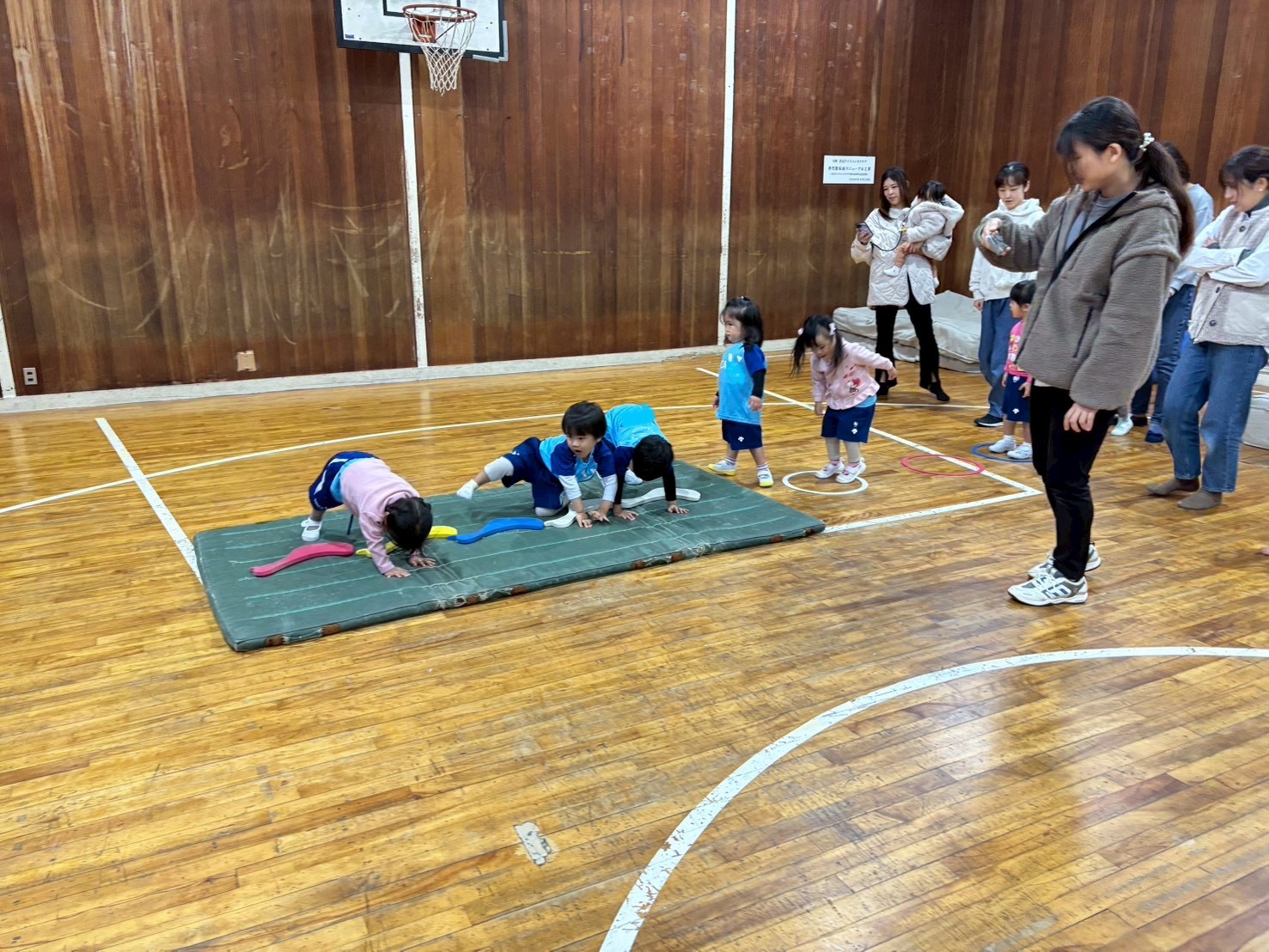 今日は親子体操を実施しました。いつもと違う雰囲気にちょっとドキドキ(#^.^#)でもきょうもがんばったね~!