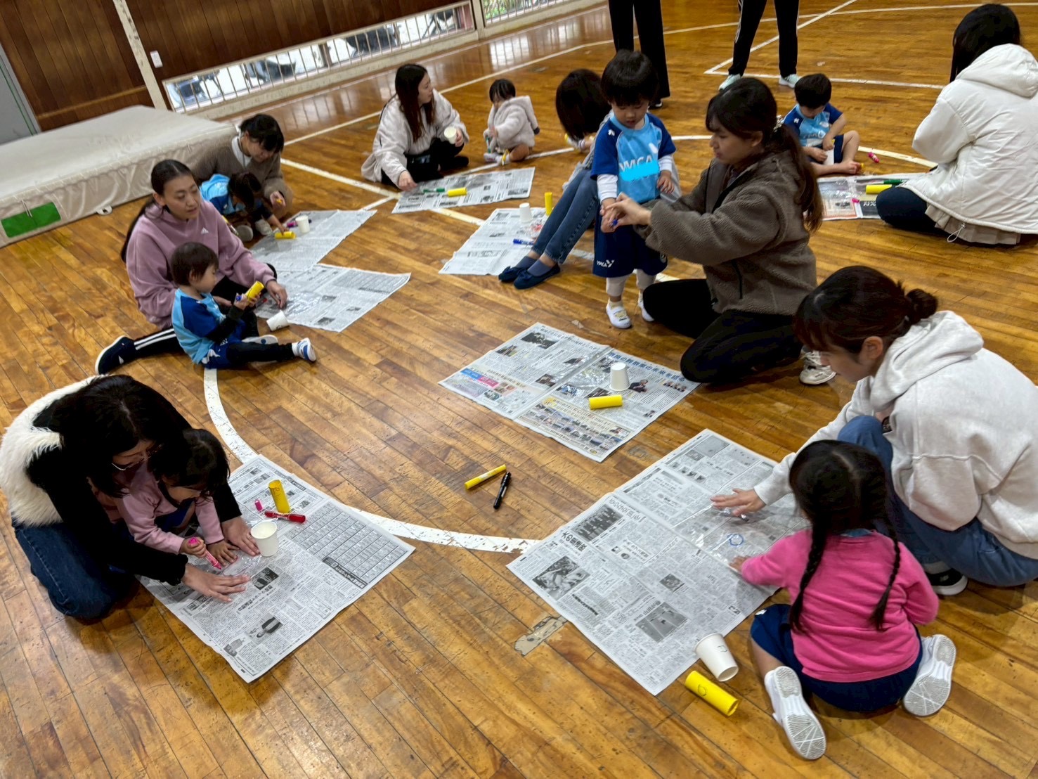 そして、今日は体育館でロケットを製作をしました。それぞれ、紙コップや袋に絵を描きました。みんなすごい集中してましたね!