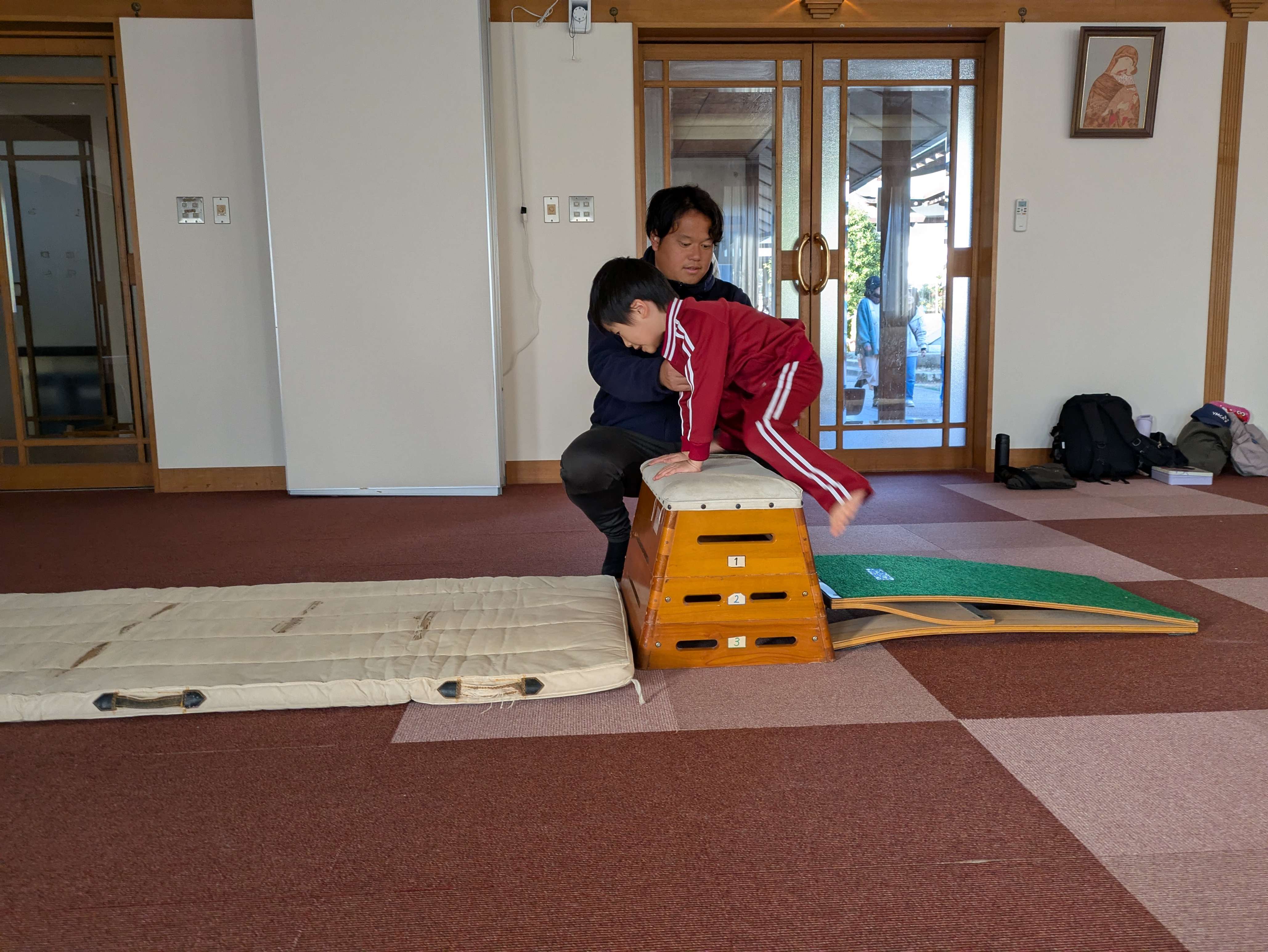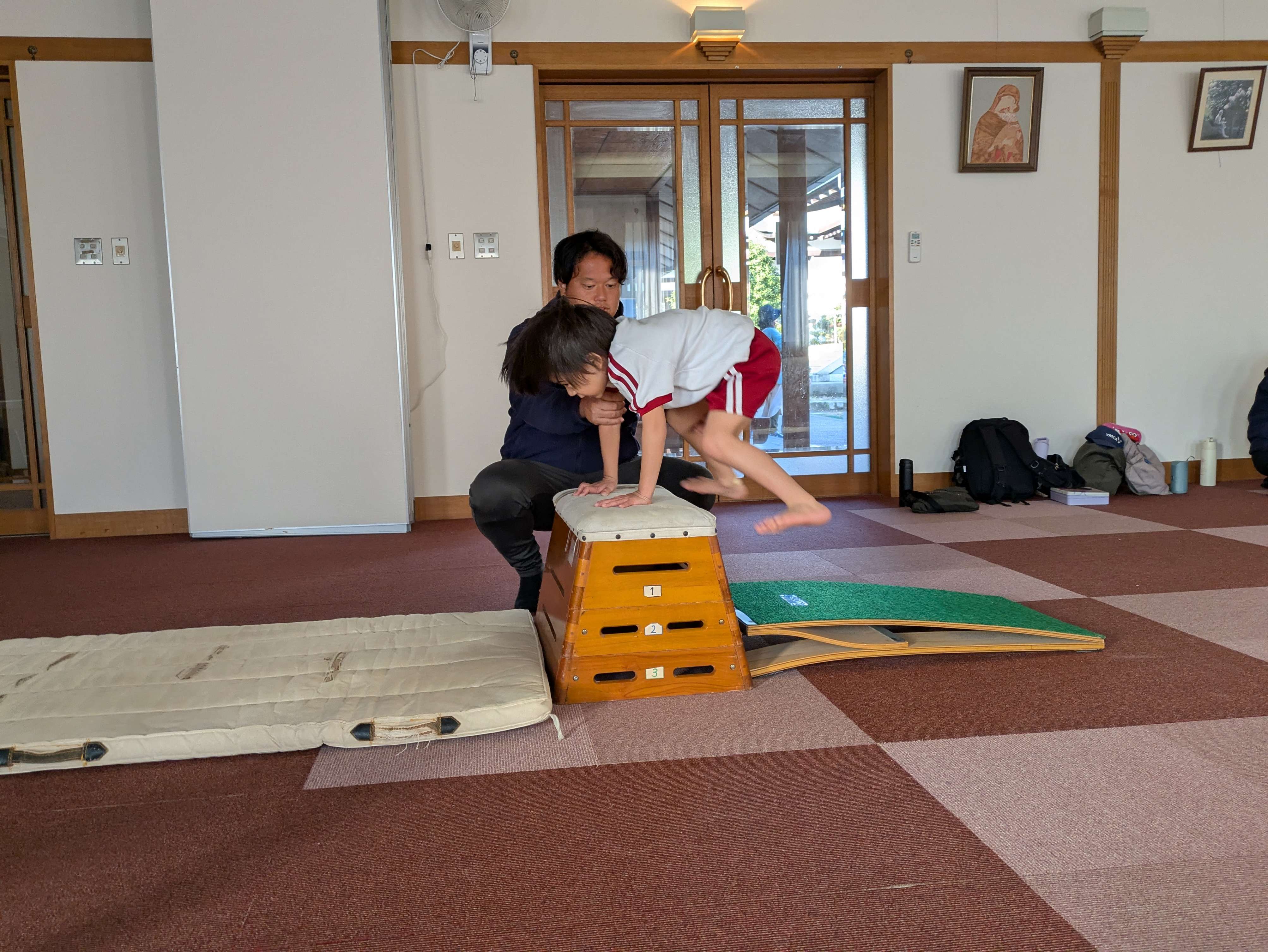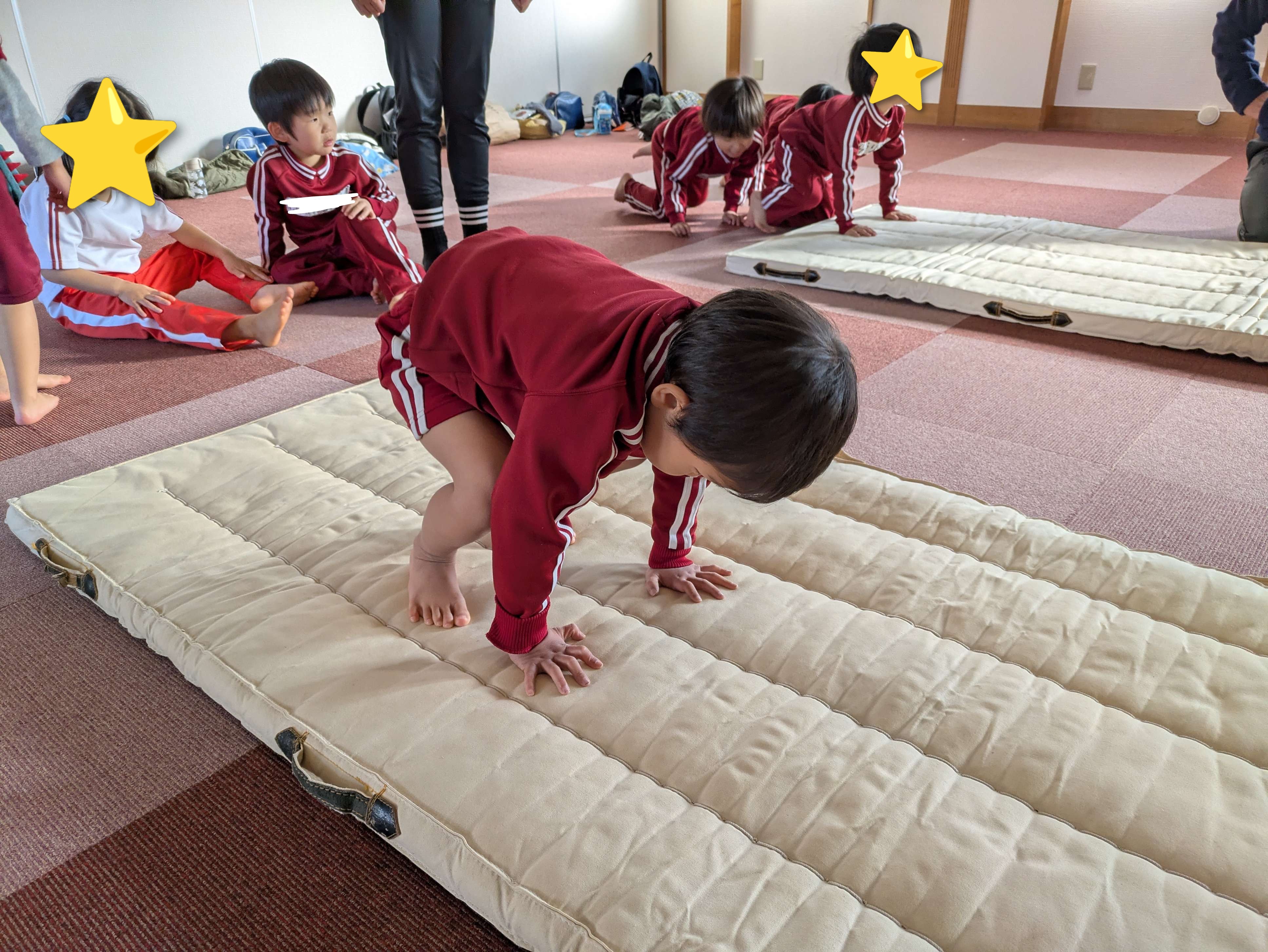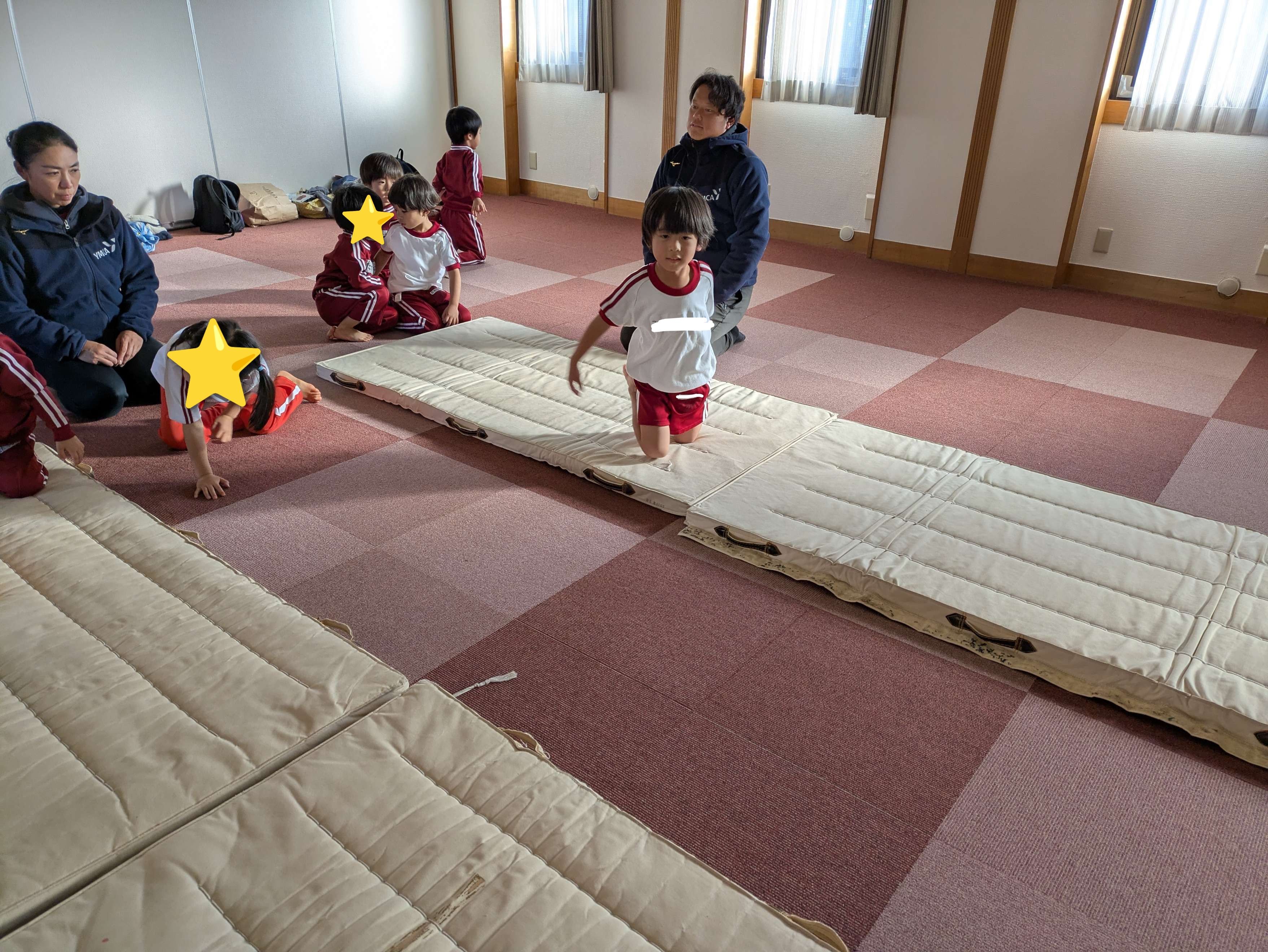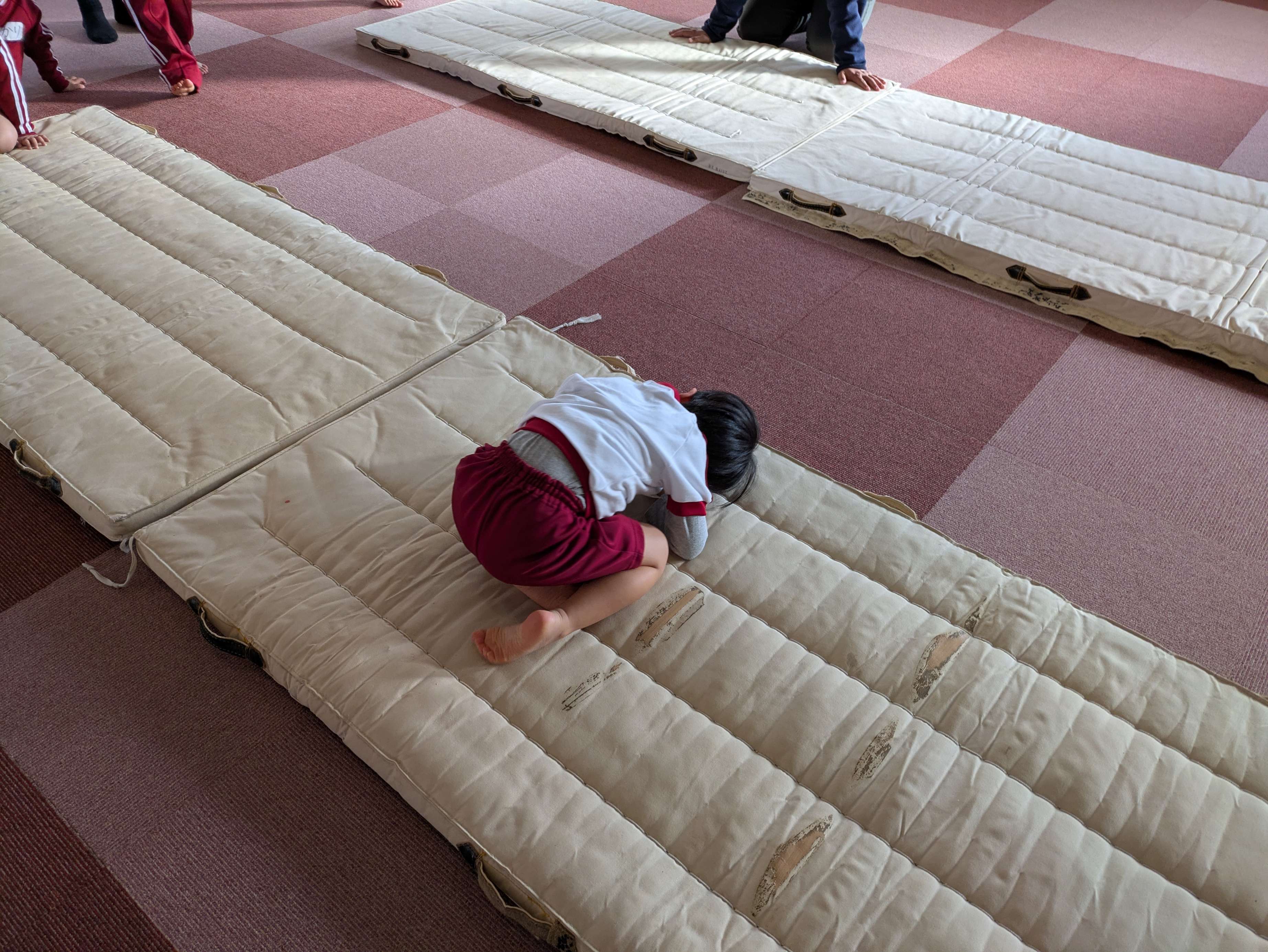 そのあと、ホールに入ってマットと跳び箱をしました。