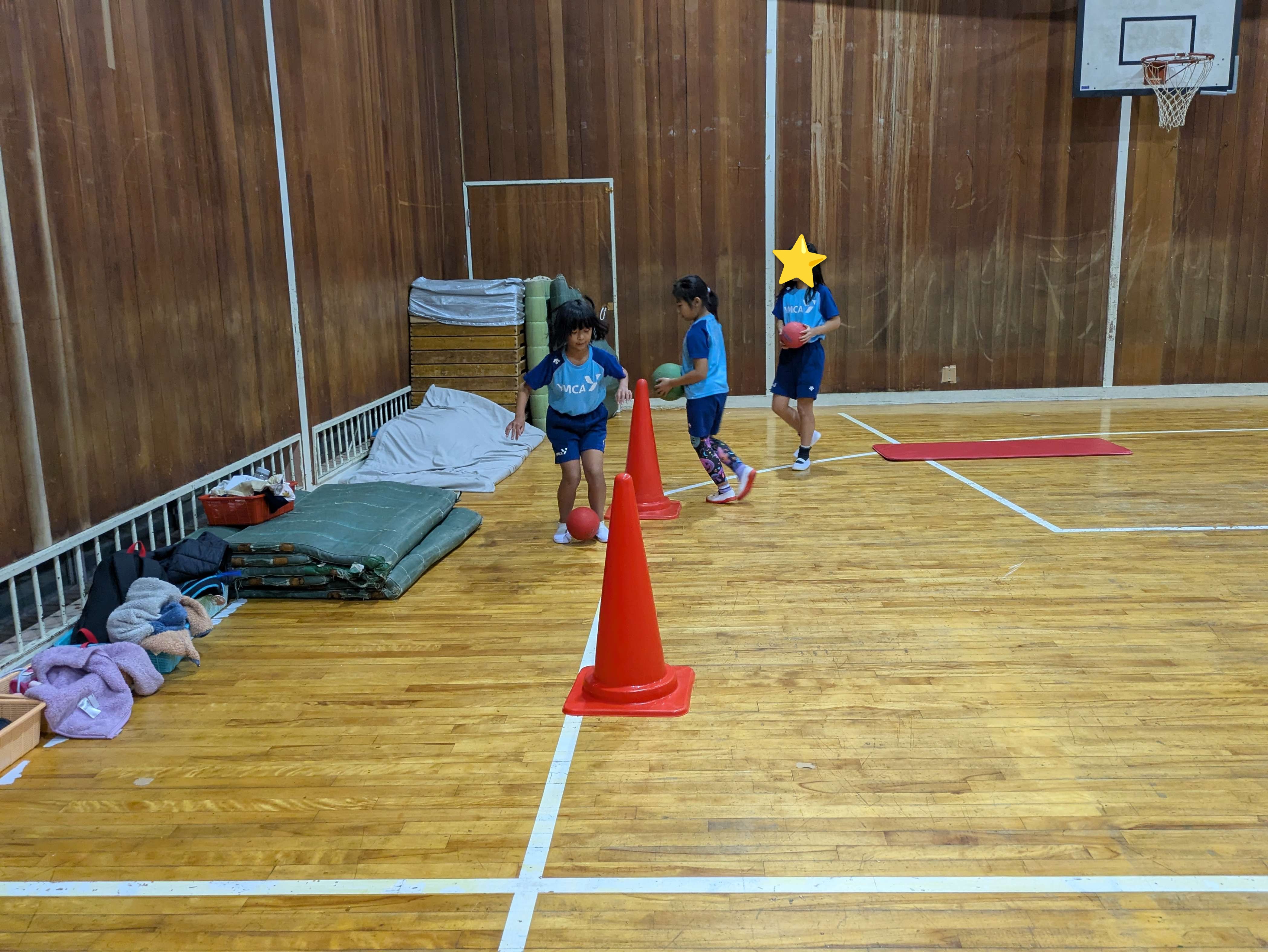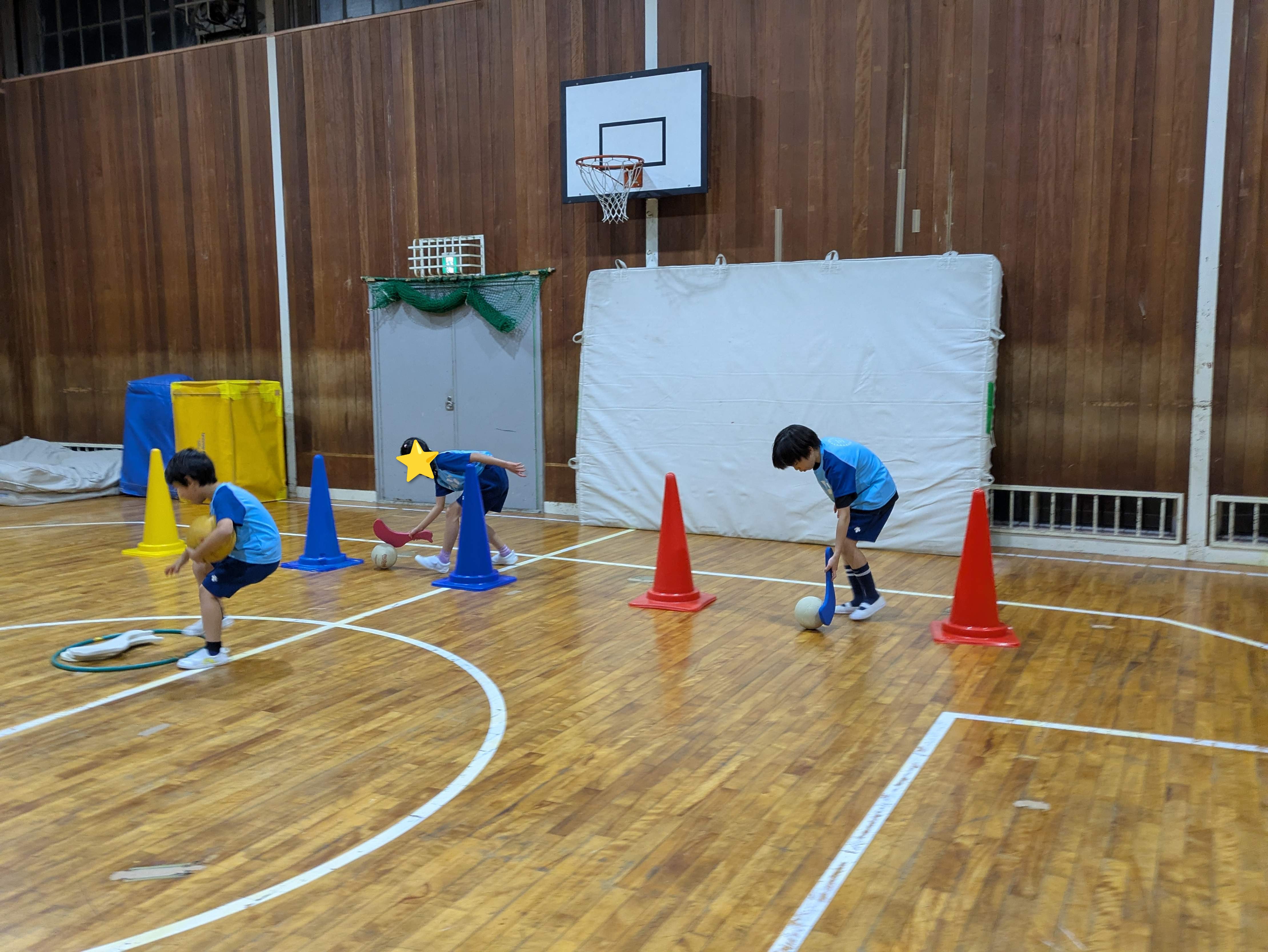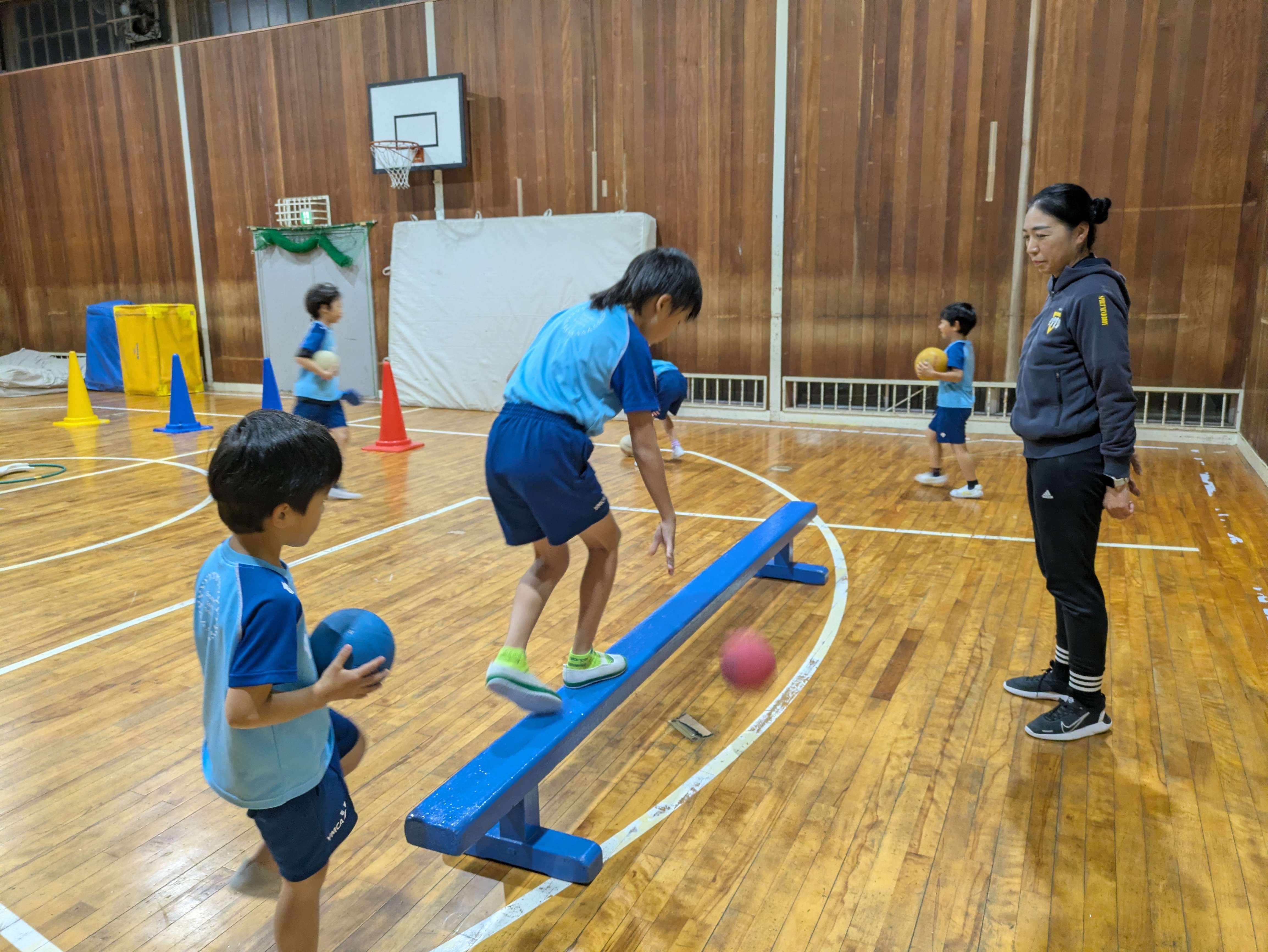 平均台を歩きながらのドリブルでは、同時にいろんなことを行うので難しかったですが、慣れてくると上手に行うことができましたね!