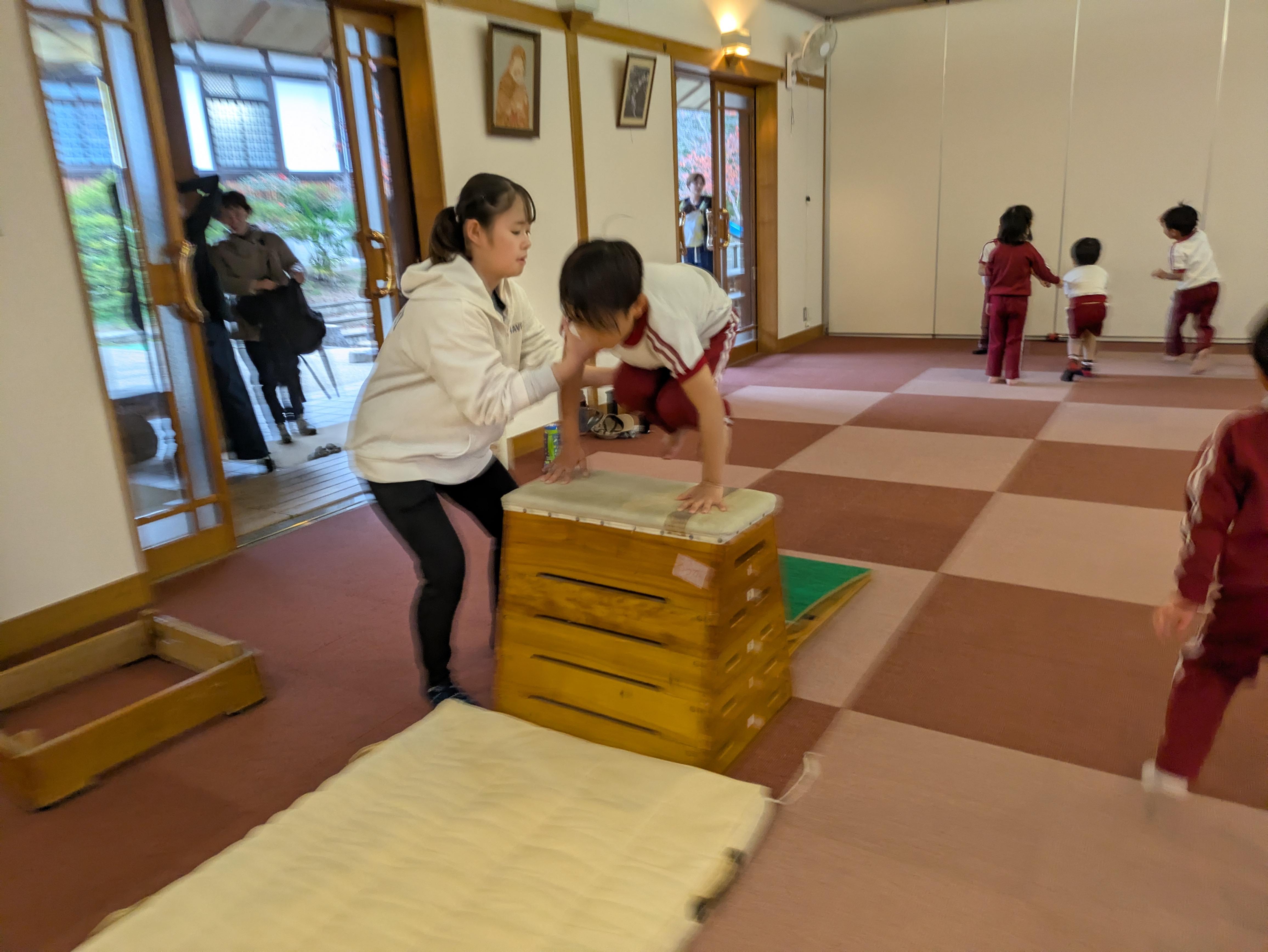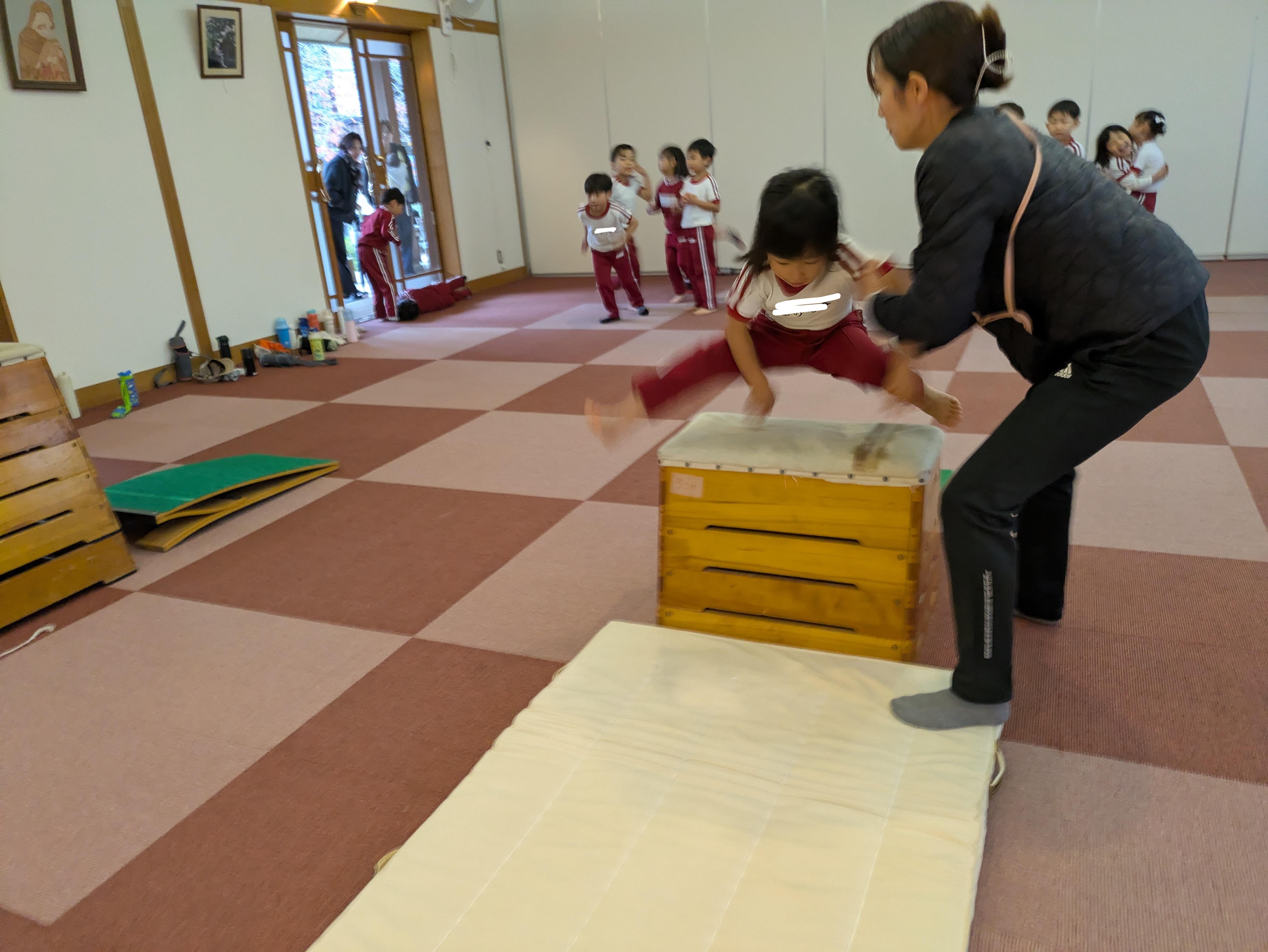そのあと、ホールに入ってマットと跳び箱をしました。
