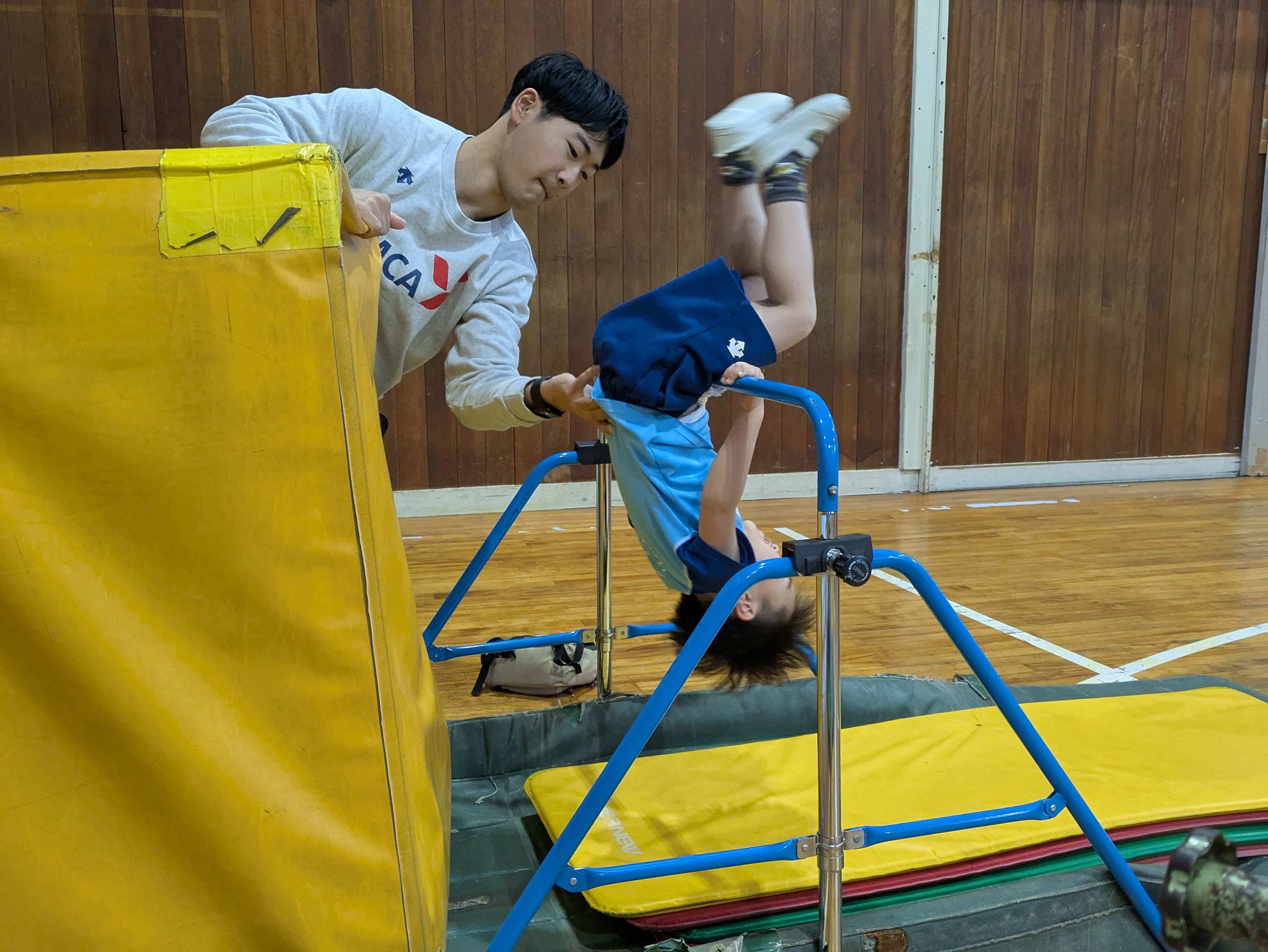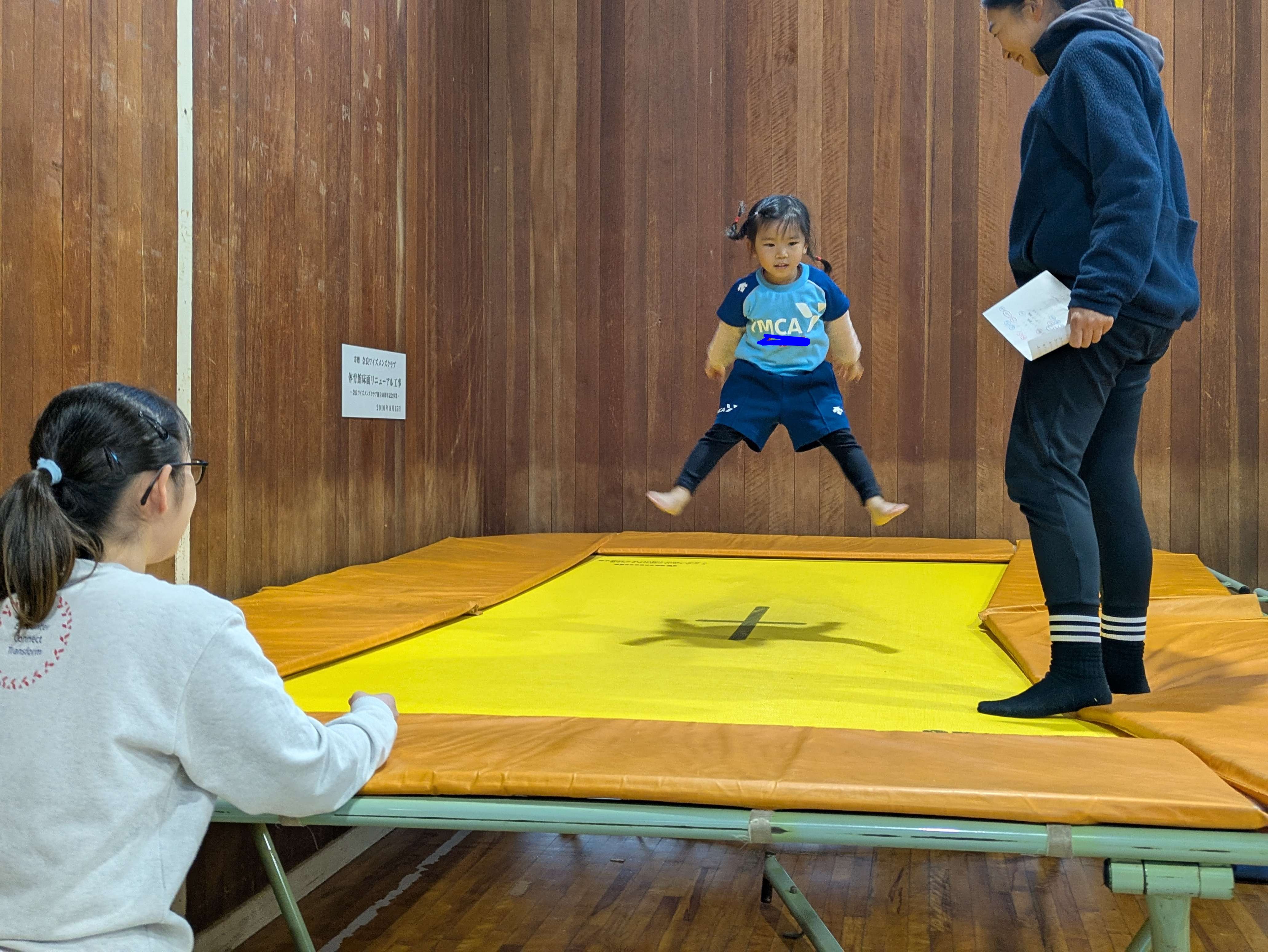 トランポリンでは、1番高いところで技を行うようにしましょう!