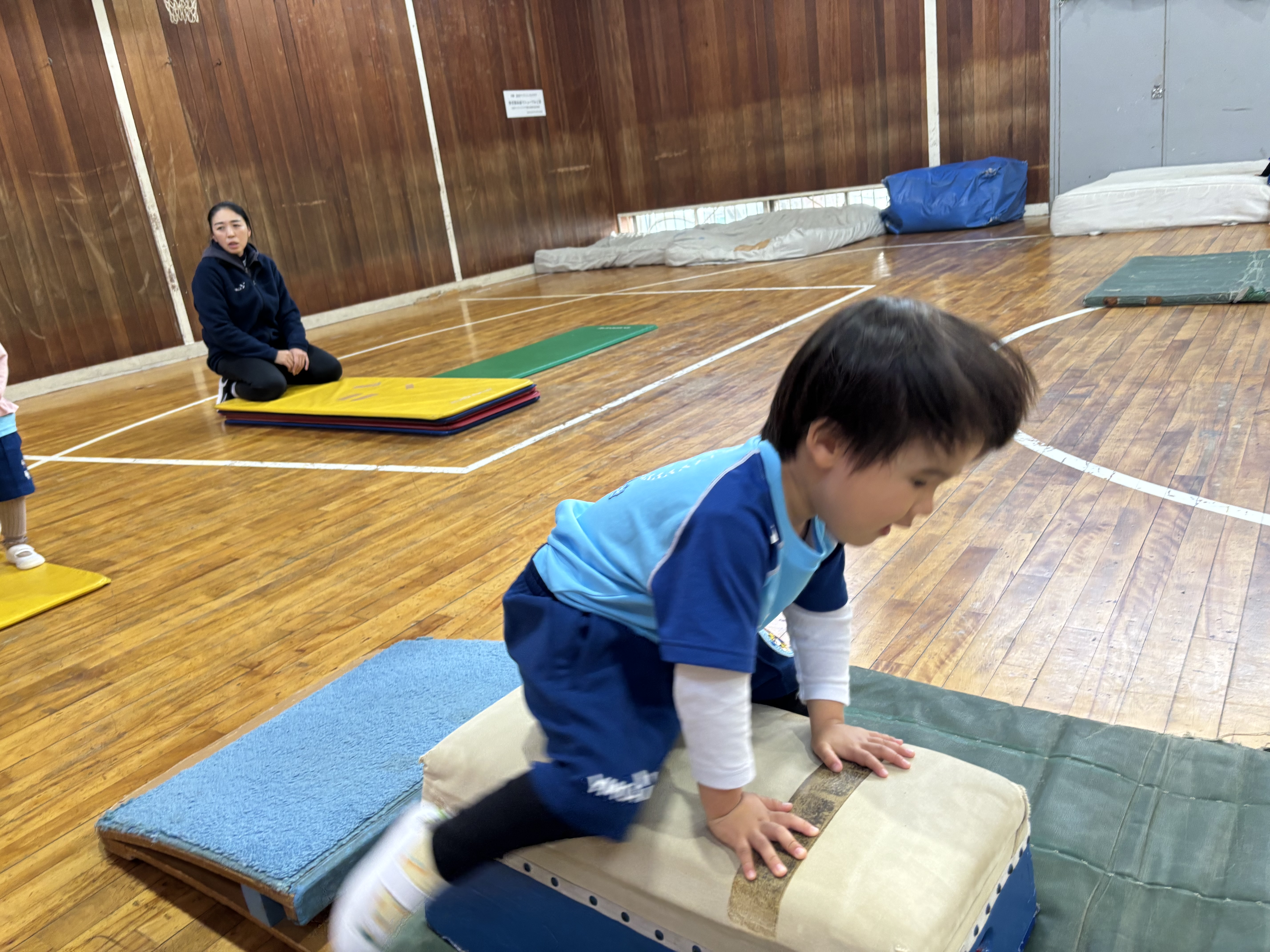 サーキットは今日も跳び箱を頑張りました。手を先についてからおしりをしっかり上げる練習です。