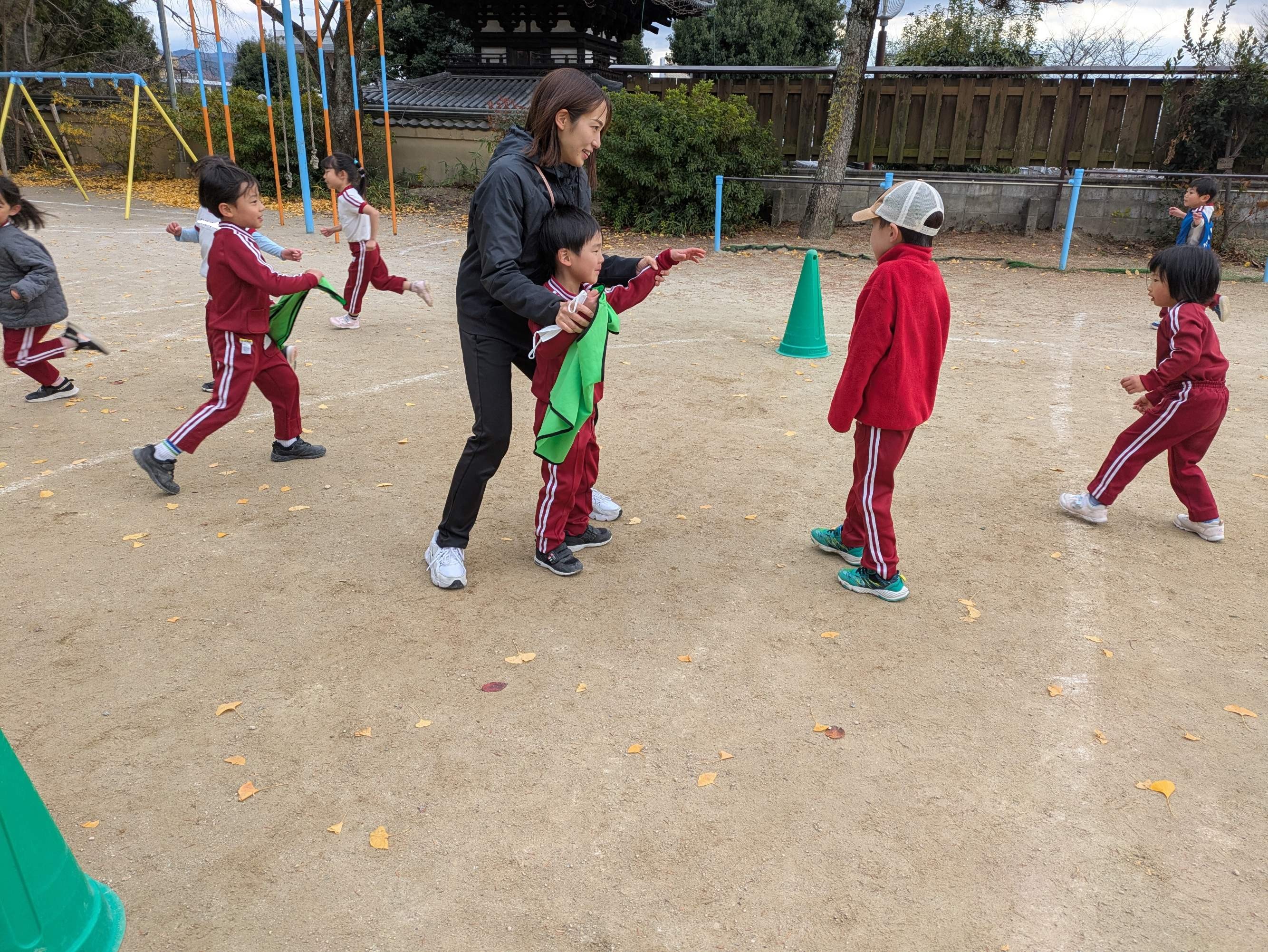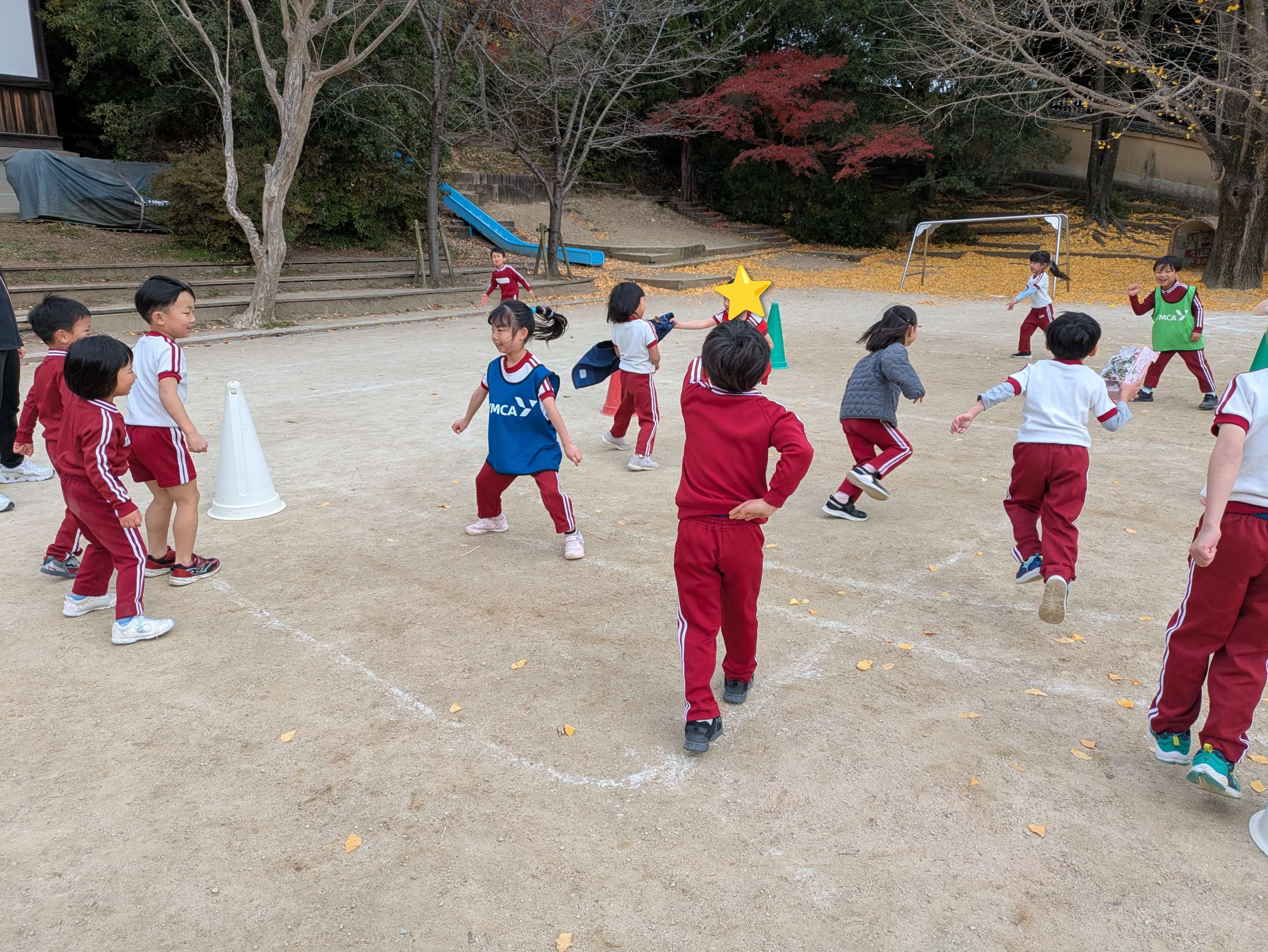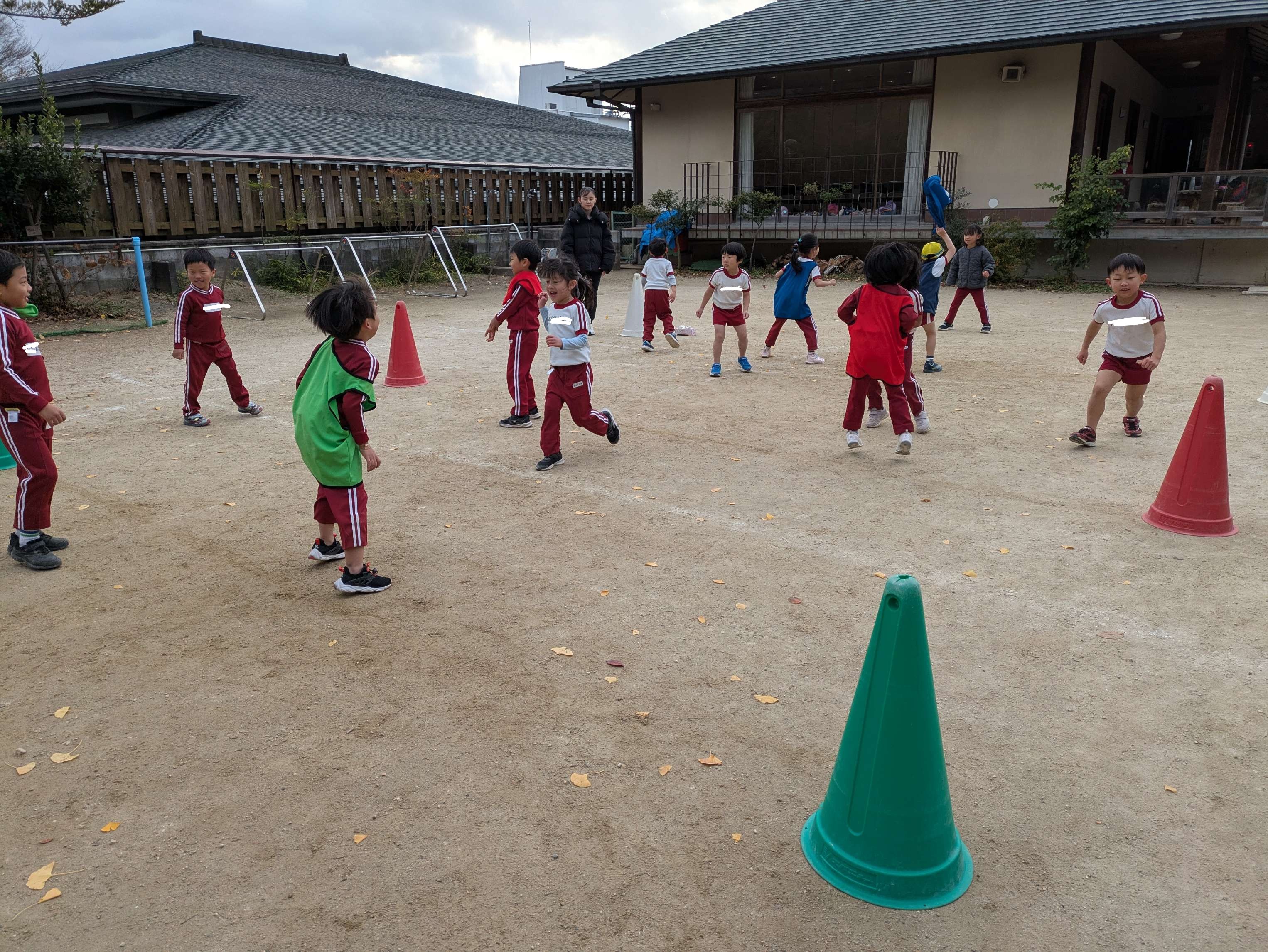 横に動く鬼にタッチされないように、よく見て素早く通り抜けることができましたね!鬼との駆け引きを楽しむ様子が見られました!