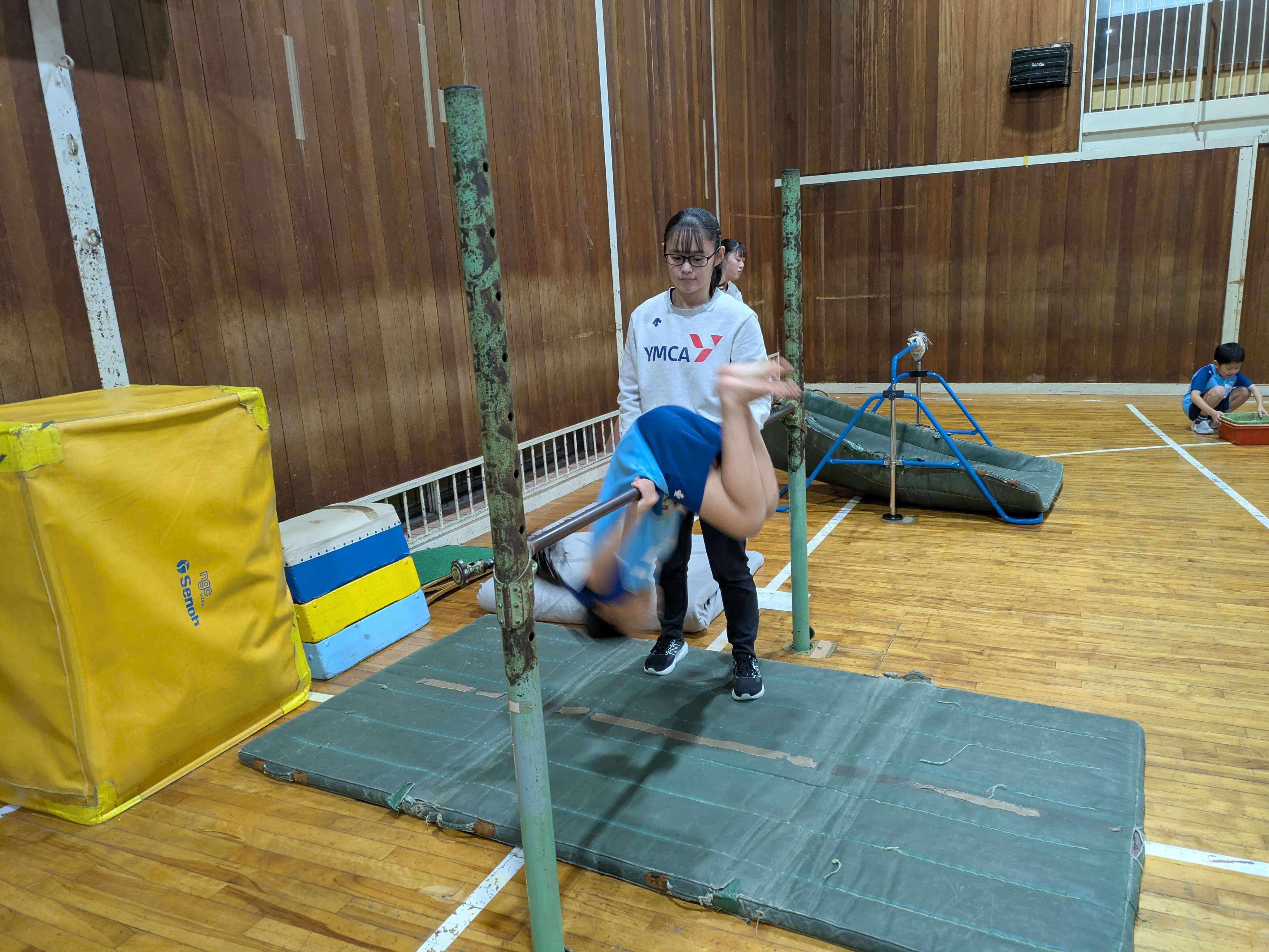 鉄棒では、どの技でも最後しっかり手を回して、つばめになれるようにしましょう!
