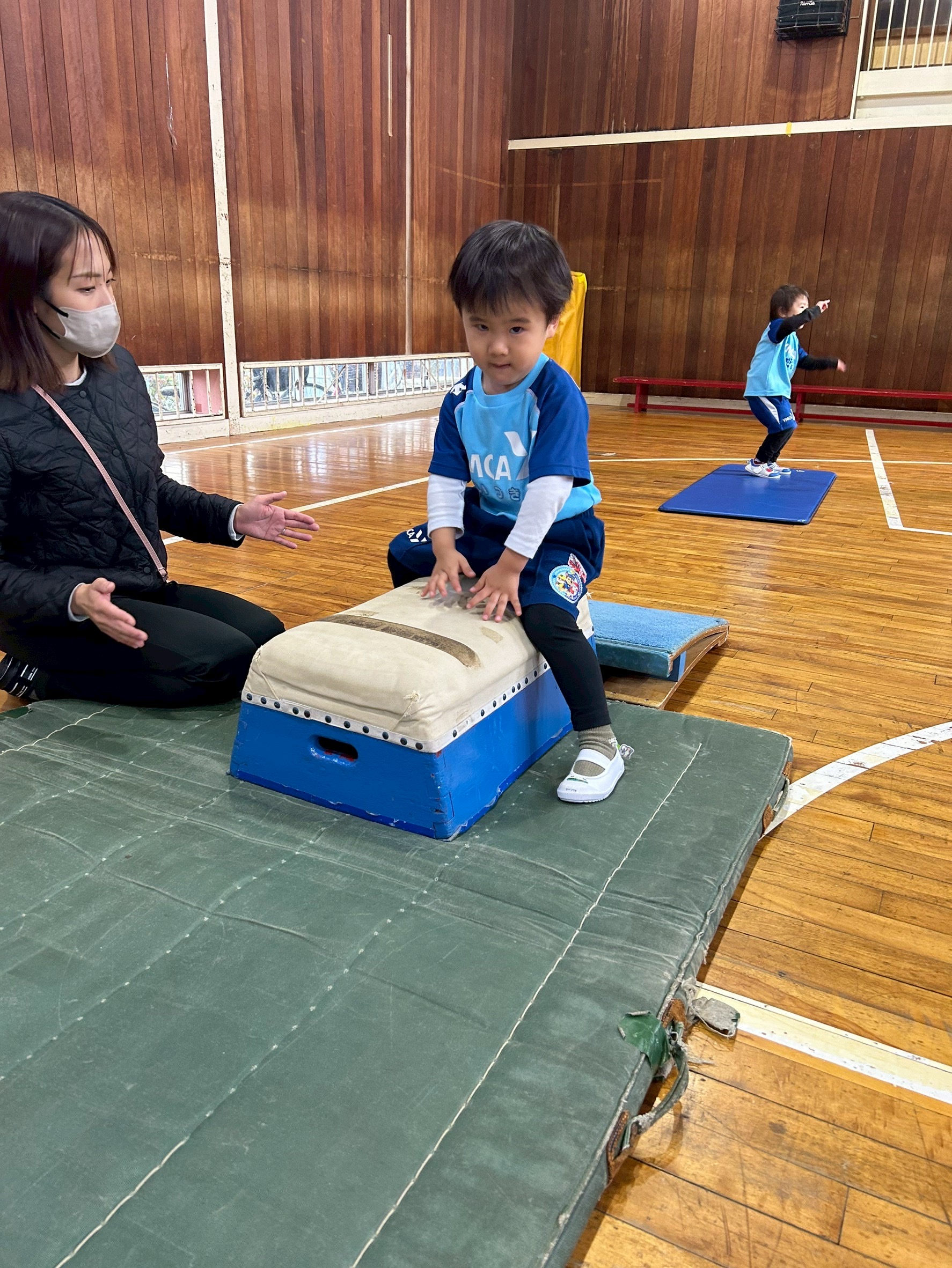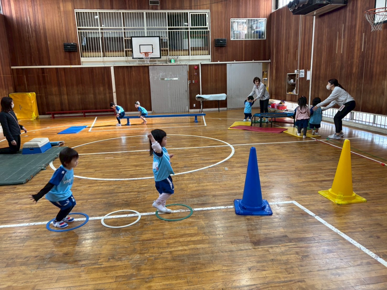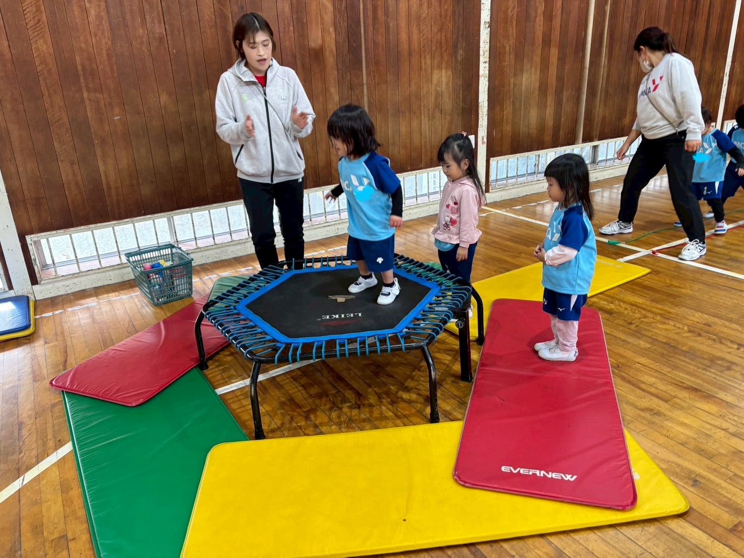 サーキットは跳び箱と、ミニトランポリンをメインに行いました。トランポリンはやっぱりみんな大好きですね!とっても上手に跳んでいました。