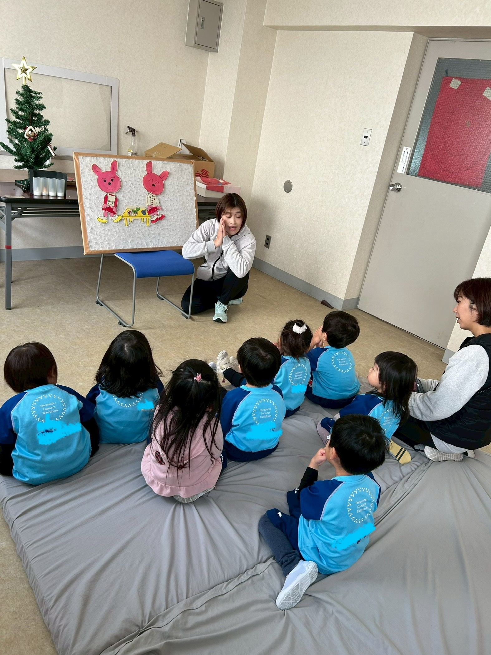 そしておやつの時間には12月生まれのお誕生日会をしました。インタビューもじょうずに応えてくれました!3歳のお誕生日おめでとう!