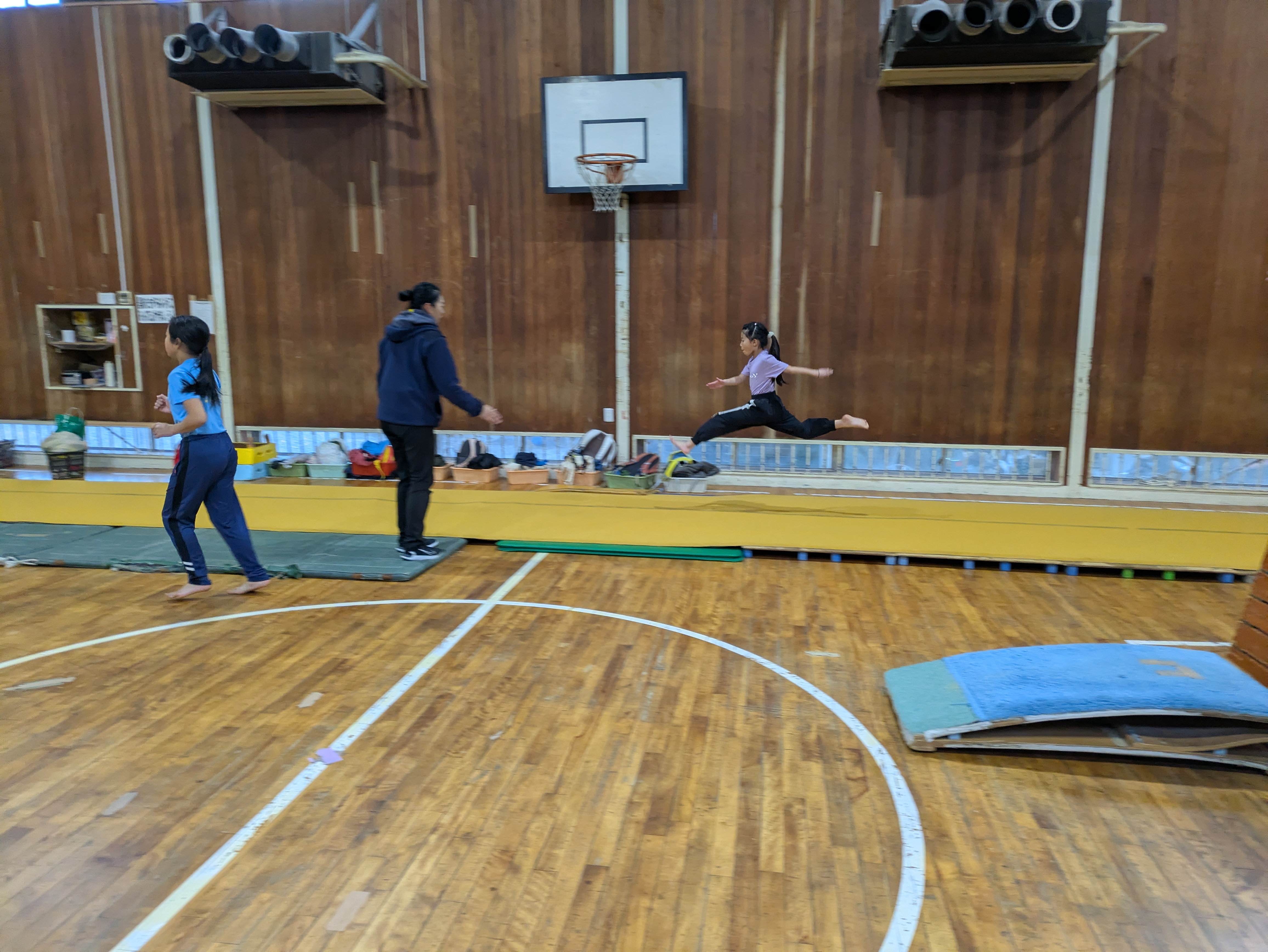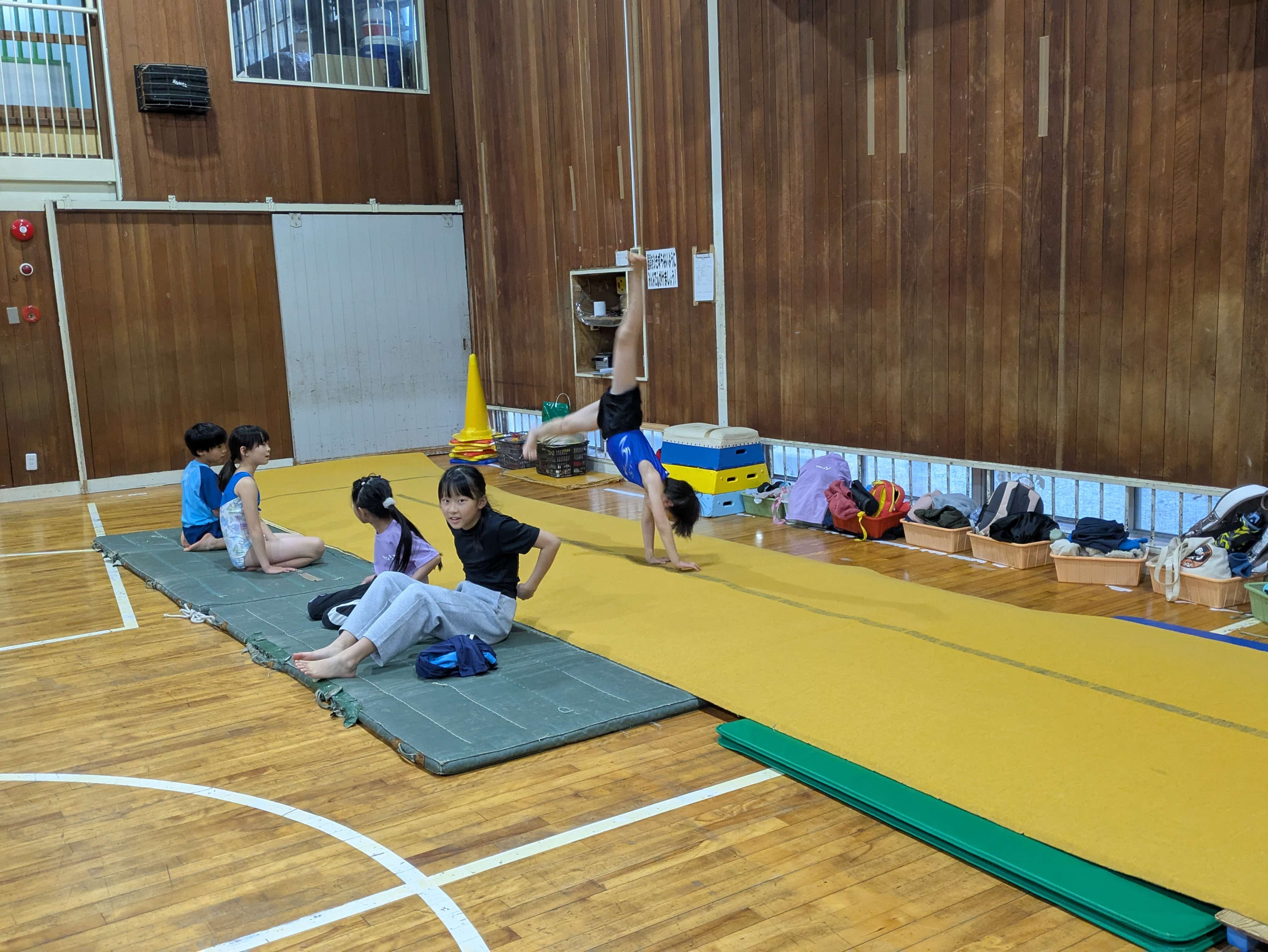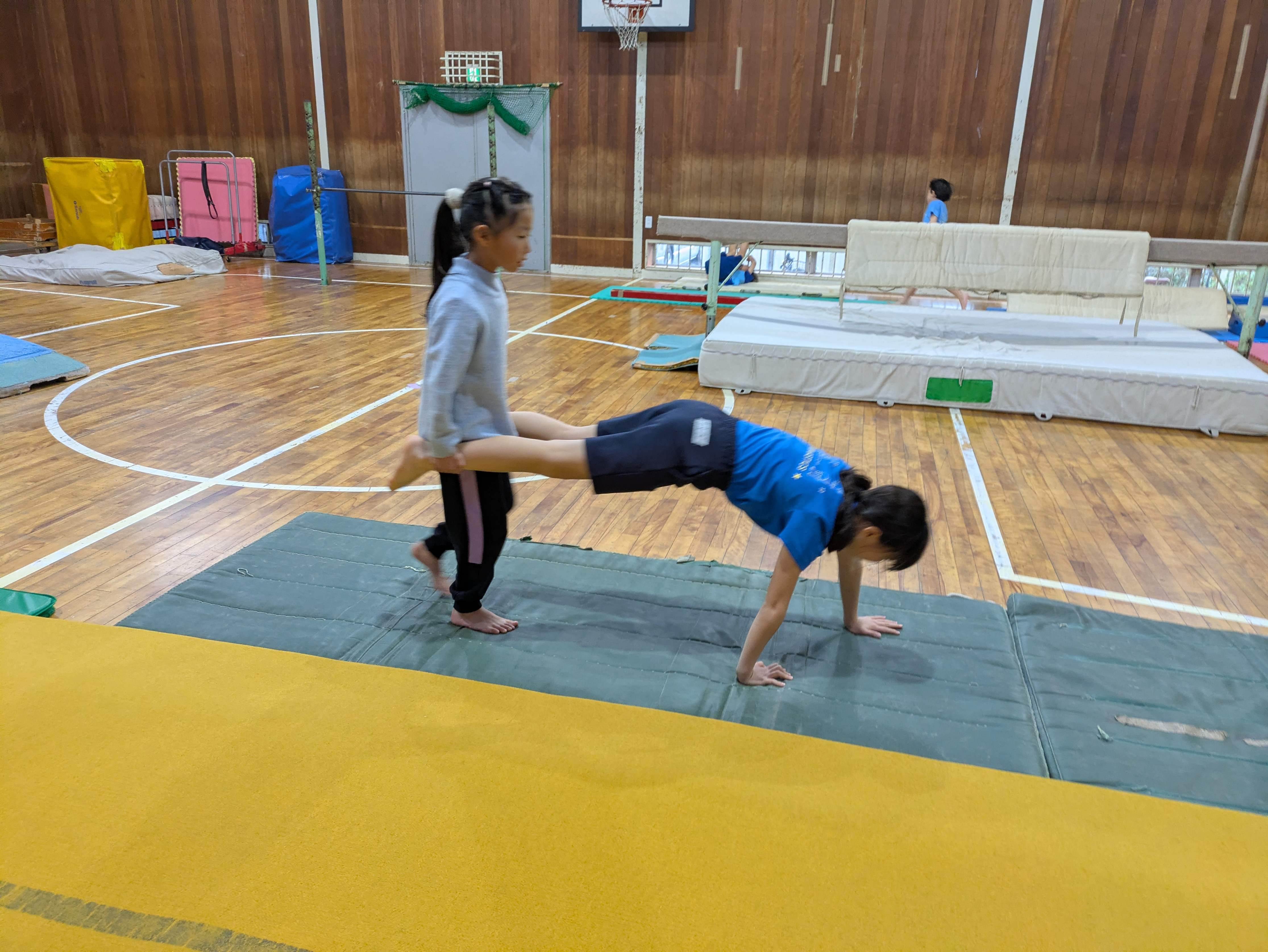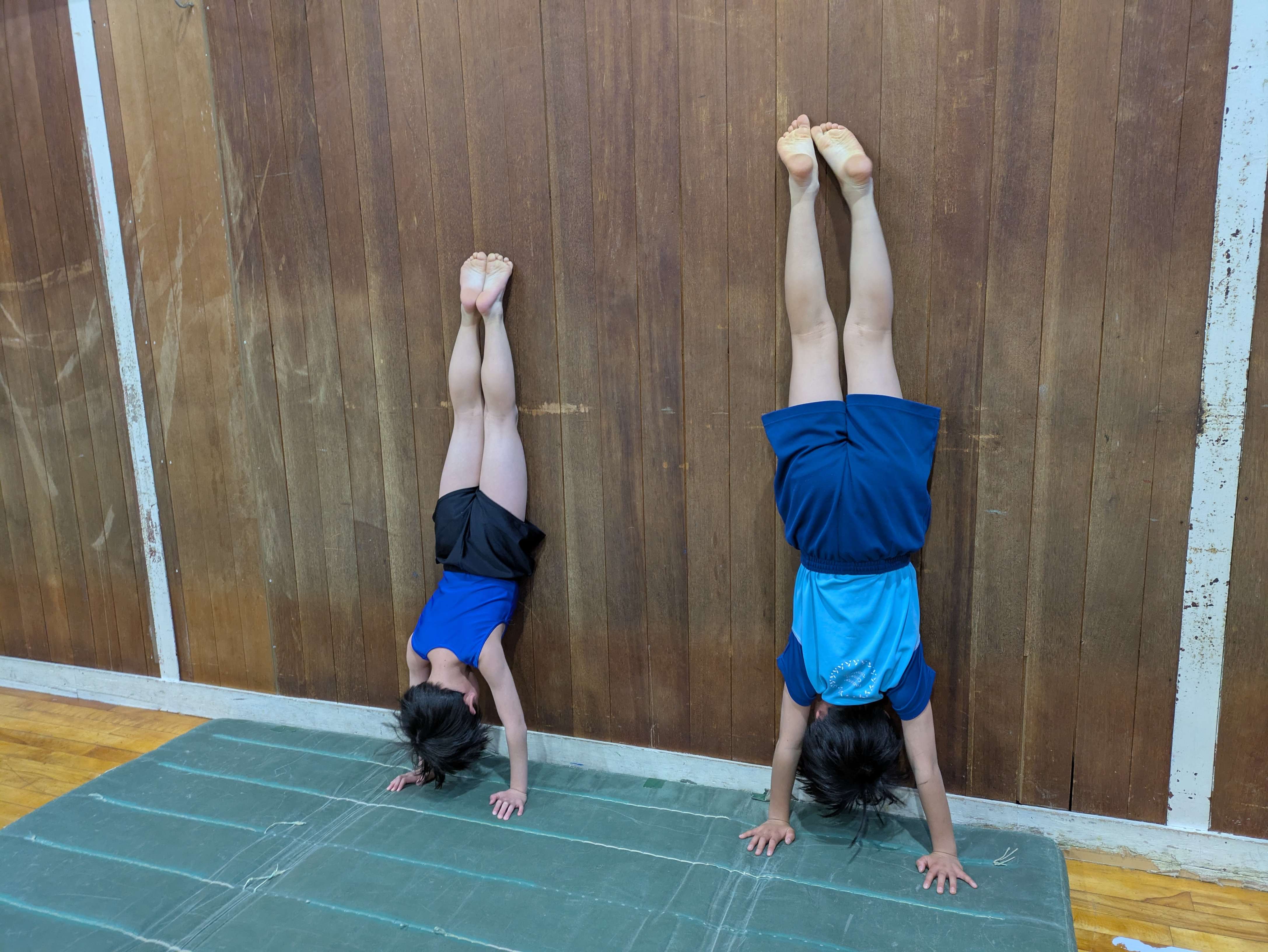 トレーニングでは、壁倒立や手押し車、大ジャンプの練習などをしました。