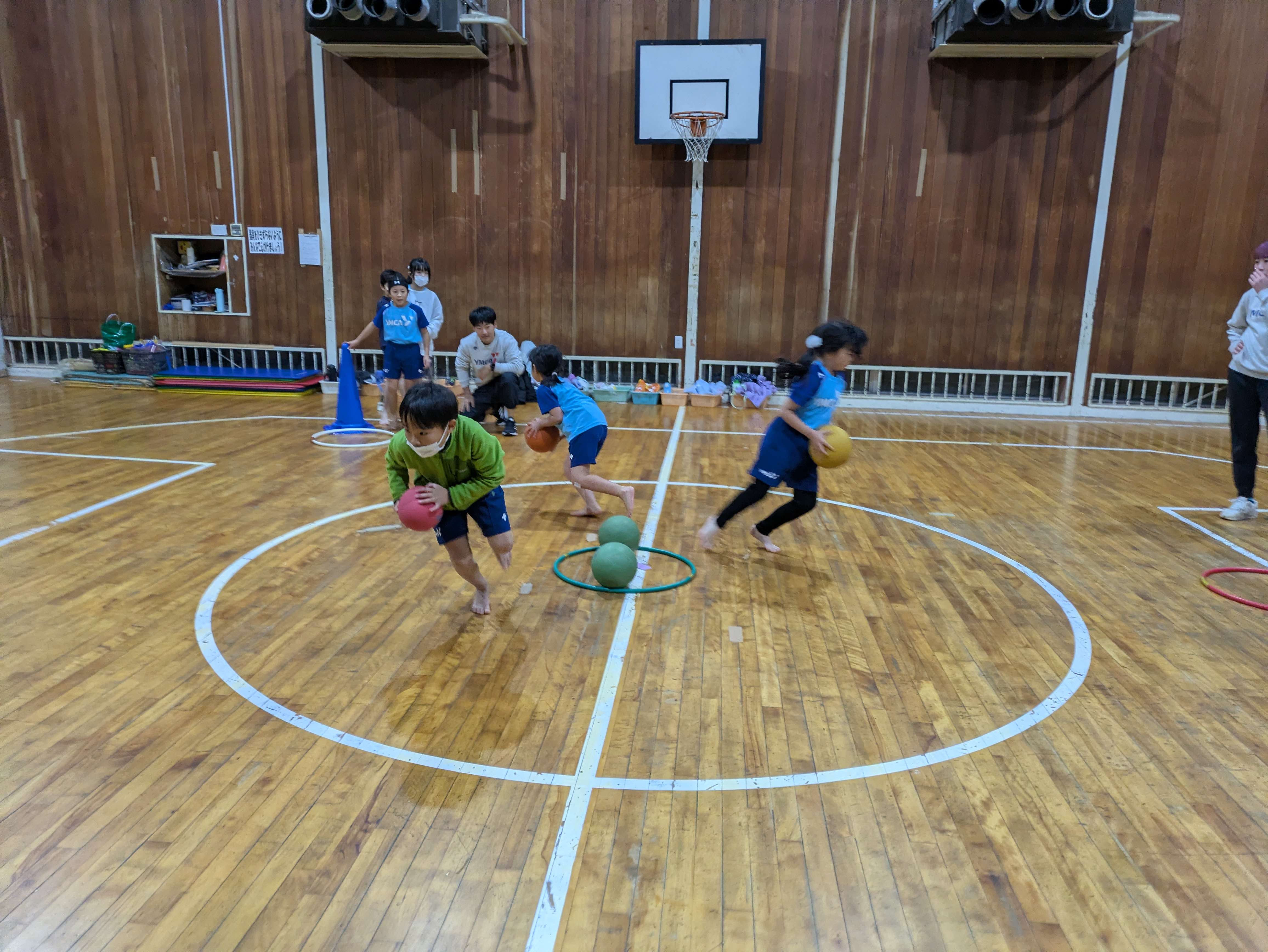 はやくボールを3つ集めると勝ちというルールでしたね!どこのチームが多くボールを持っているのかよく見て、ボールを取りに行くことができていましたね!