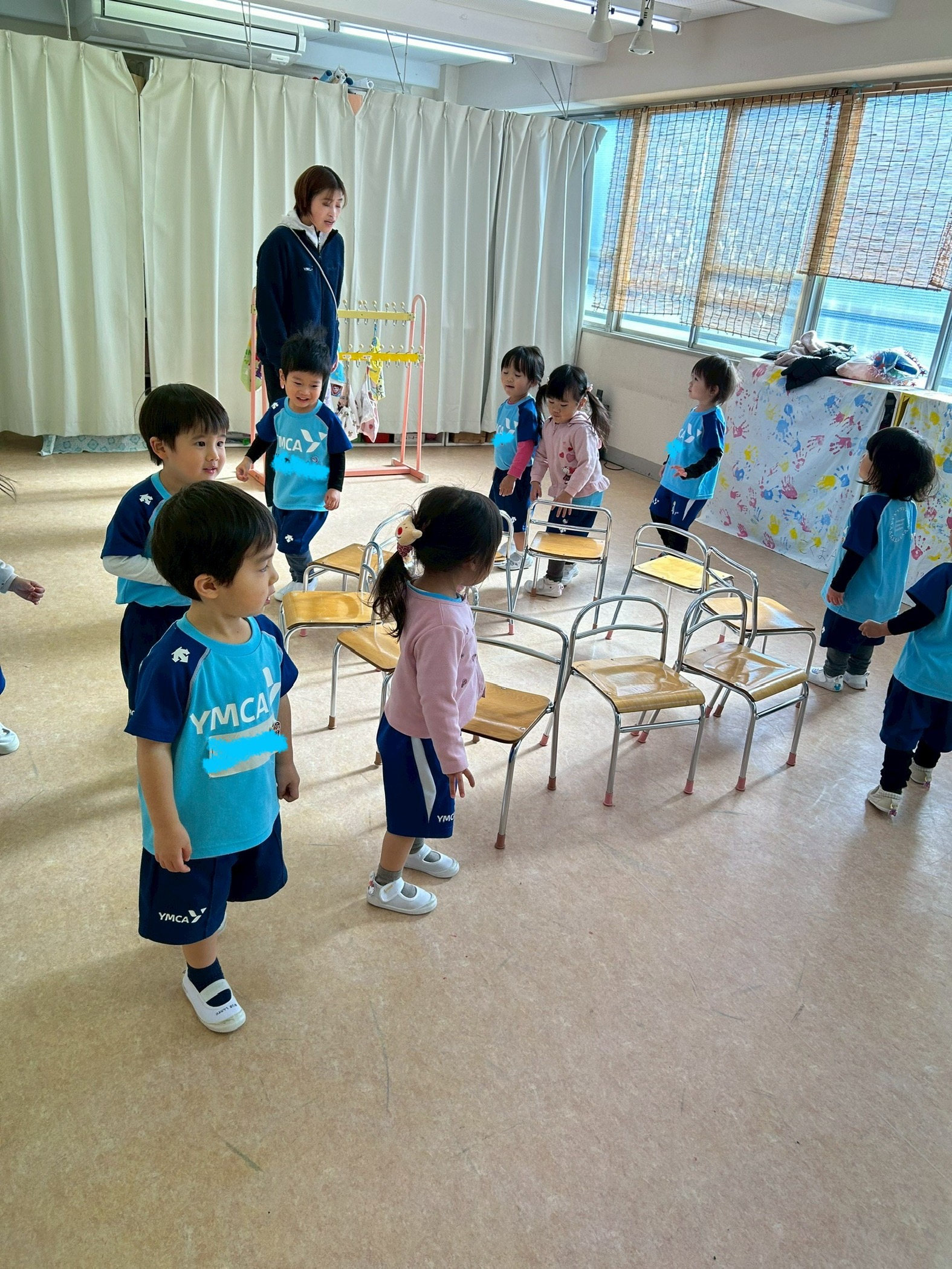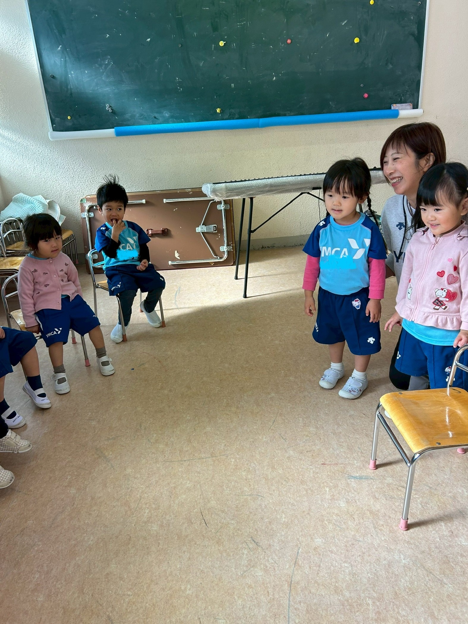 お部屋では久しぶりに椅子取りゲームをしました。最初はのんびりして椅子に座るのをリーダーが必死に教えたりしましたが、段々に思いだしてきたのか、最後はなかなか見ごたえある勝負になりました。