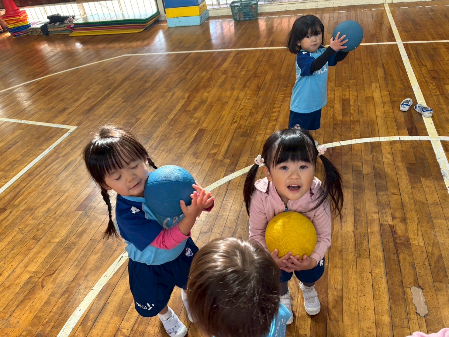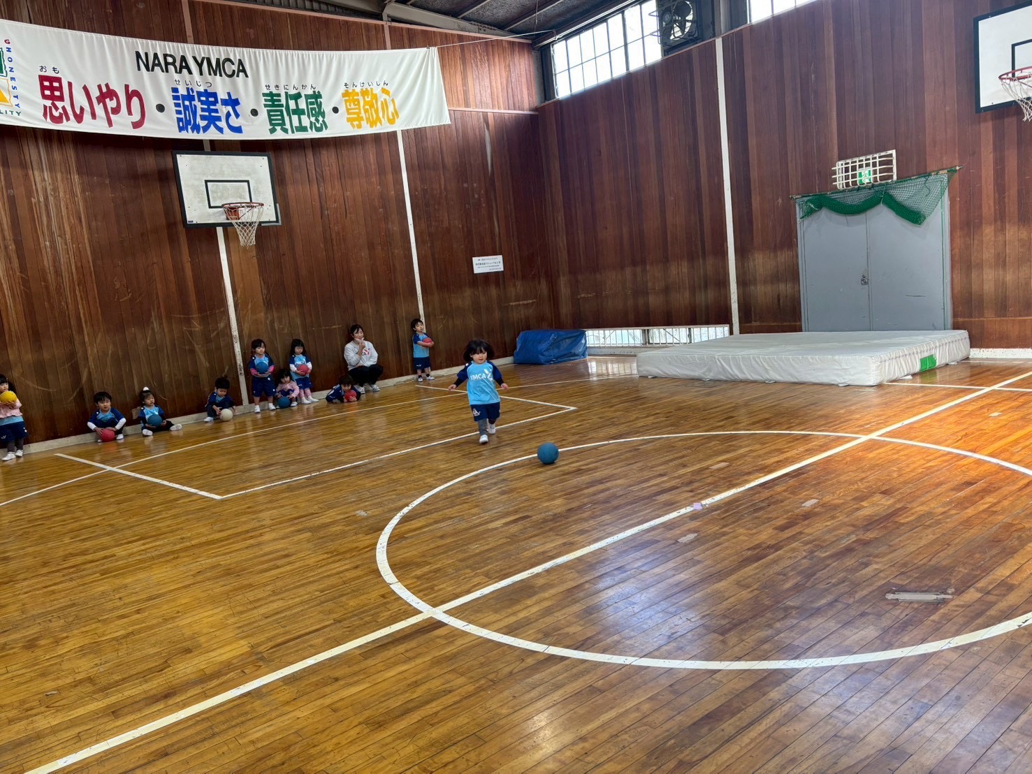 お名前を呼んでボールを取りに来てもらいました。遠くから転がってくるボールを上手に捕まえに行っていました。
