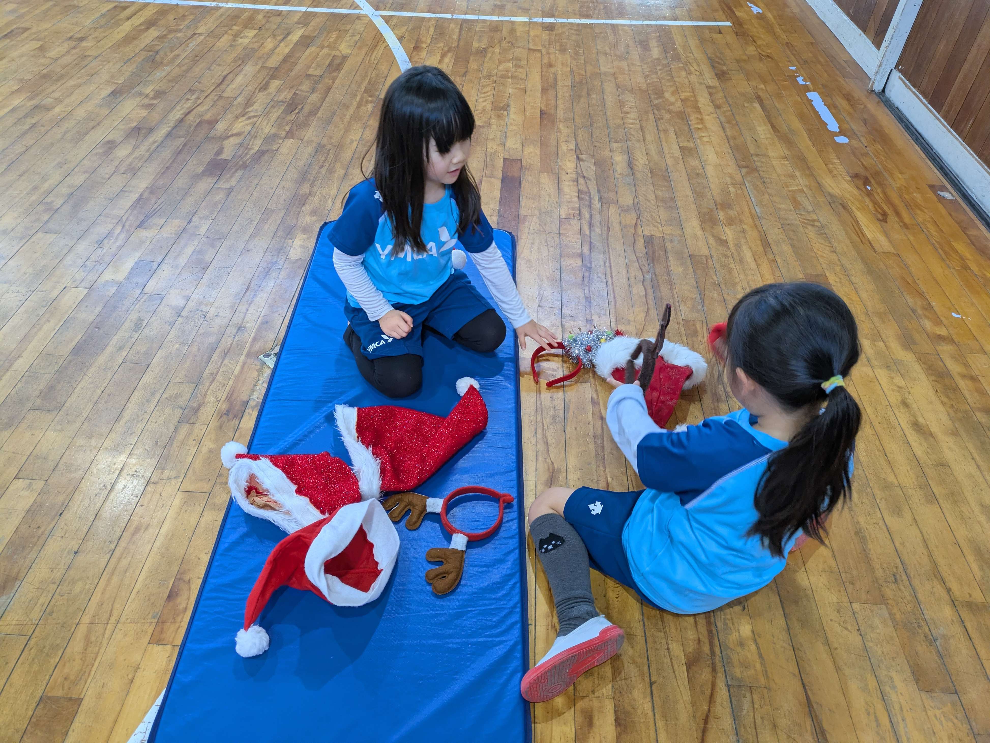 サンタの帽子やトナカイのカチューシャなど、身につけて自分のチームに持って帰るというルールで行いました!