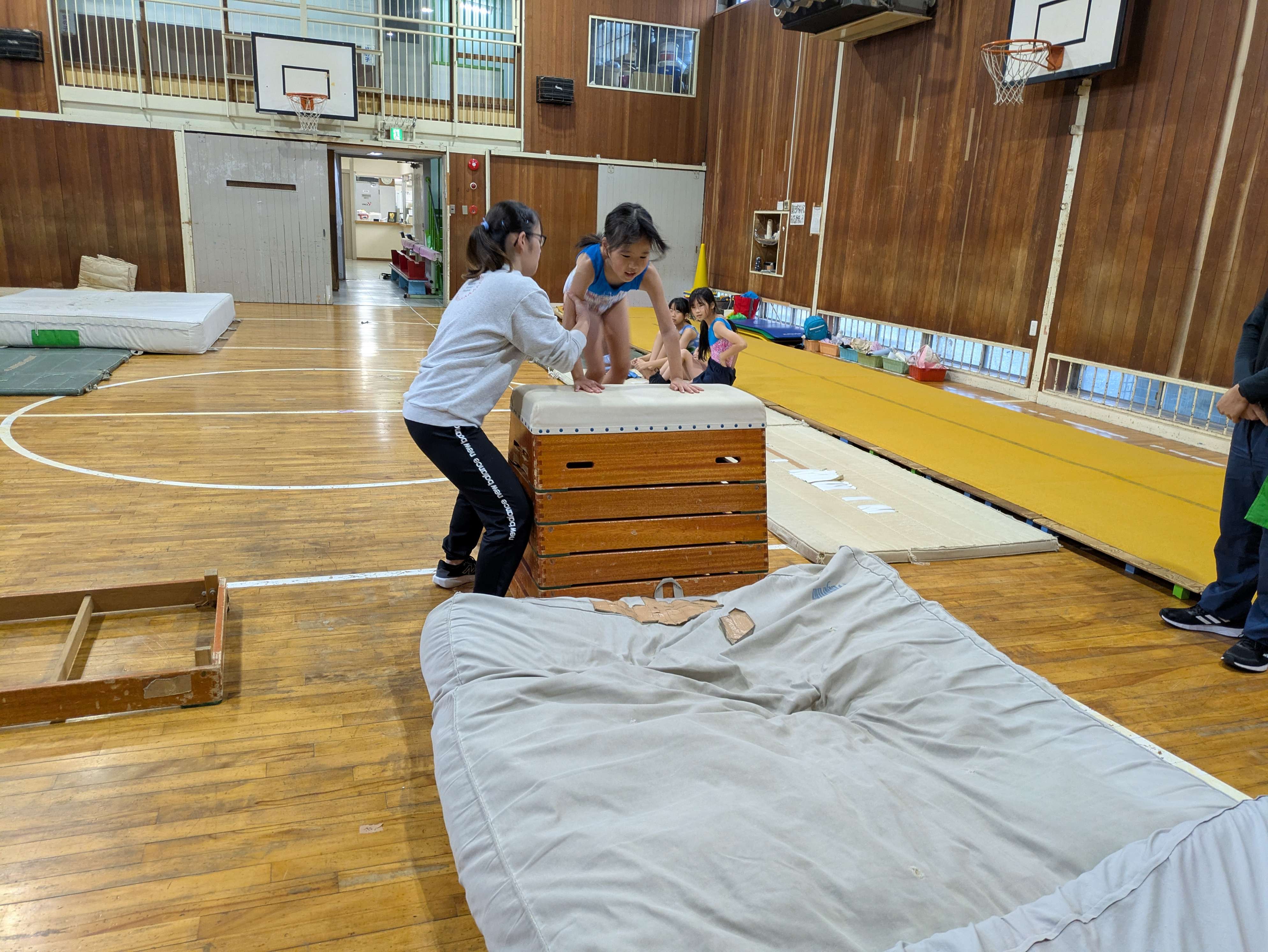 鉄棒やマットの演技でも、まだ不安そうな顔をしているお友だちもいますが、自信を持ってできるようにしていきましょうね!