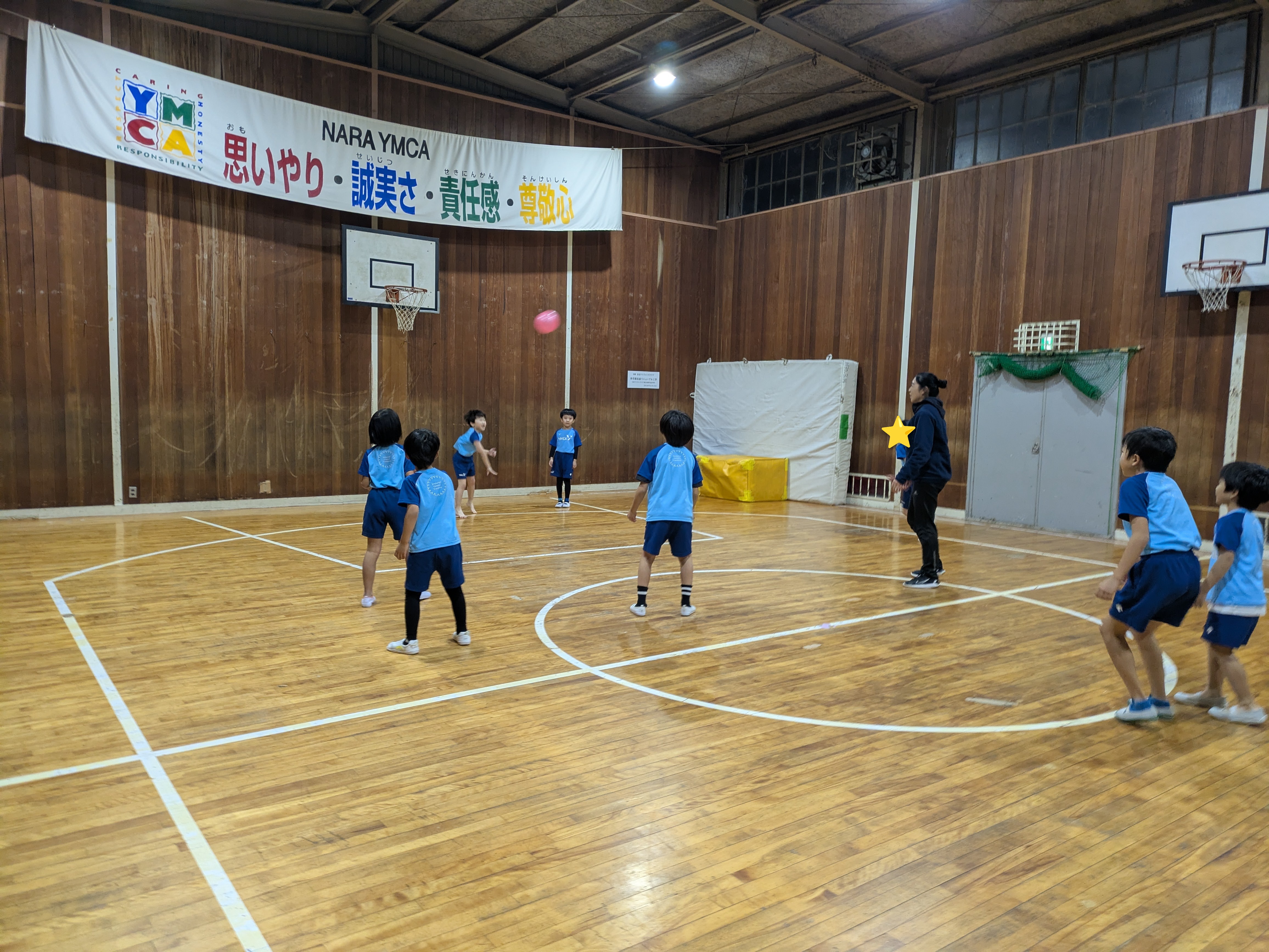 最後にドッヂボールをしました。ボールをよく見て逃げたり、投げる力も強くなっていてとても白熱していました!