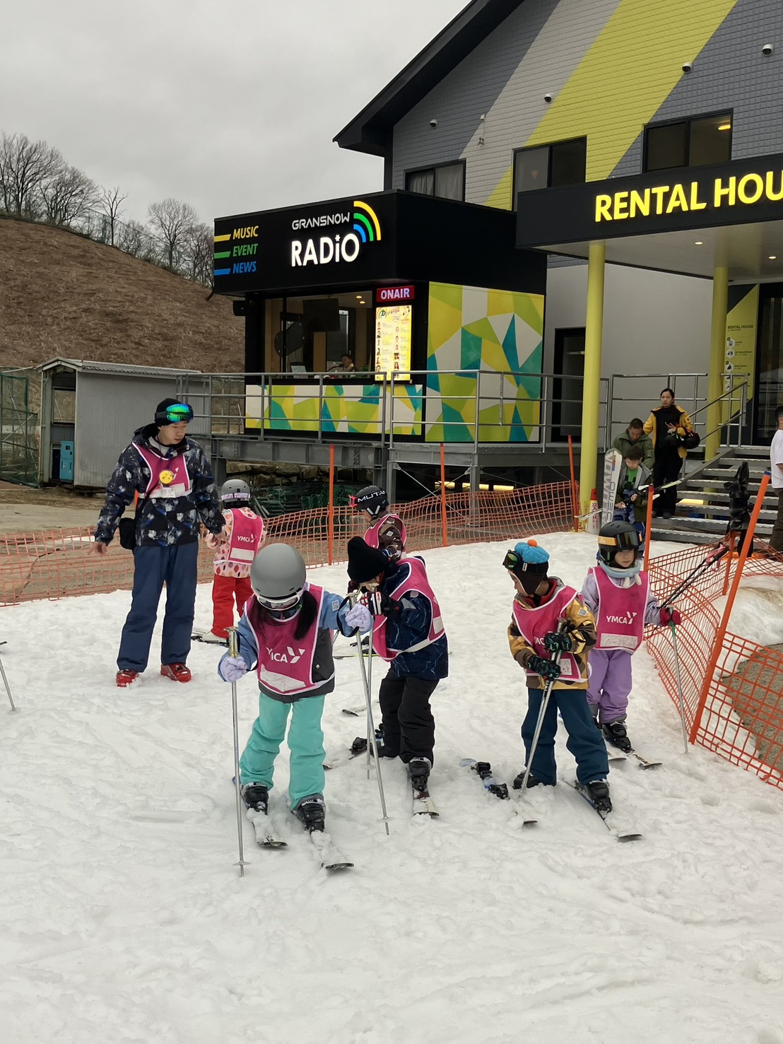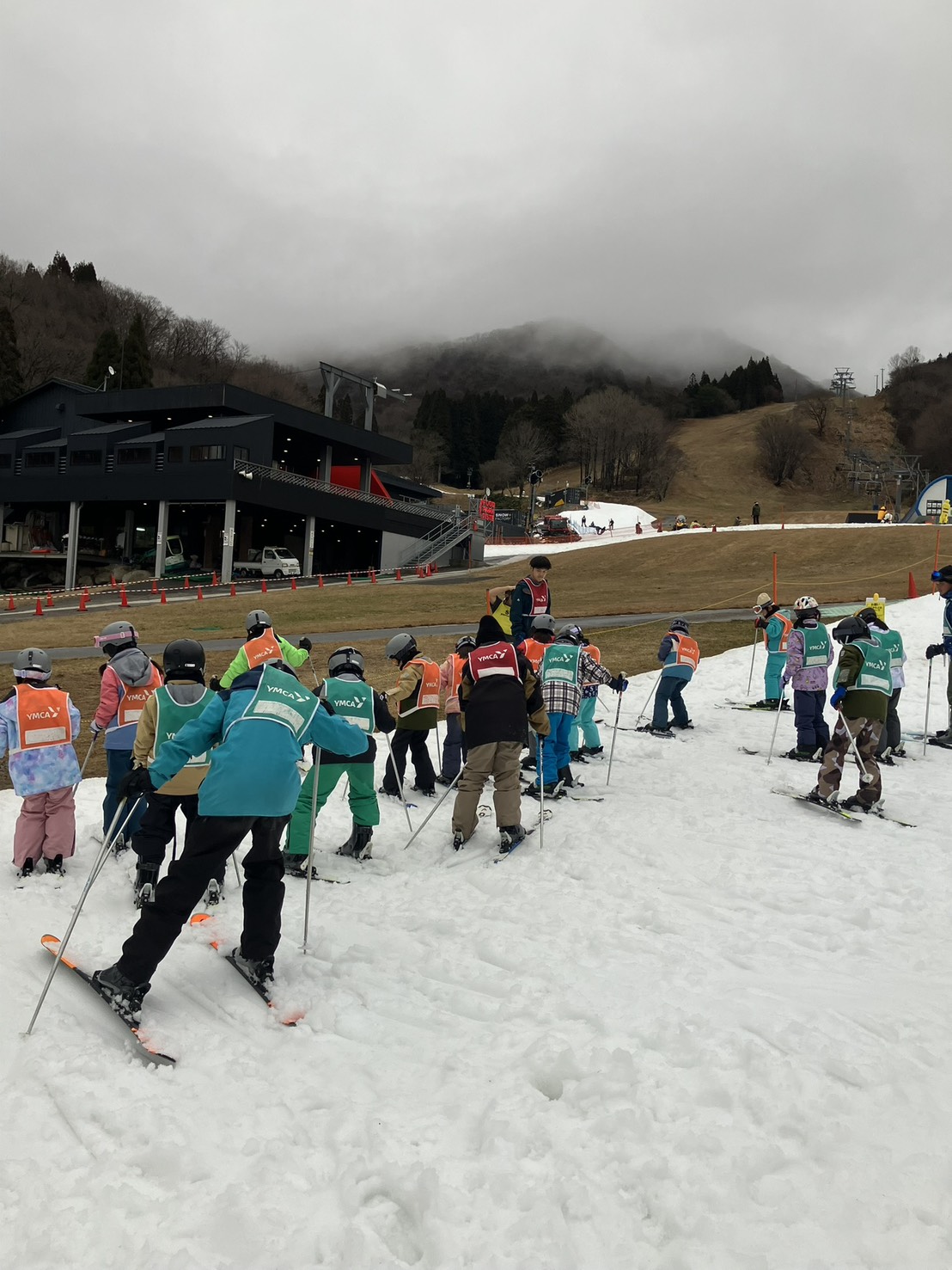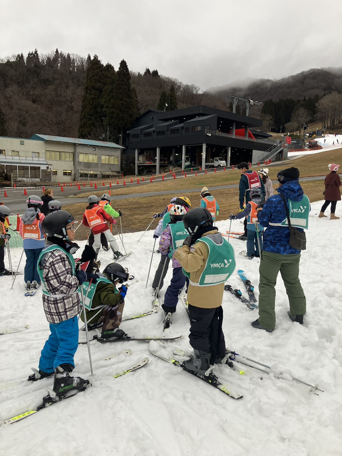 グランスノー奥伊吹に到着すると、早速スキーの講習を始めました。