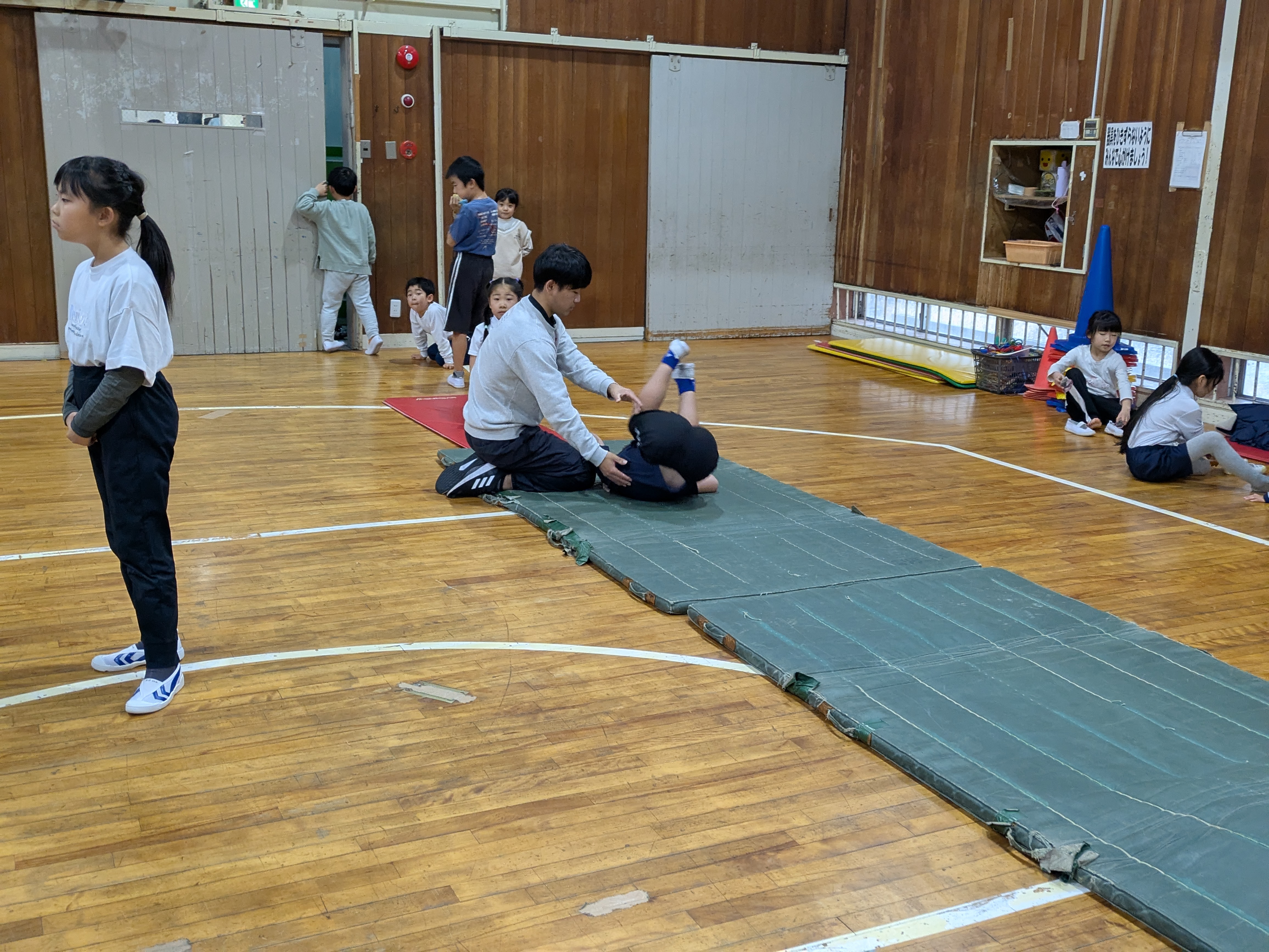 マットの前転や後転は、しっかり体を丸めて回れるようにしましょう!