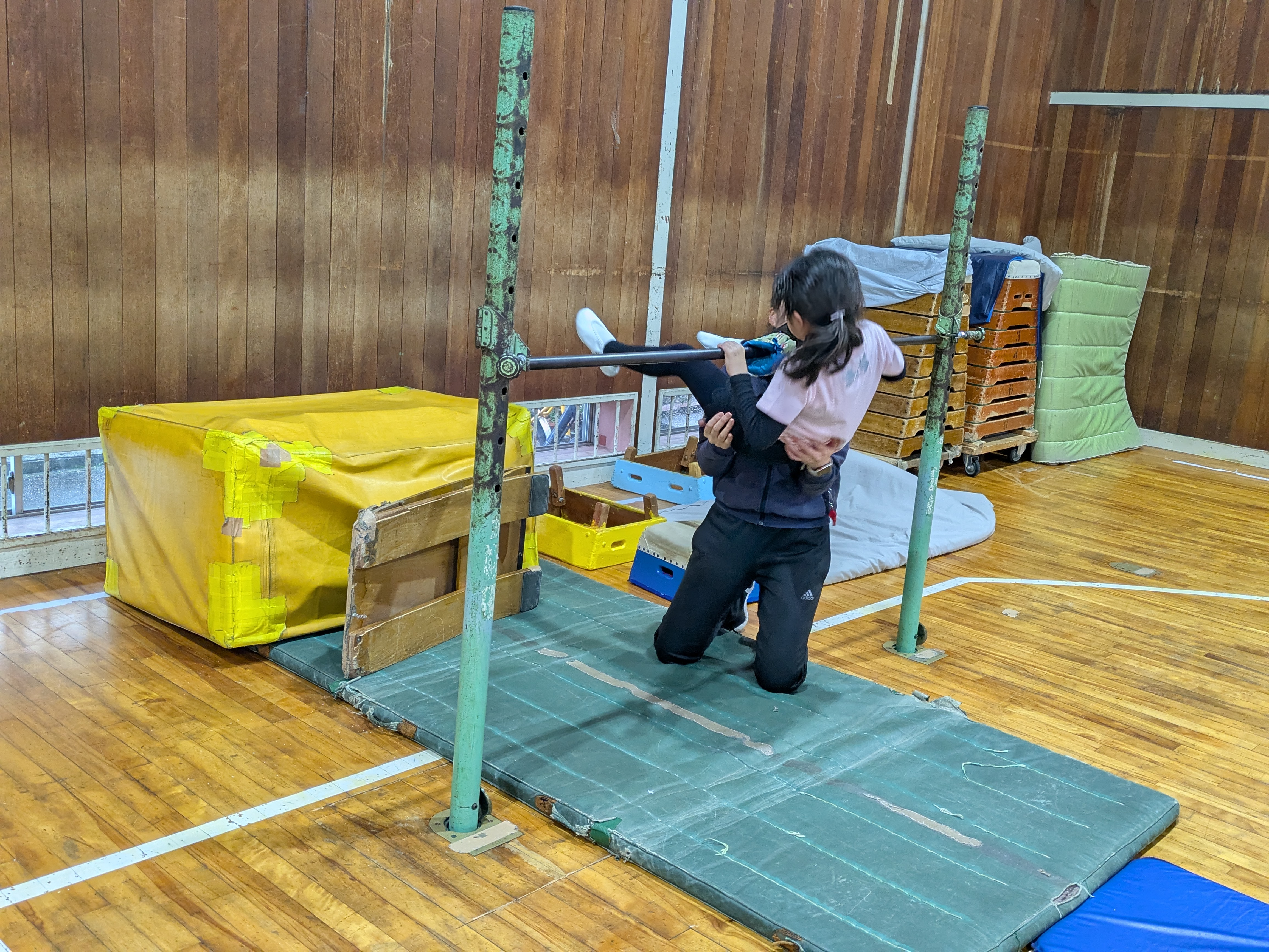 鉄棒では、前まわりからはじめて、逆上がりや後ろ回りなどそれぞれ頑張りました!